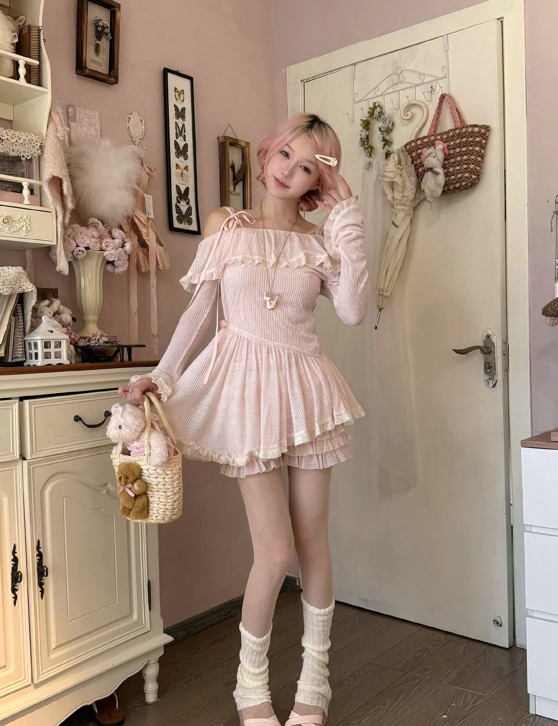 [ローズアイランド] ソフトロージームーン オフショルダードレス