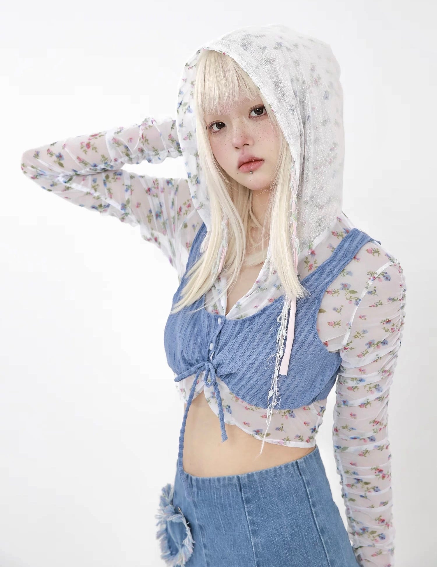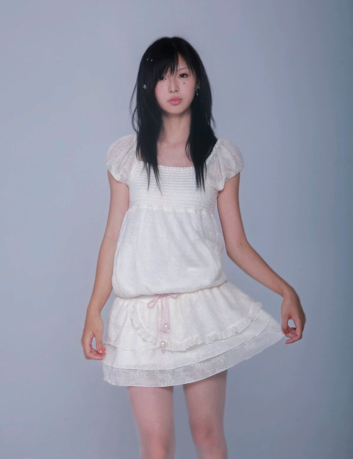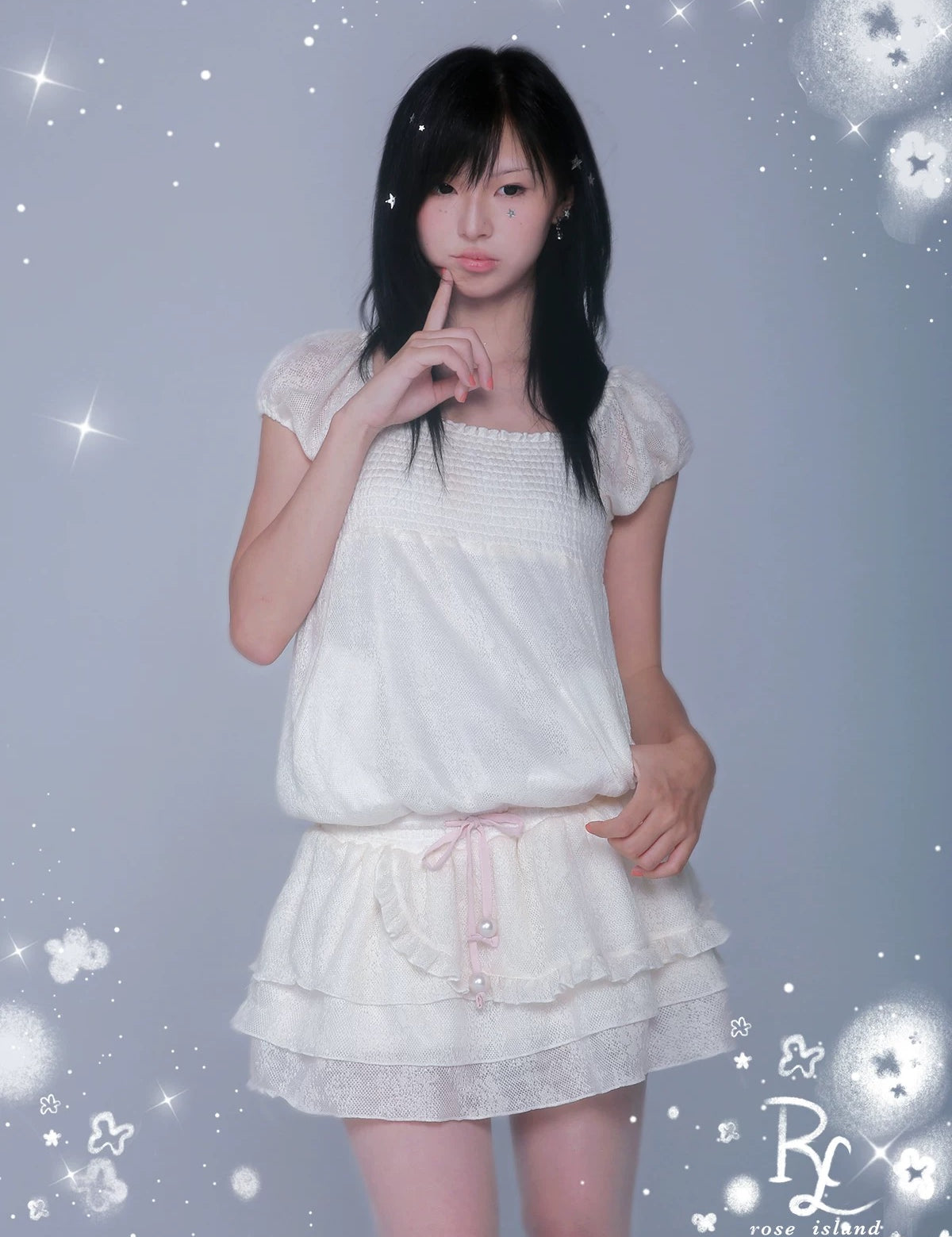 [ローズアイランド] ロージーキス クロップトップとフリルチュールスカートセット