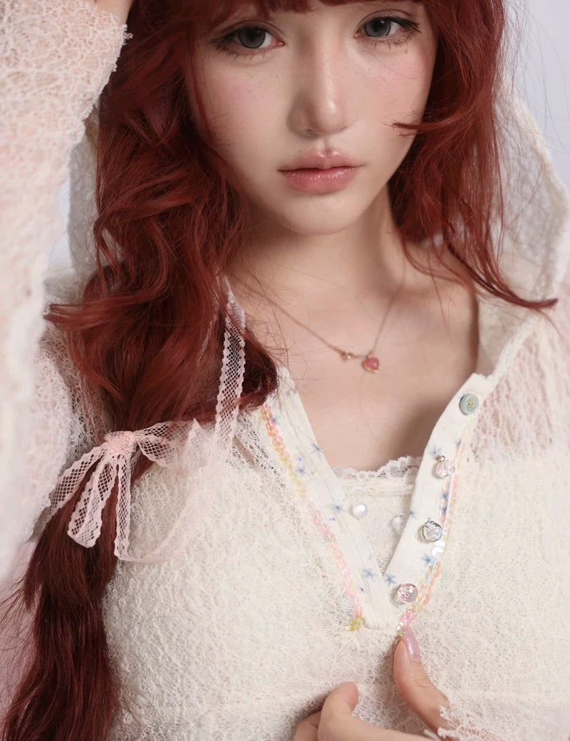 [ローズアイランド] ロージーラブレターレースサマーカーディガン