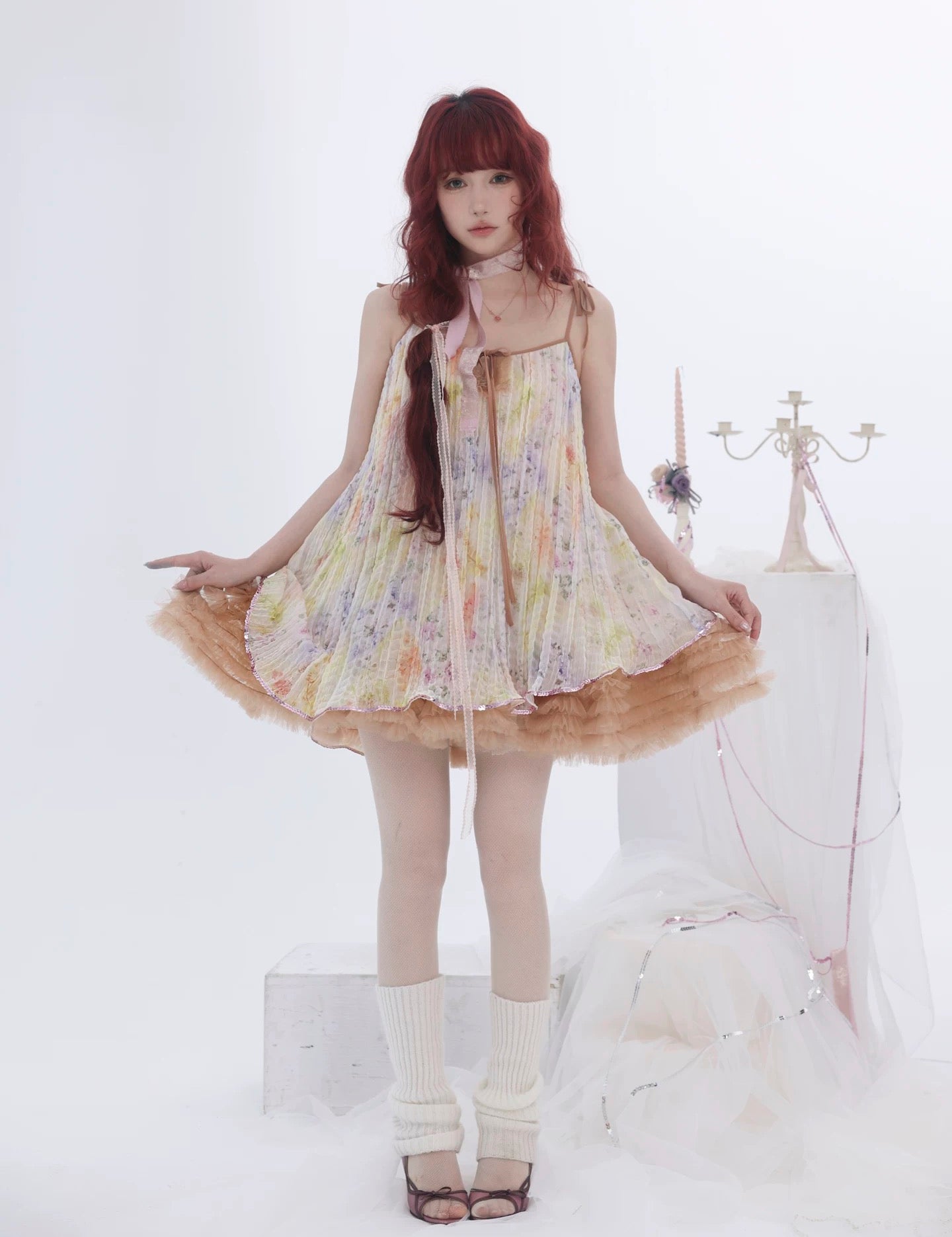 [ローズアイランド] ピンクマーメイドミニフローラルドレス
