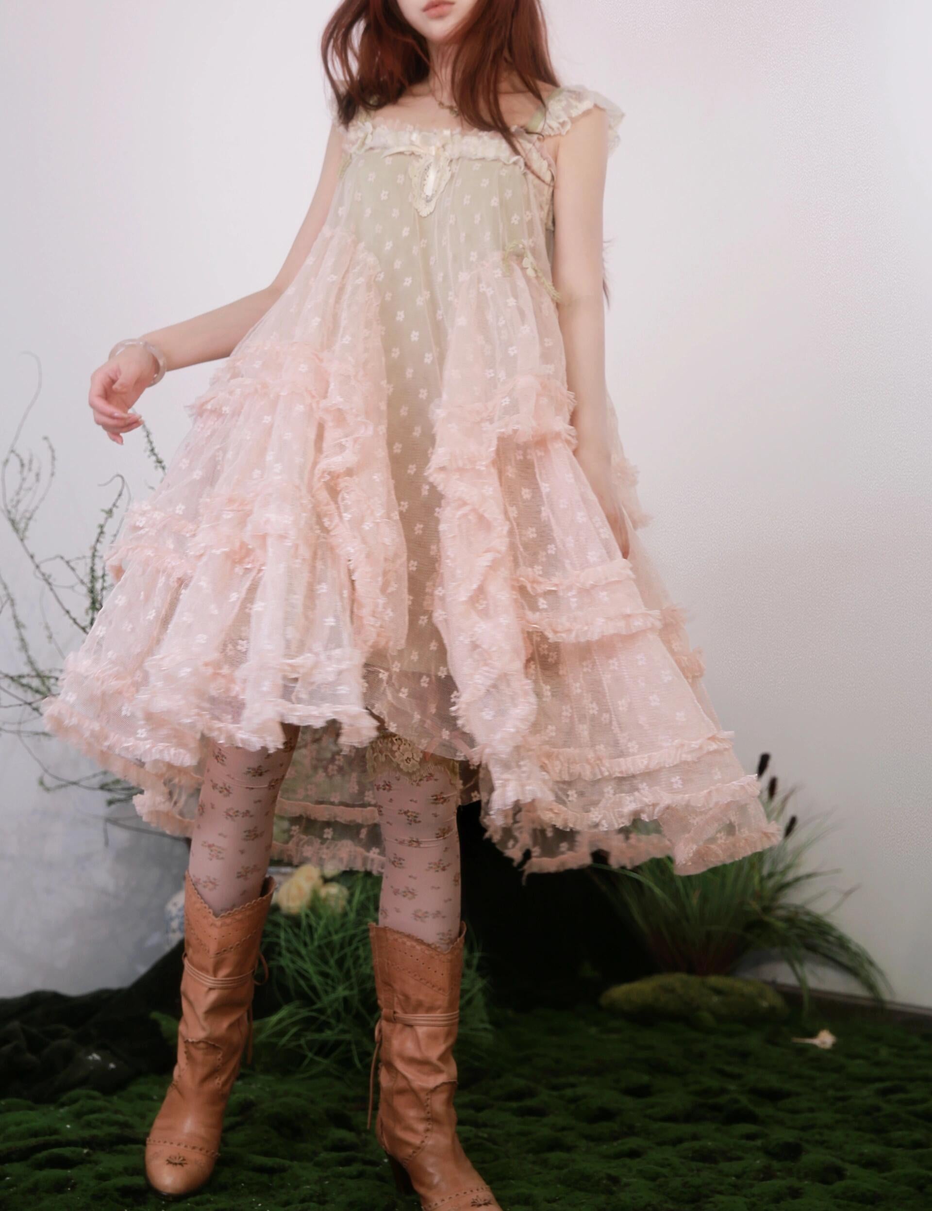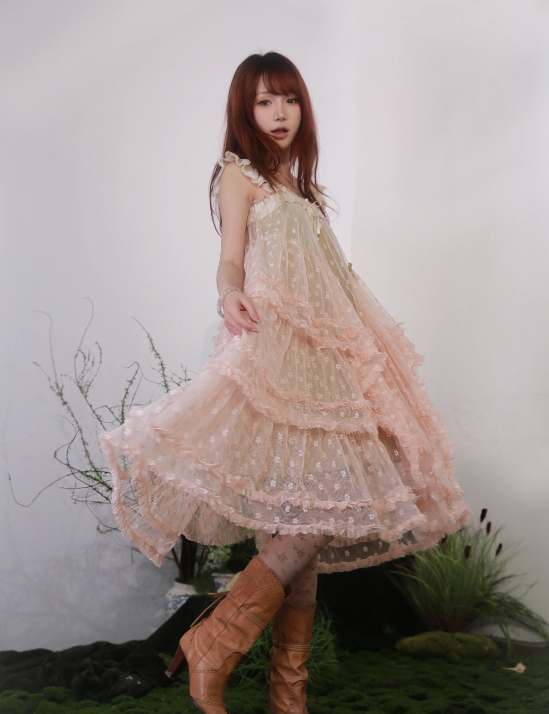 ローズアイランド 25SS フラワーフォレスト フラッタースリーブ チュールドレス