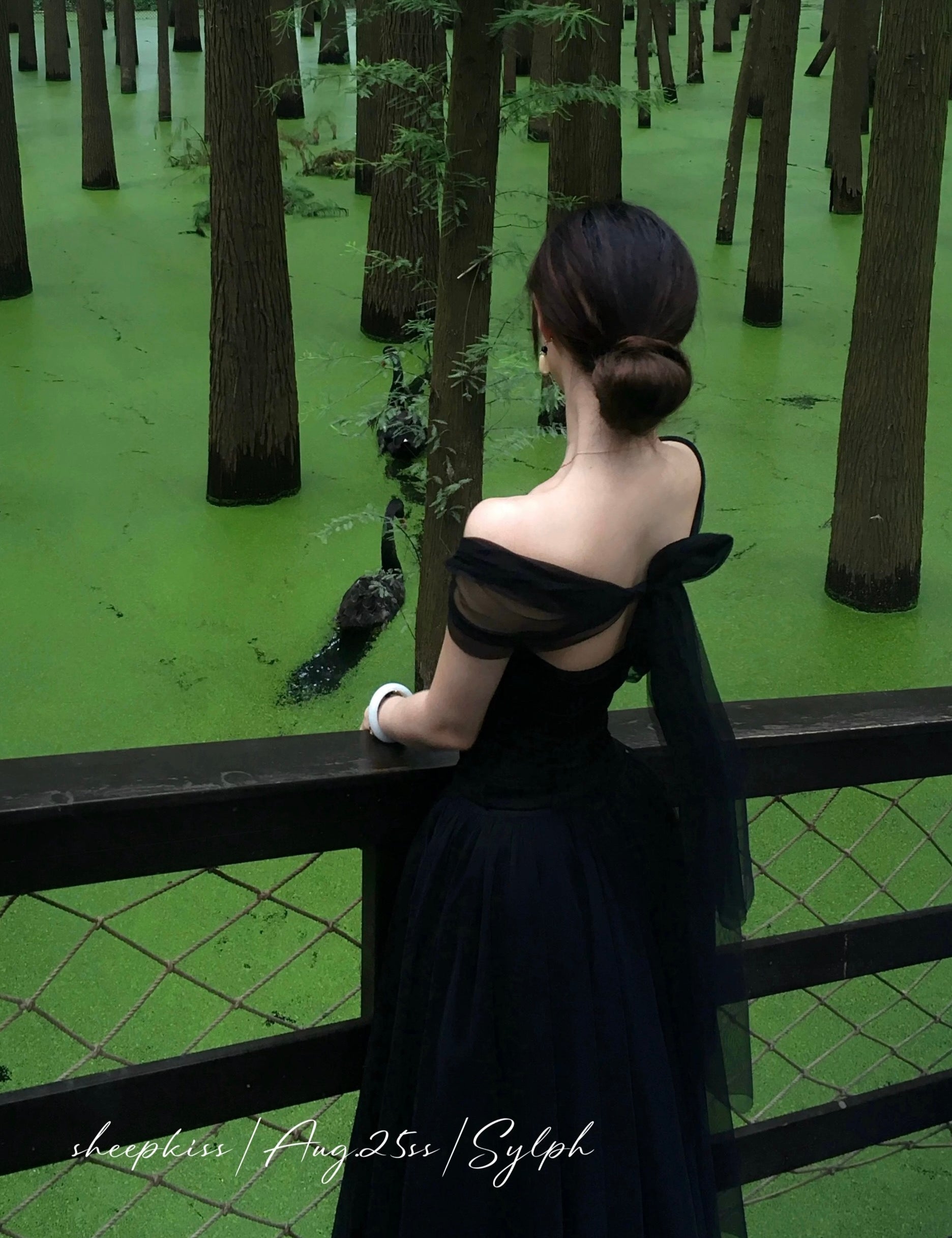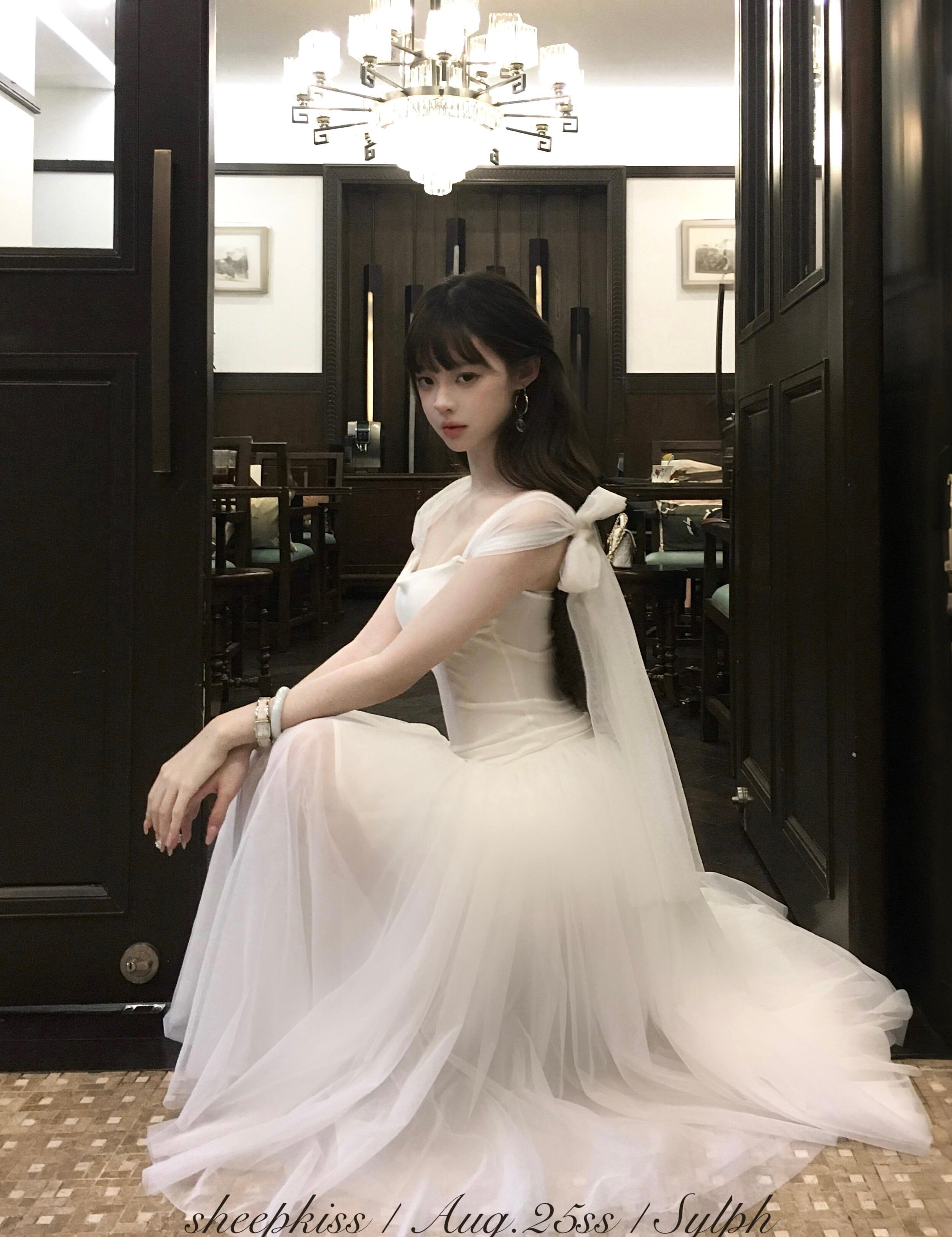 シープキス スワンレイク マキシ チュール シルク スカート