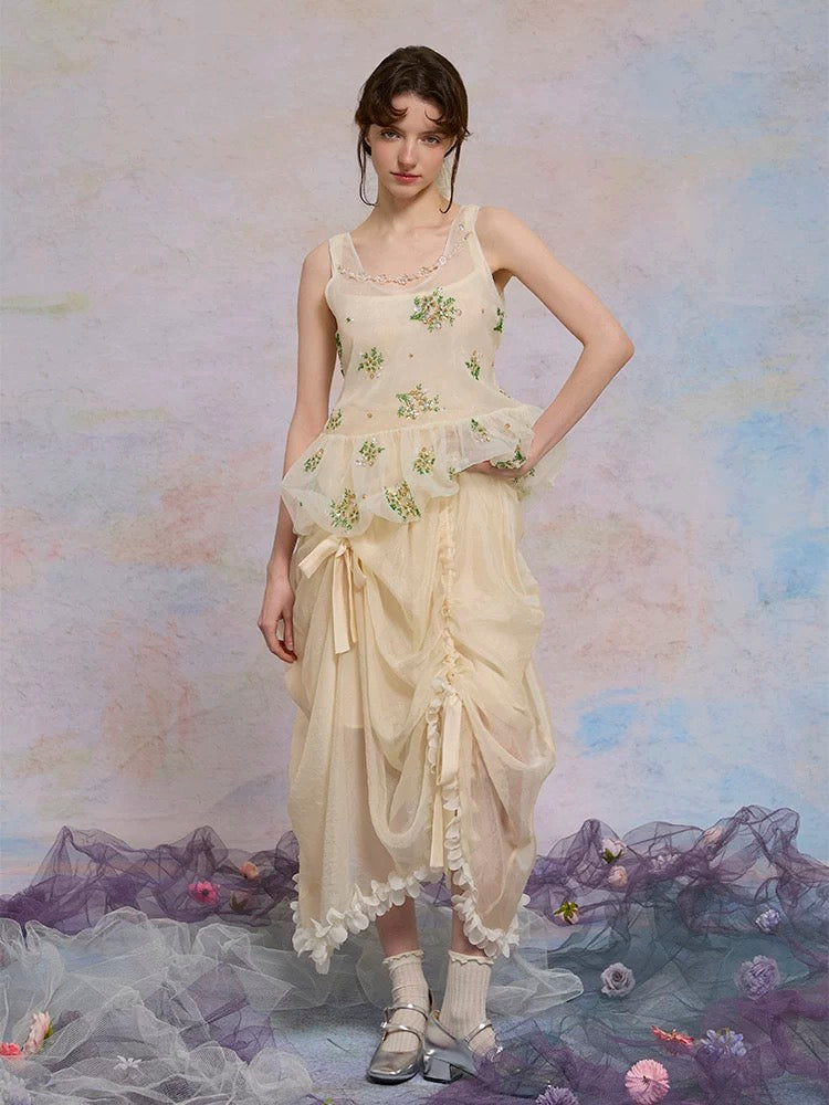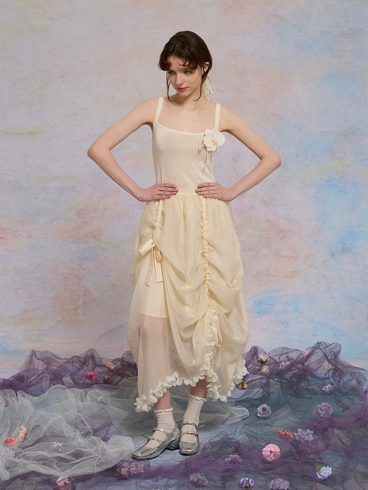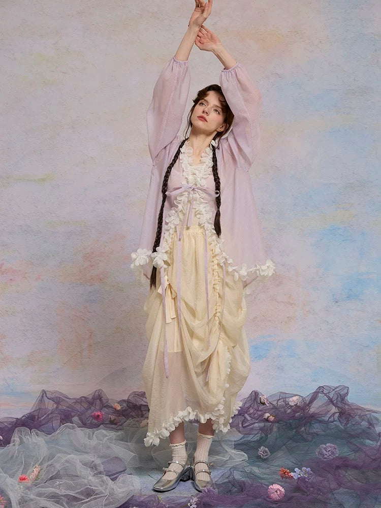 ロマンチックなスタイリング、庭園散策、夢のようなカフェデートにぴったり。フレッシュなボタニカルなグリーン、柔らかなロマンティックな輝きを放つライラックなど、どんな色を選んでも、このドレスはおとぎ話のような柔らかさをあなたの毎日に演出します。