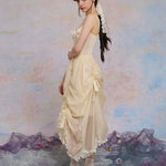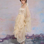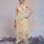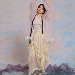 Lactose Studioのロマンチックなルーシュミディドレスで、印象派の白昼夢の世界へ足を踏み入れましょう。モネの「睡蓮」にインスピレーションを得た、柔らかなセージグリーンとかすかなラベンダーといった絵画的なカラーバリエーションは、夜明け前の静かな庭の池の静寂を彷彿とさせます。