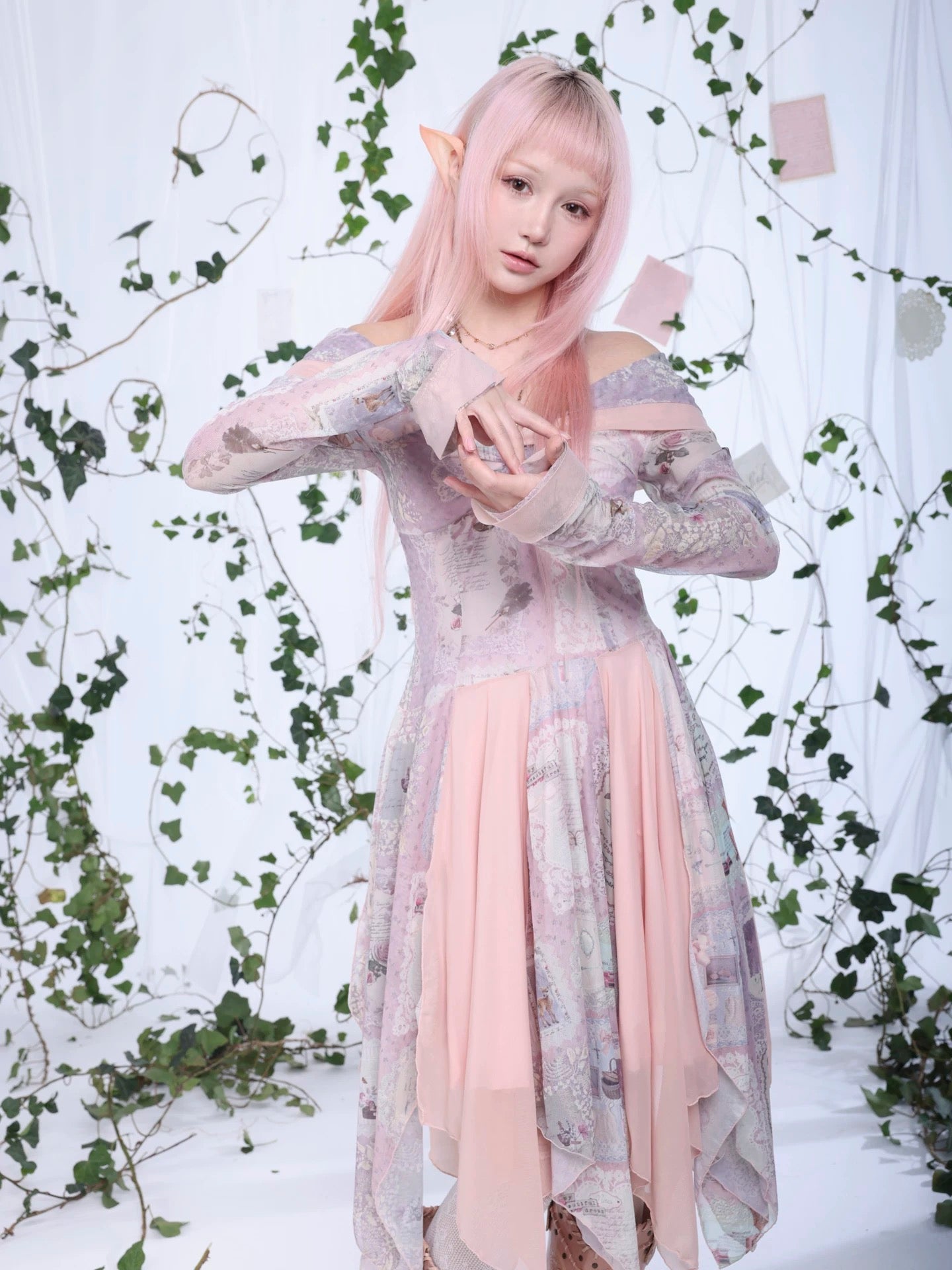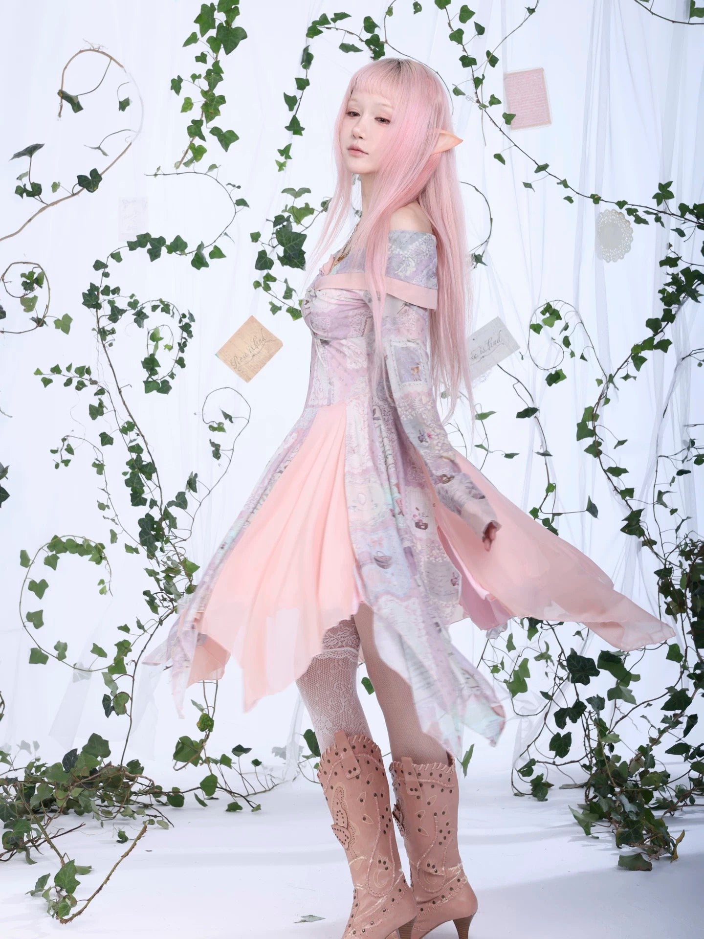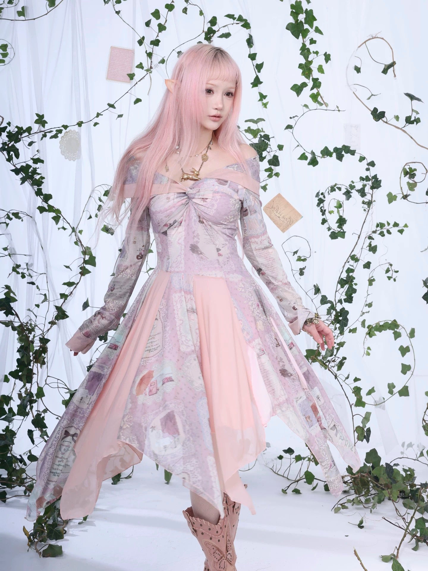 A flowing fairycore dress inspired by vintage storybook fragments and soft forest poetry.