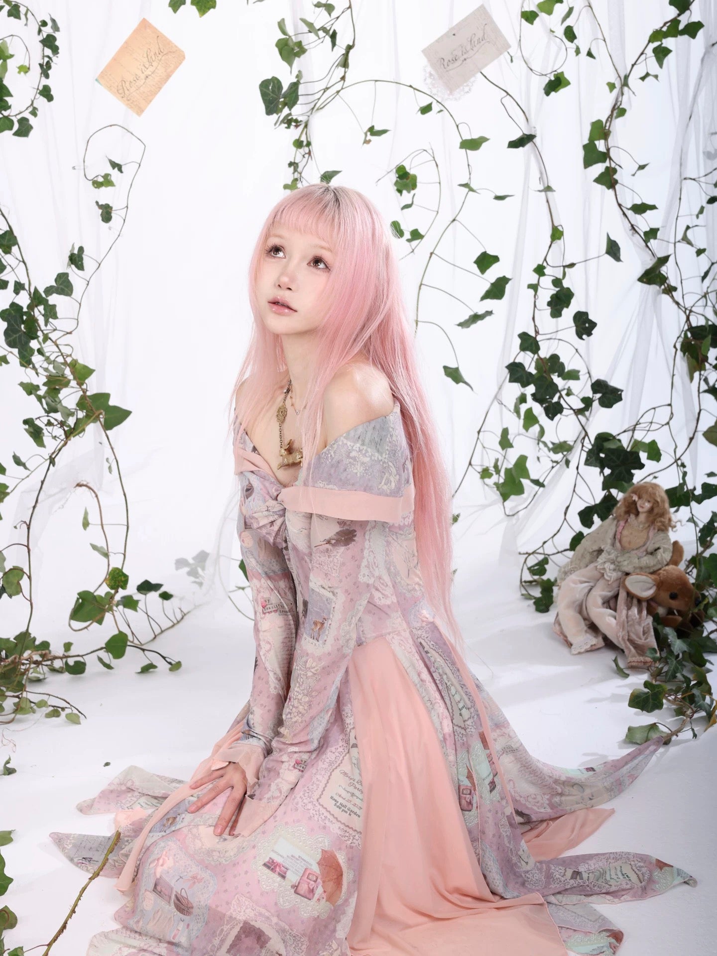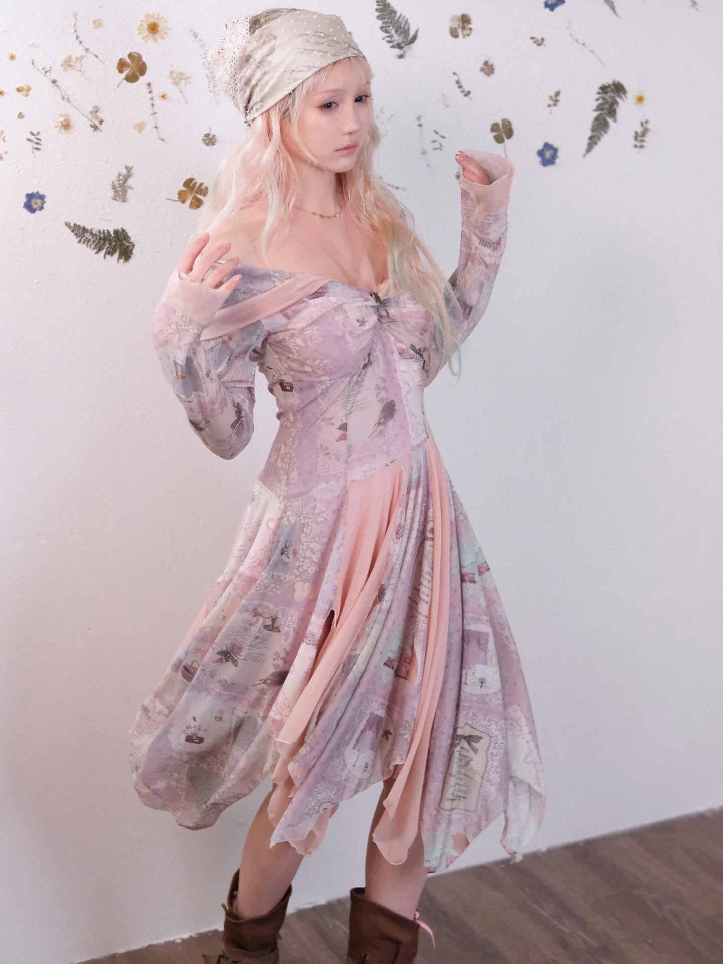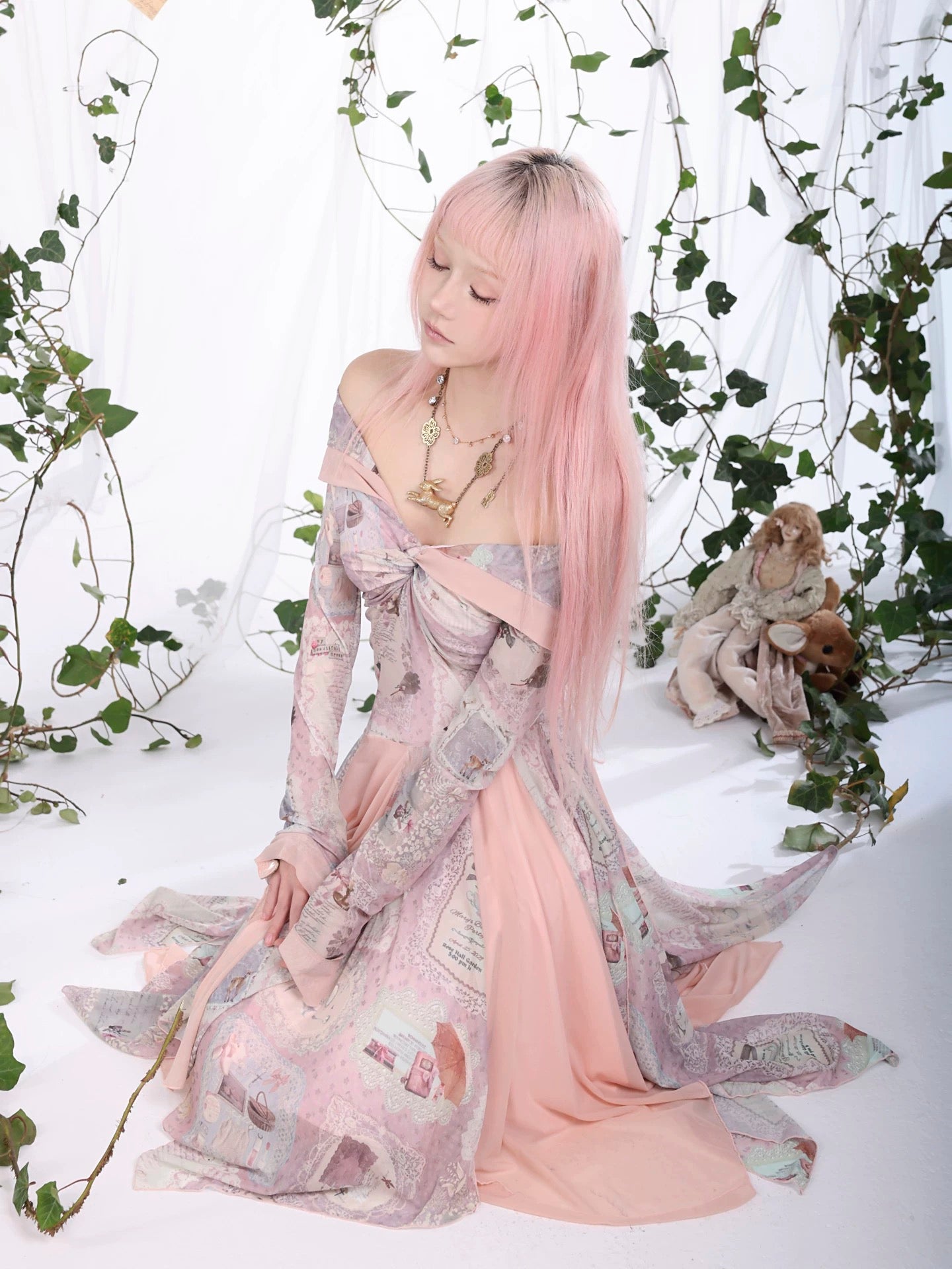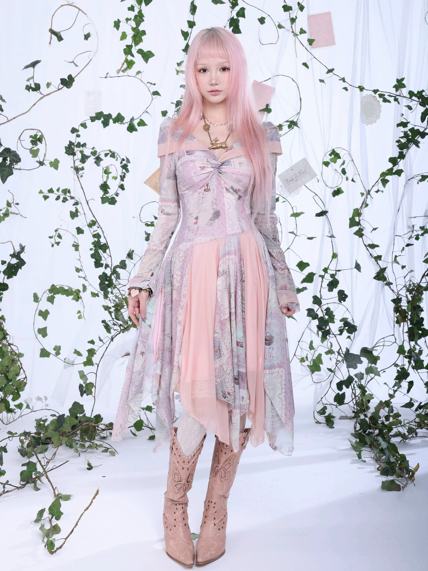 A flowing fairycore dress inspired by vintage storybook fragments and soft forest poetry.
