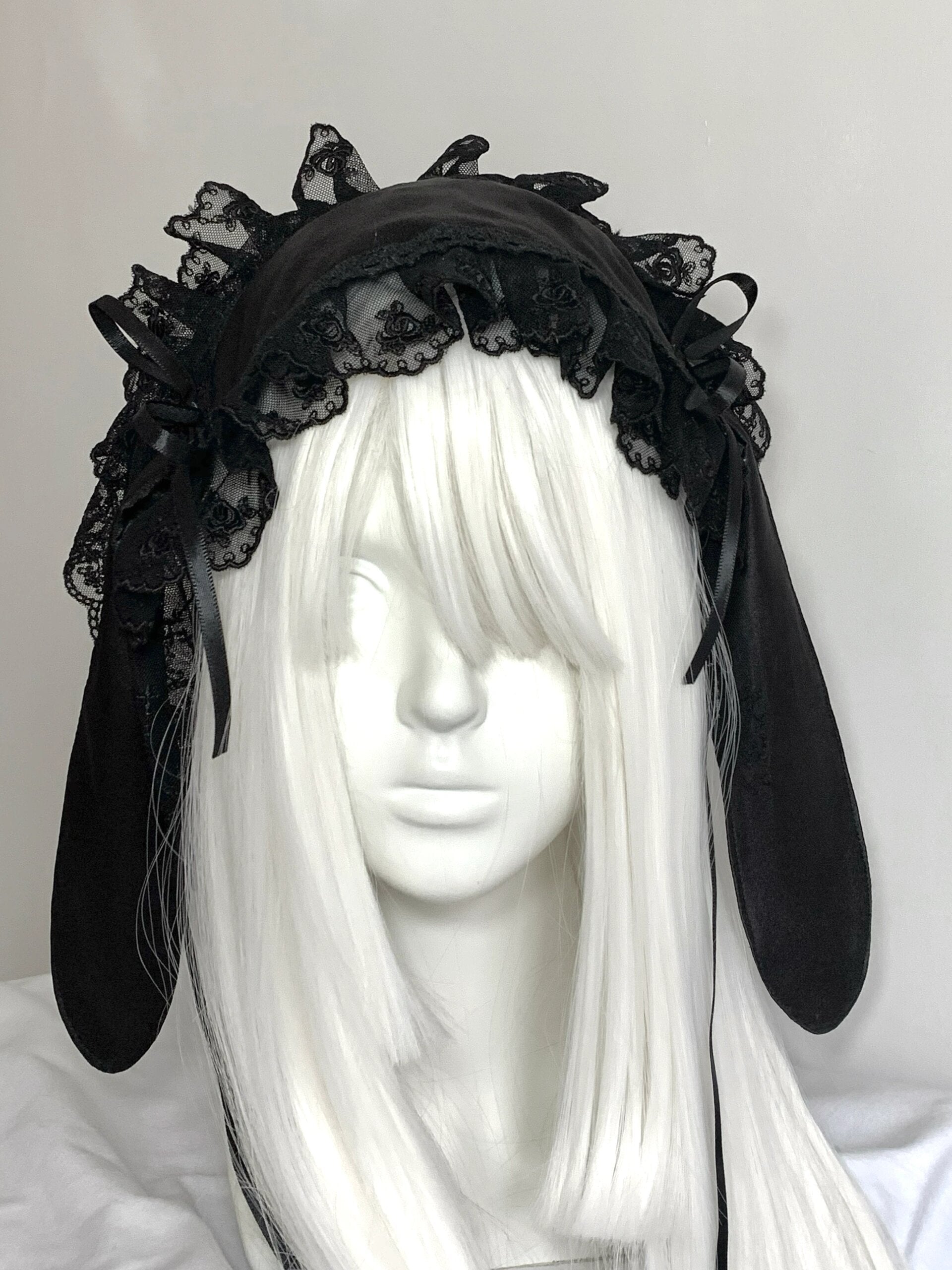 ブラックバージョンのハンドメイドバニーハットヘッドバンドゴシックロリータファッション