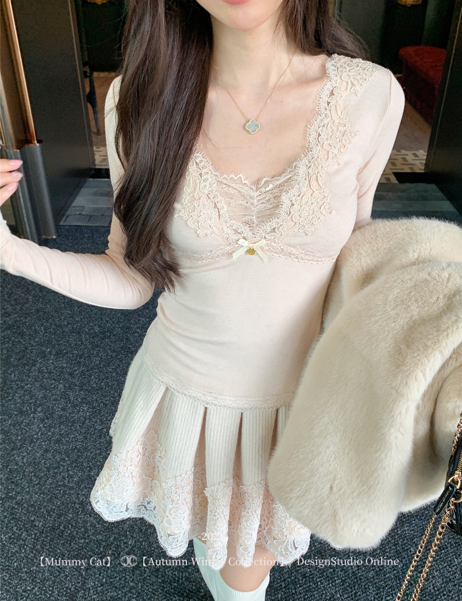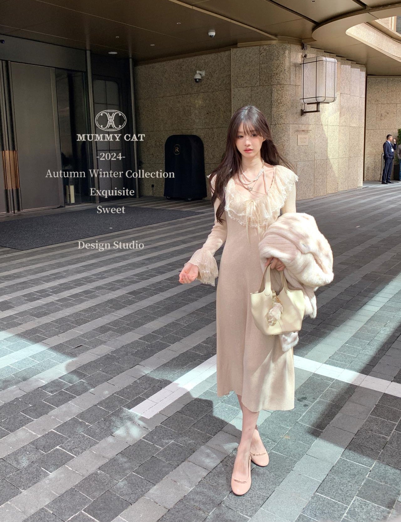 [マミーキャット] エンジェリックロマンス レースニットセーターワンピース