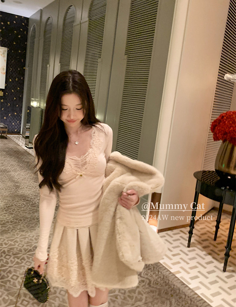 [マミーキャット] マイドリームエンジェル刺繍レースニットトップス スウェットシャツ