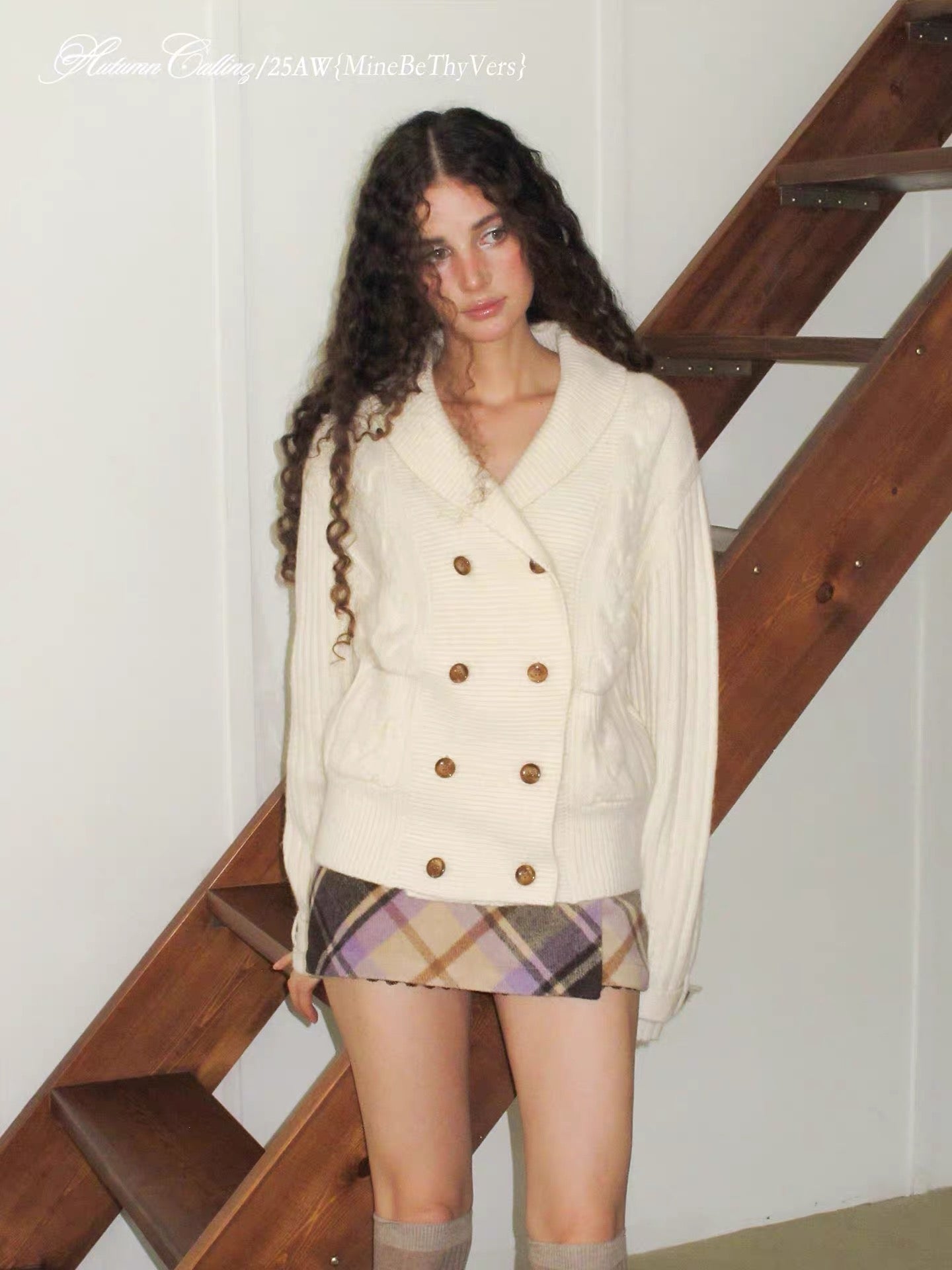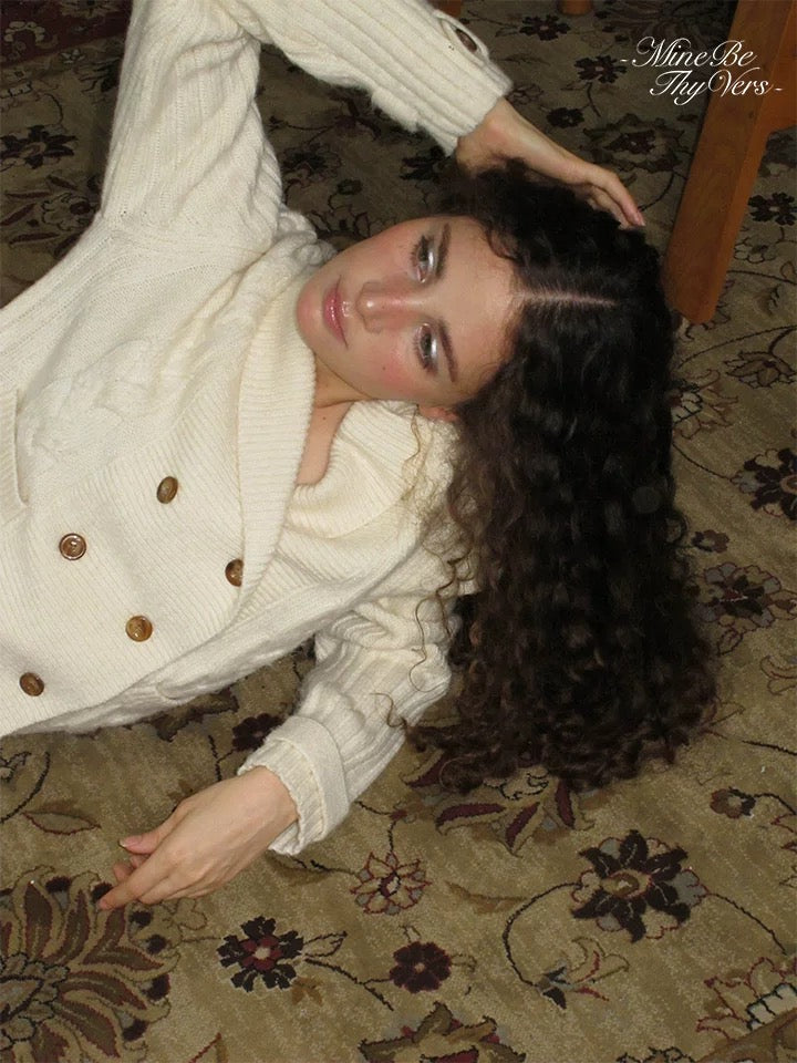 Wrap yourself in cozy sophistication with this double-breasted cable knit cardigan. Featuring a classic shawl collar, wooden buttons, and a relaxed silhouette, this piece brings a warm, vintage charm to your autumn wardrobe. The thick knit texture and soft wool blend make it both elegant and comfortable — perfect for layering over dresses or pairing with plaid skirts for that dreamy cottage feel.