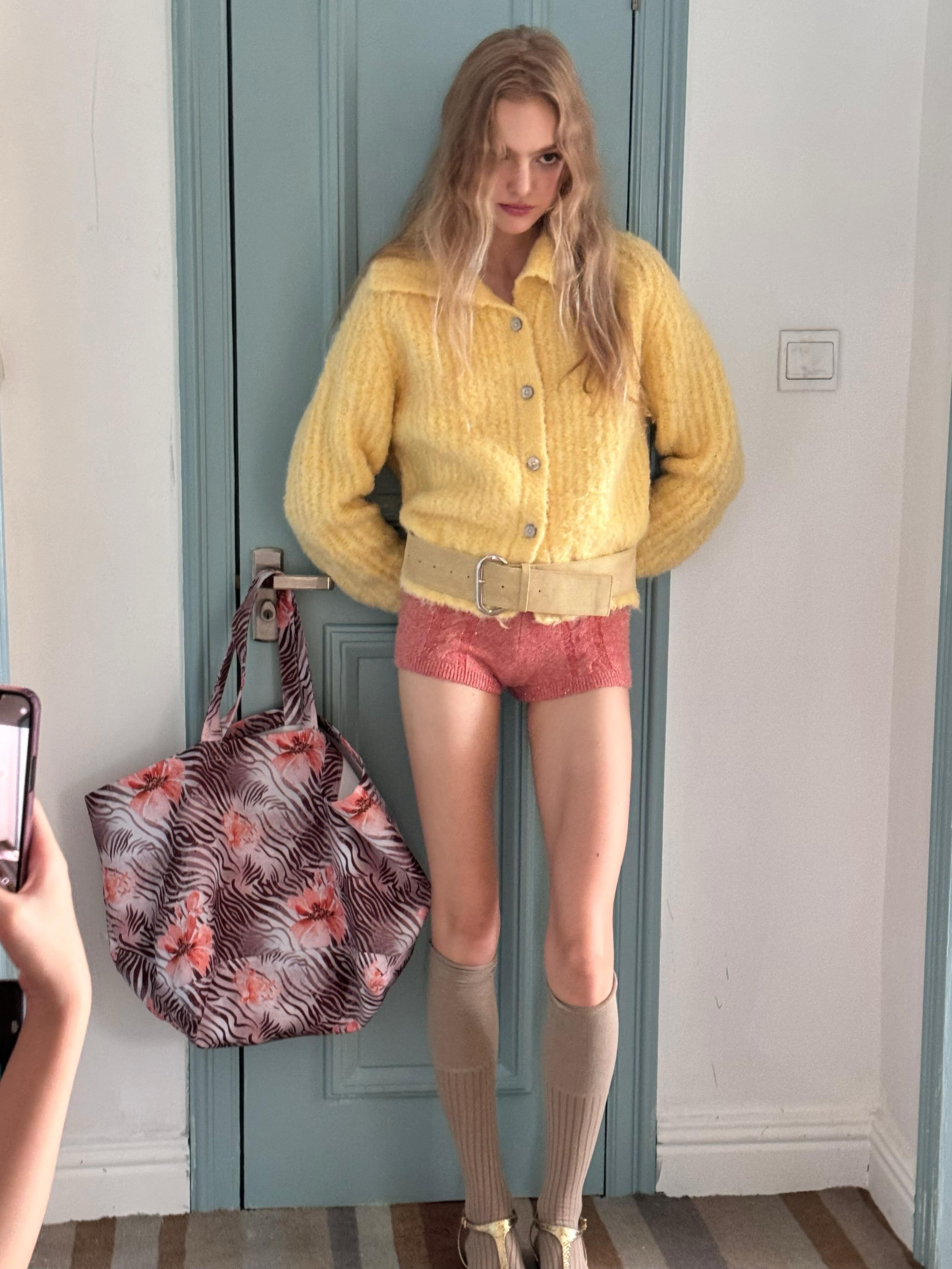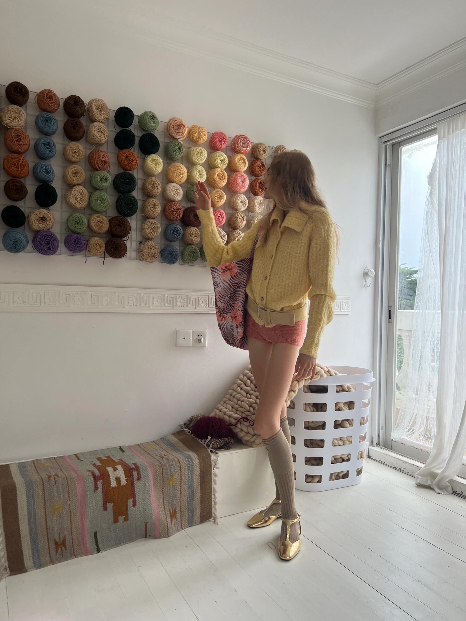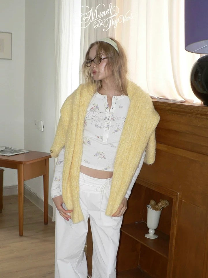 Minebythyversの「Étreinte Douce」ソフトセーターウールカーディガンは、秋のワードローブにぴったりの一枚です。柔らかく温かみのある素材で、肌寒い日も暖かく過ごせます。パステルカラーは様々なコーディネートに合わせやすく、チャーミングでコケットな雰囲気を演出します。