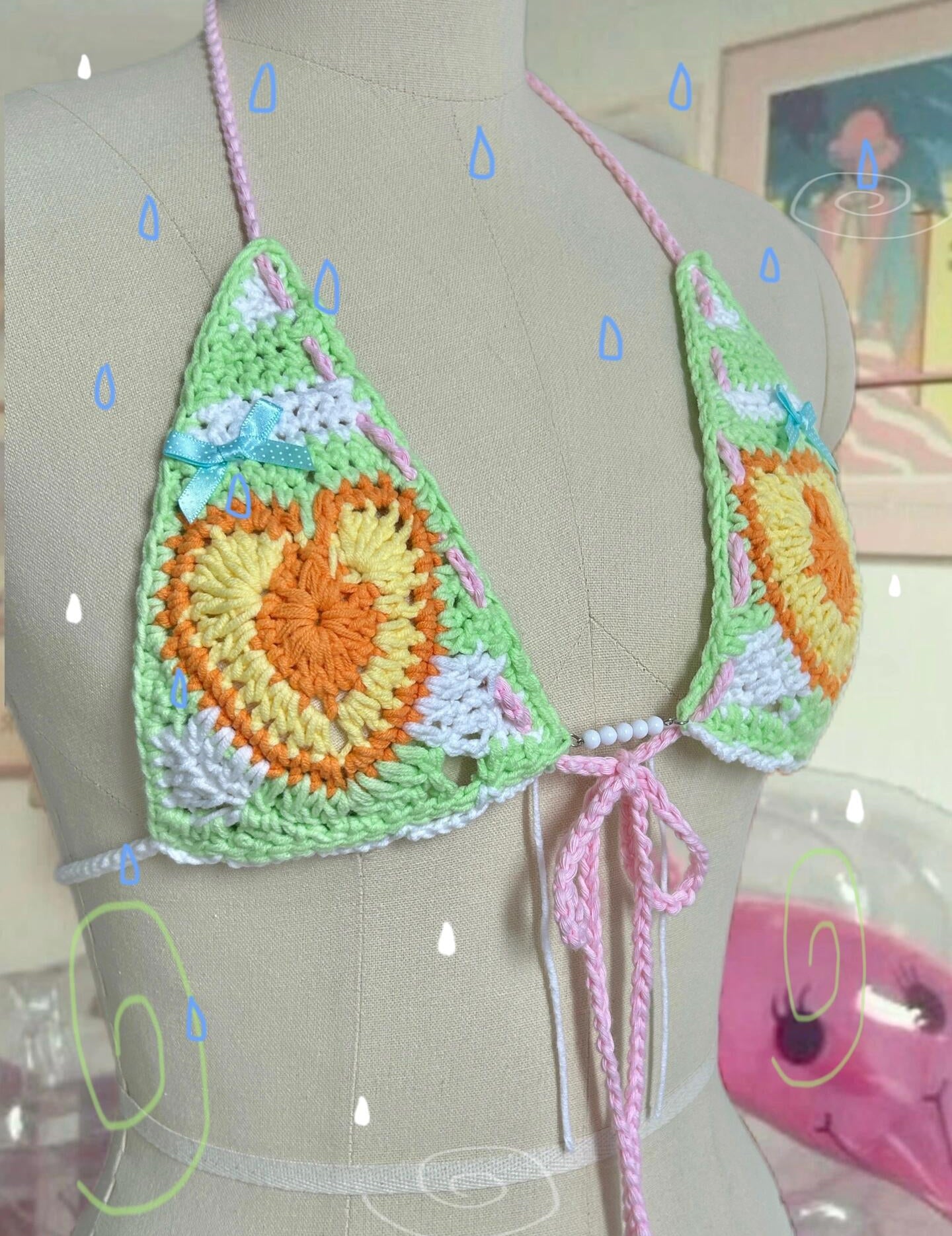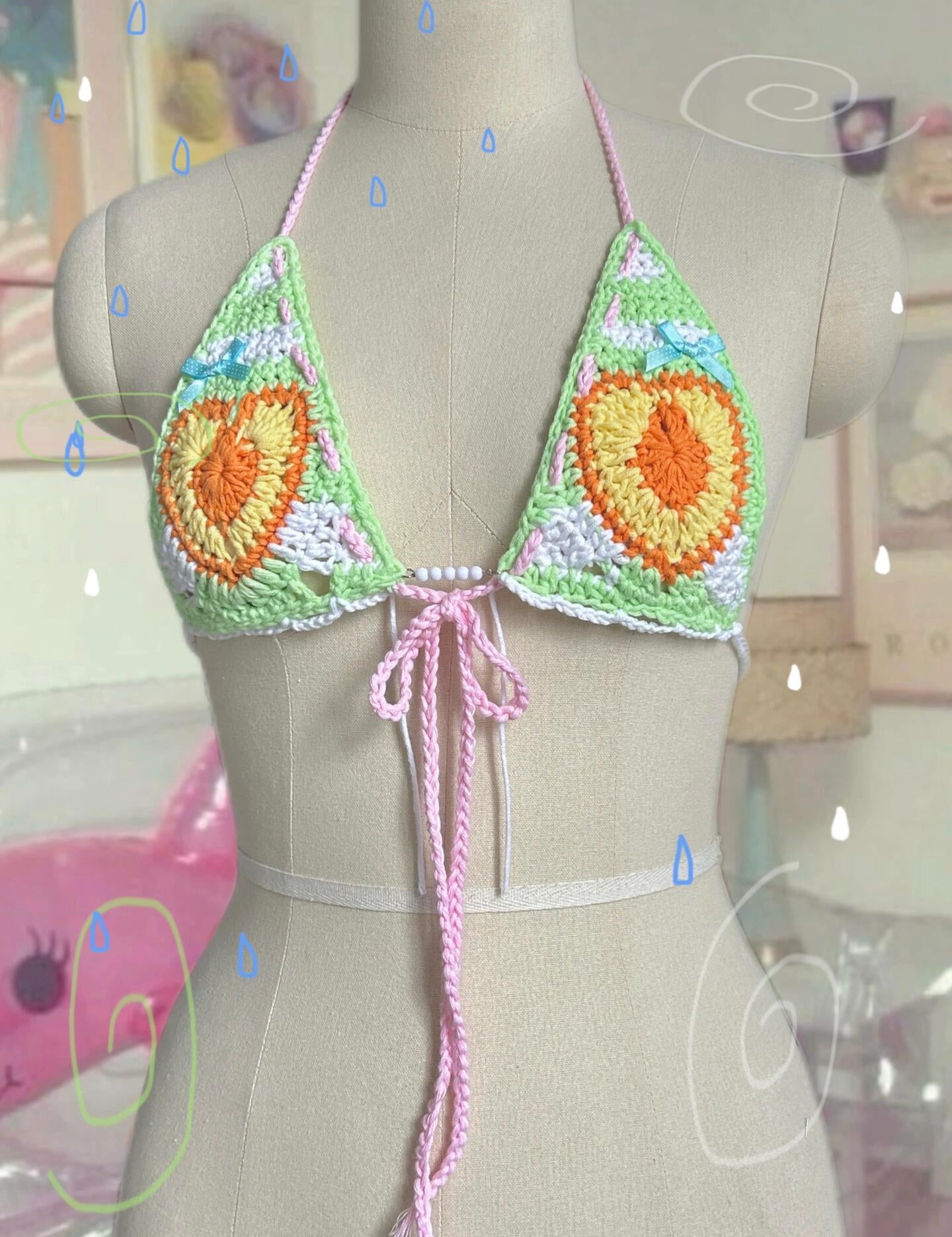 [カスタマイズ手編み] ハワイクラッシュビキニトップ