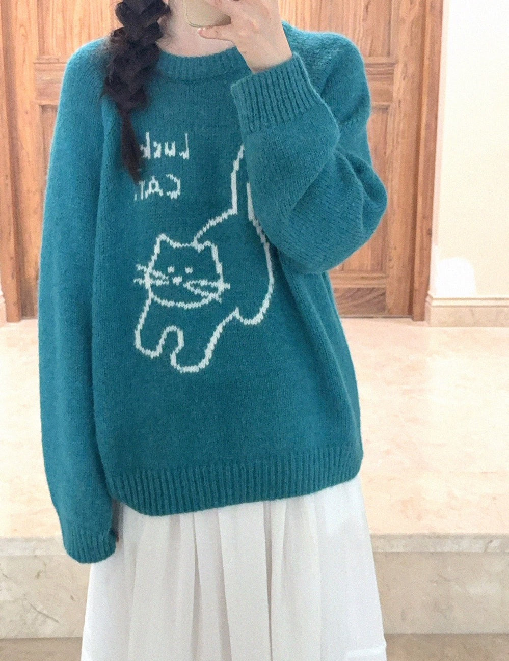 SicAstra Autumn Garden Leaves Patten Cotton Sweater