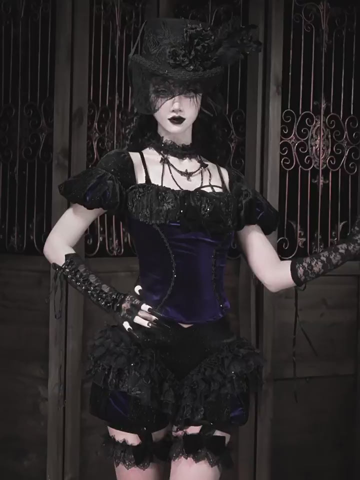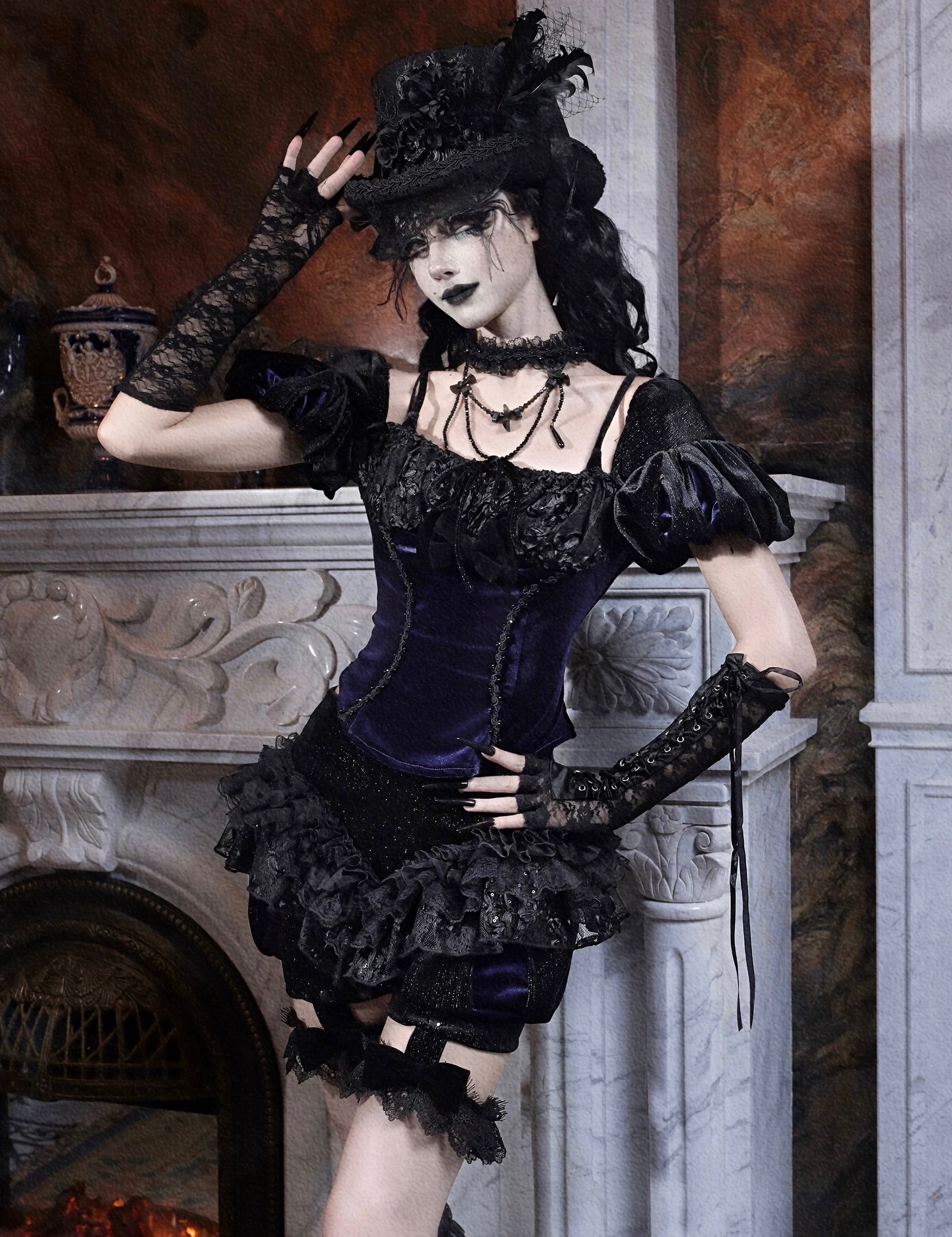 Blood Supply Moon Funeral Velvet Lament Puff-Sleeve Top