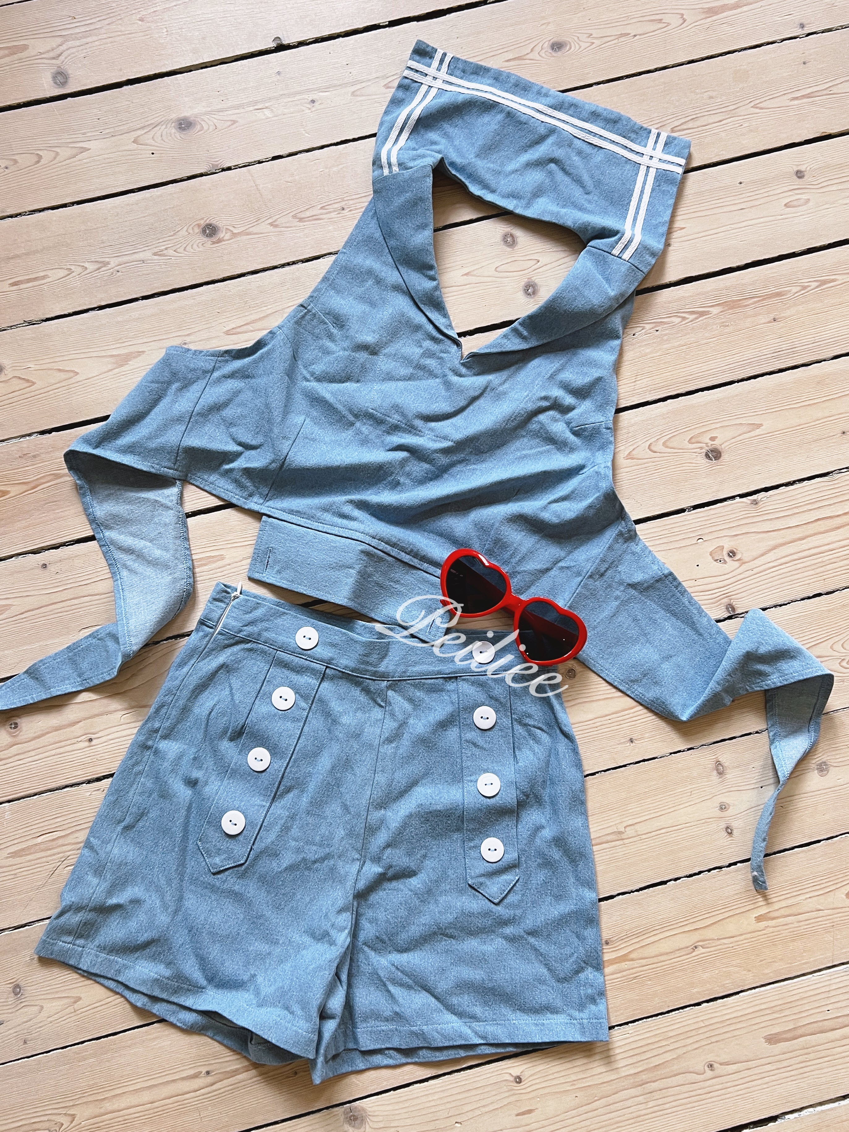 このセットは100%コットンデニム製で、伸縮性はありません。サイズ表をご確認の上、ご購入前にサイズについてご質問がある場合は、info@peilieeshop.comまでメールでお問い合わせください💗