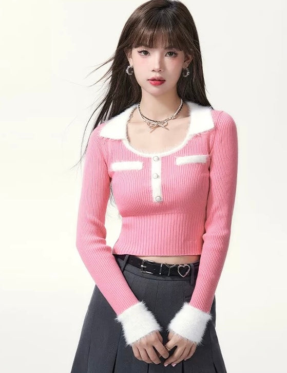 【最終セール】アンダーパス ソフトピンク セーラーニット セータートップス