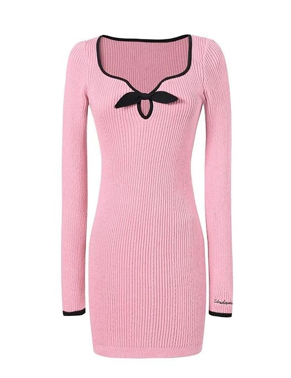 【最終セール】アンダーパス ピンクニットミニワンピース