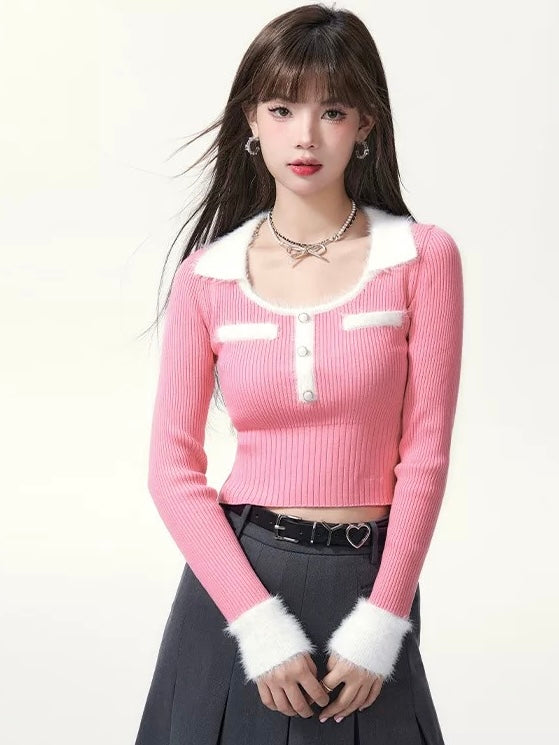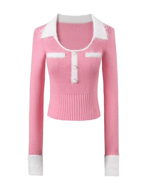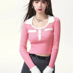 【最終セール】アンダーパス ソフトピンク セーラーニット セータートップス