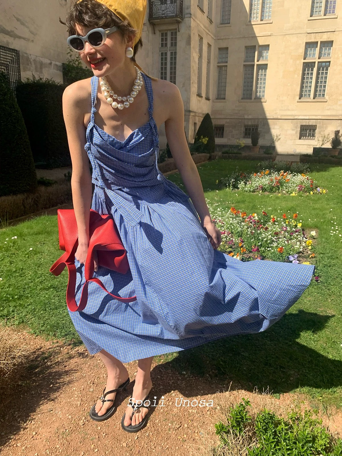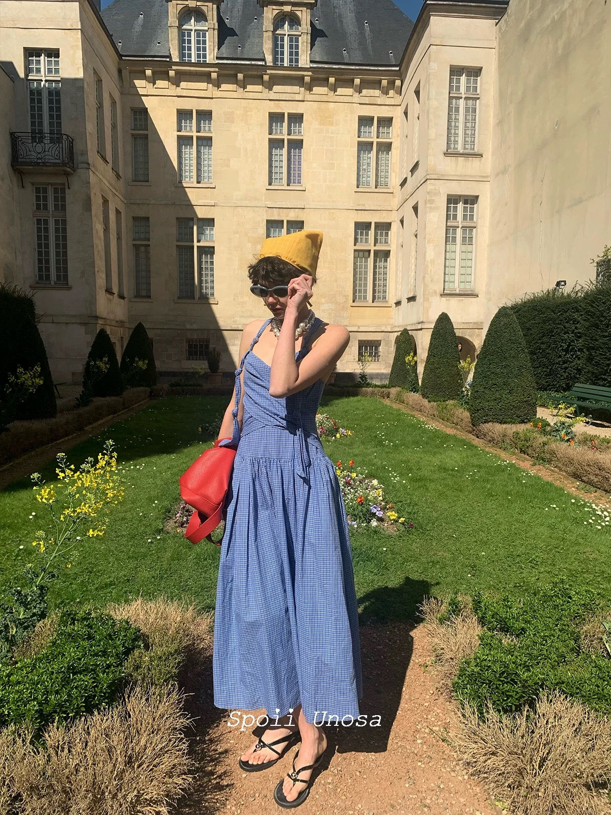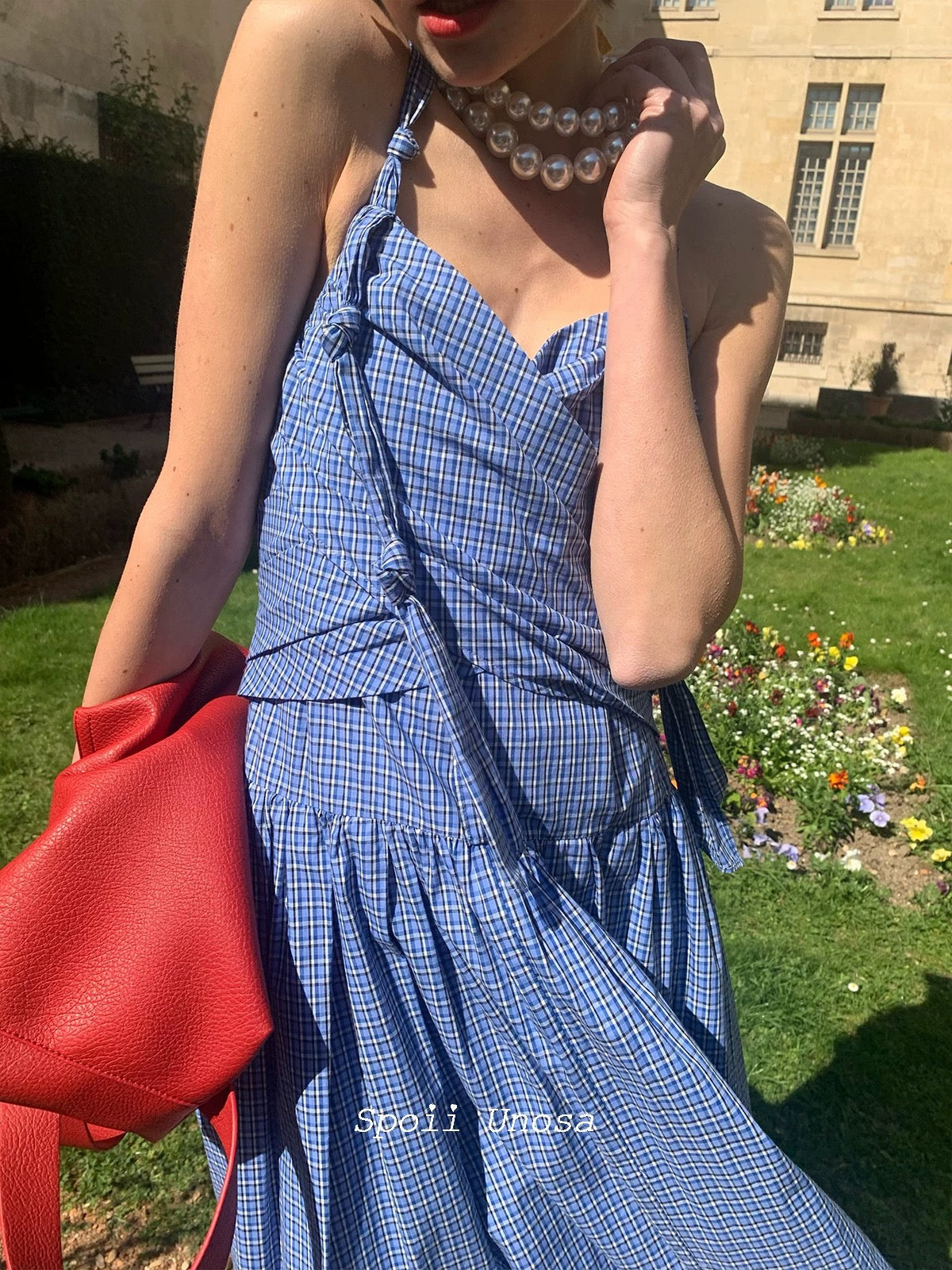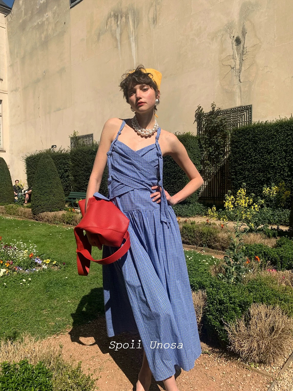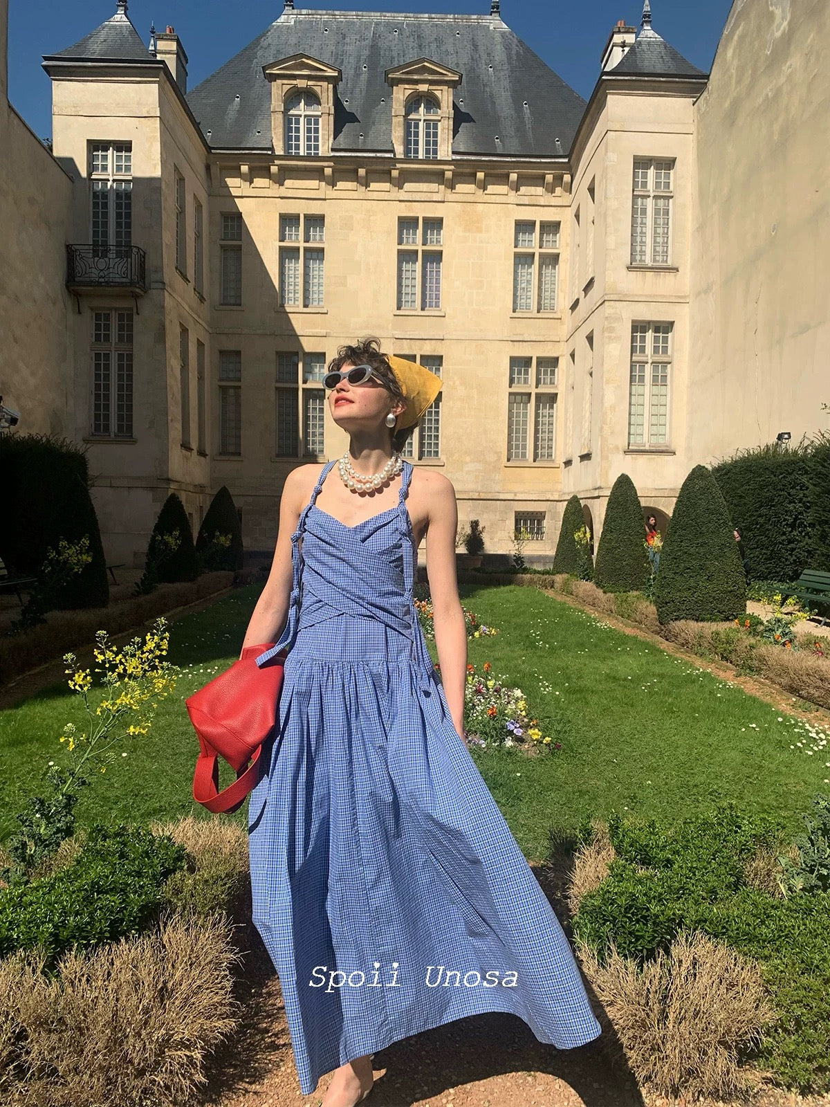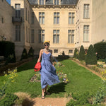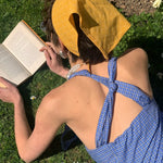 地中海の断崖の上の空からインスピレーションを得た青と白のギンガムチェックは、時が止まったような海風のエッセンスをとらえており、そのすっきりとしたシルエットは若々しい無邪気さを隠しています。
