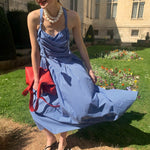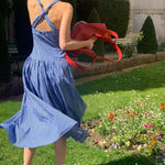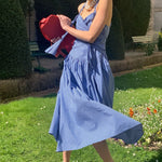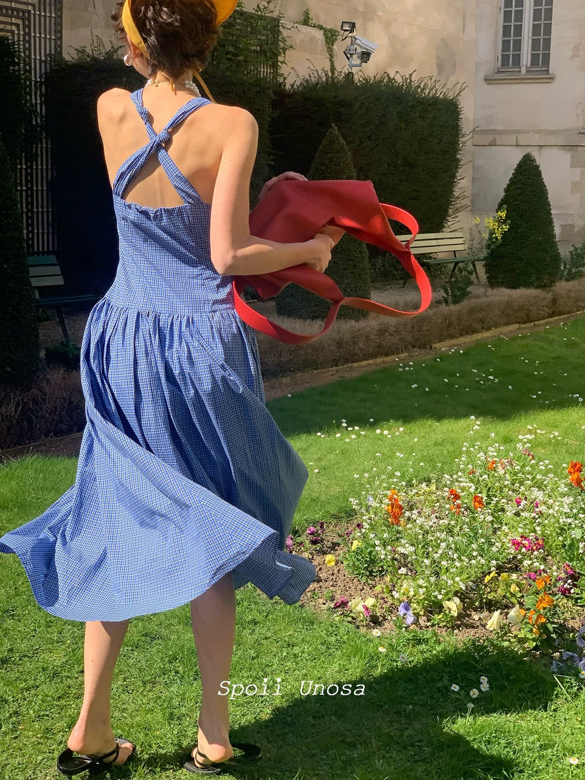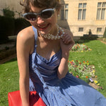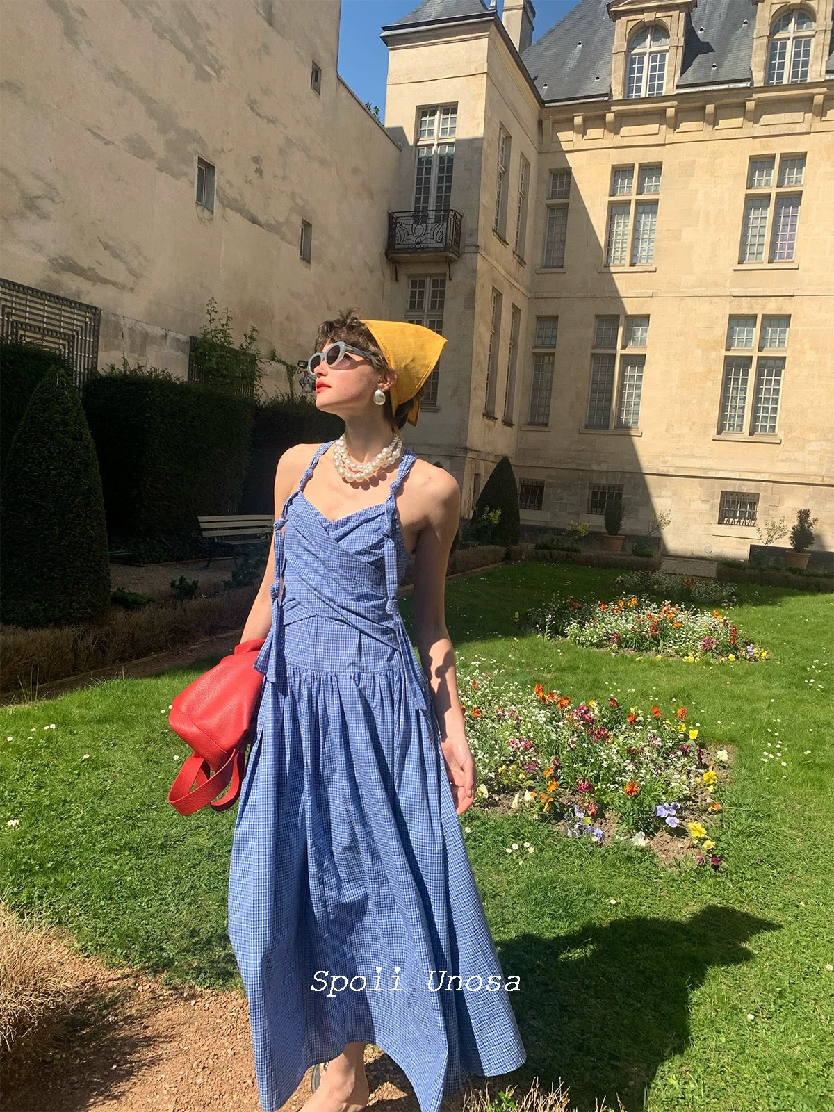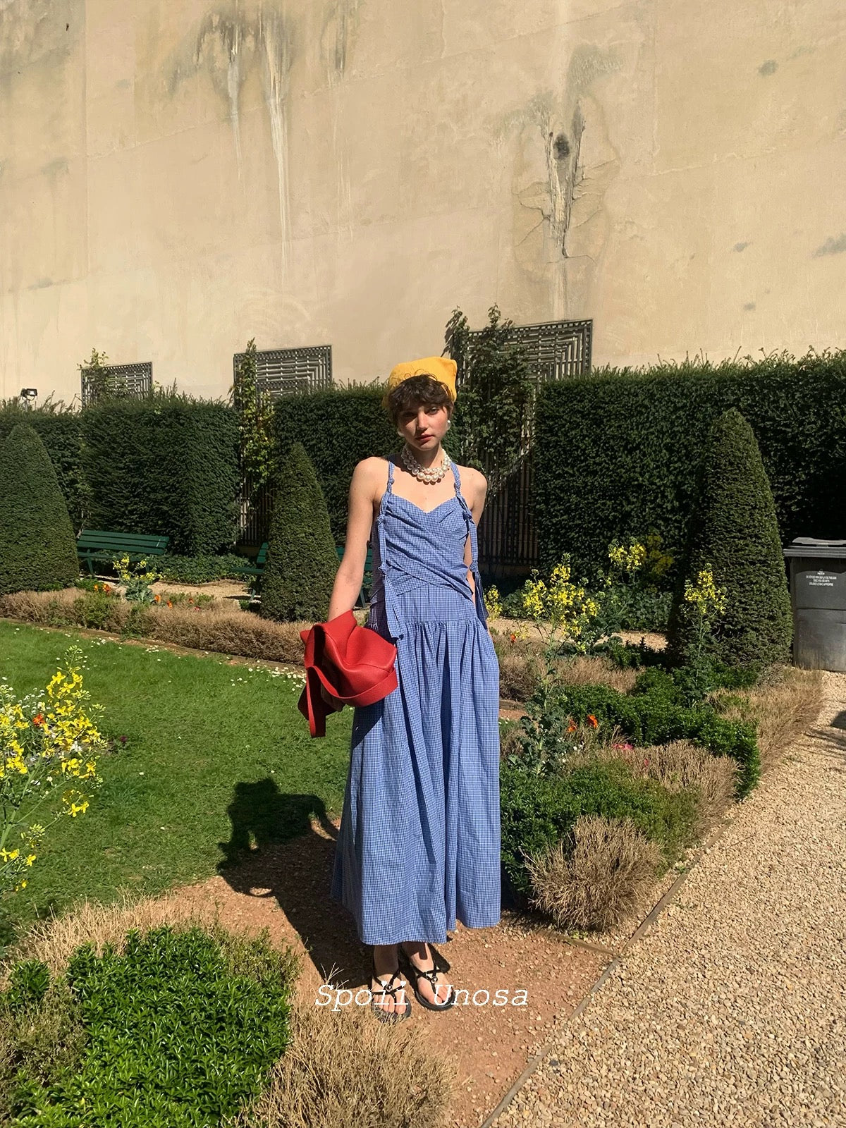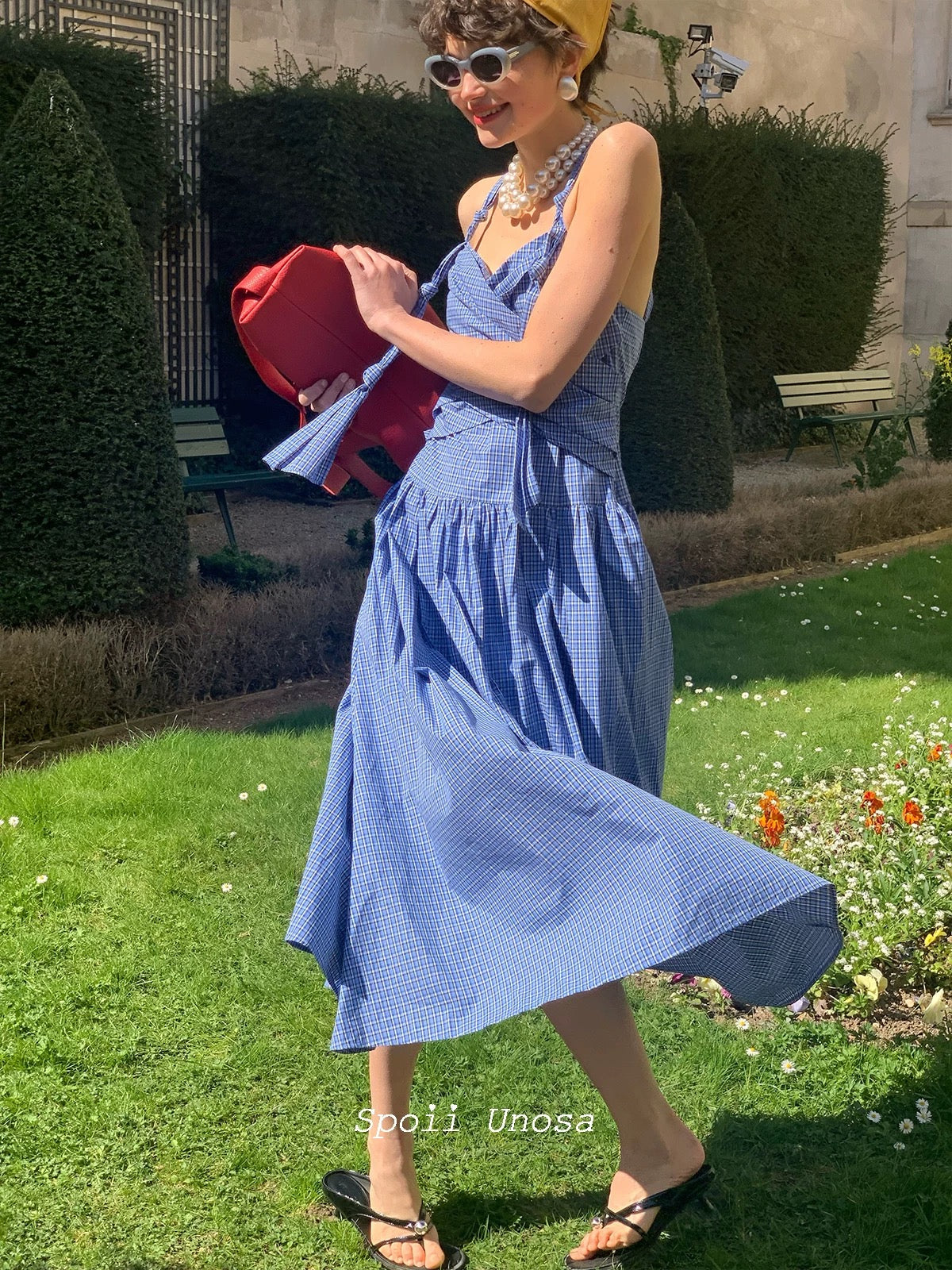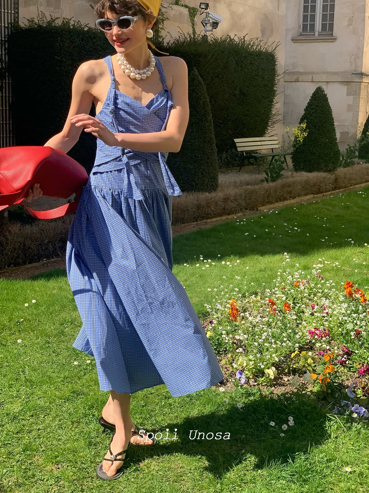 地中海の断崖の上の空からインスピレーションを得た青と白のギンガムチェックは、時が止まったような海風のエッセンスをとらえており、そのすっきりとしたシルエットは若々しい無邪気さを隠しています。