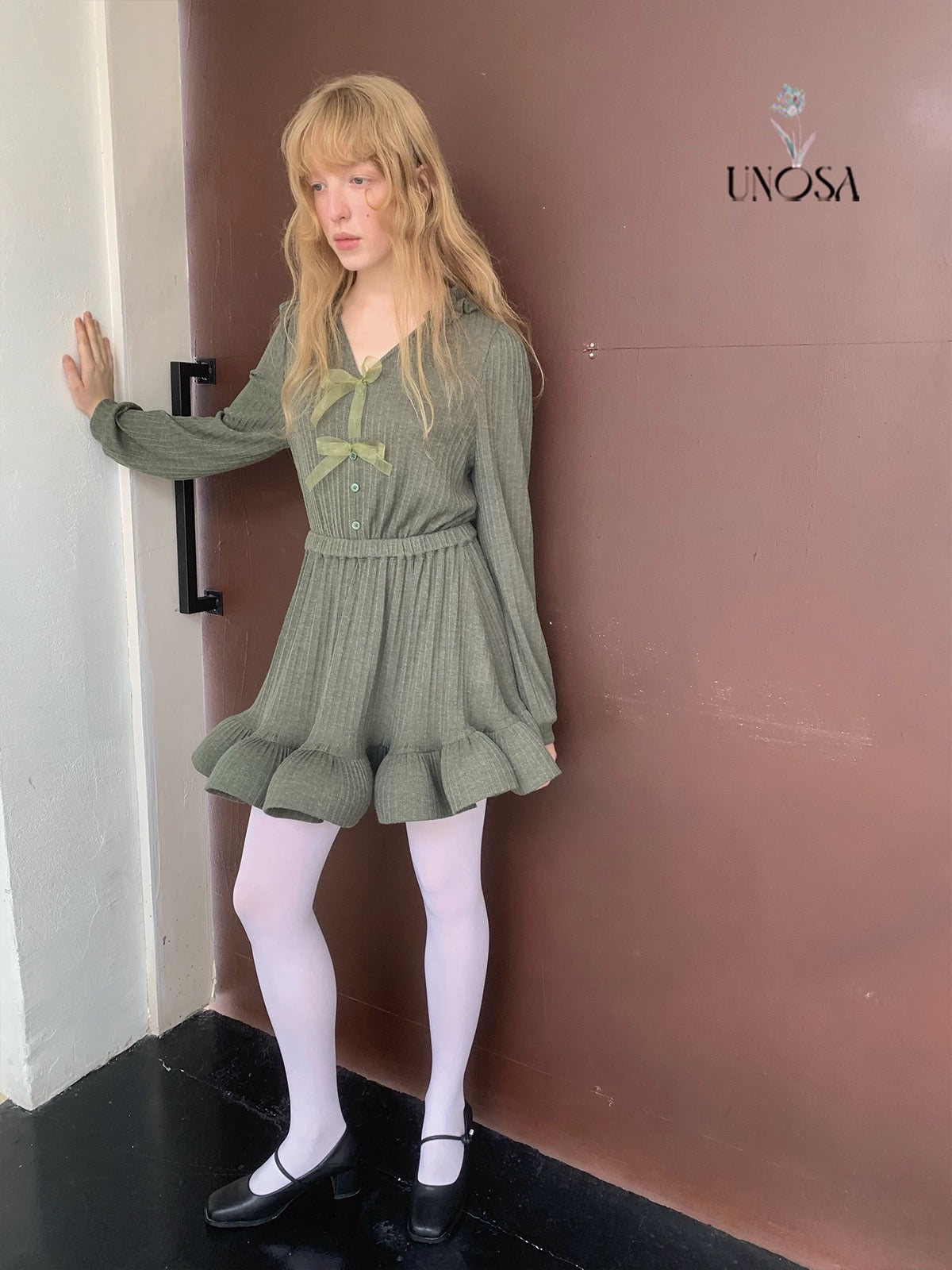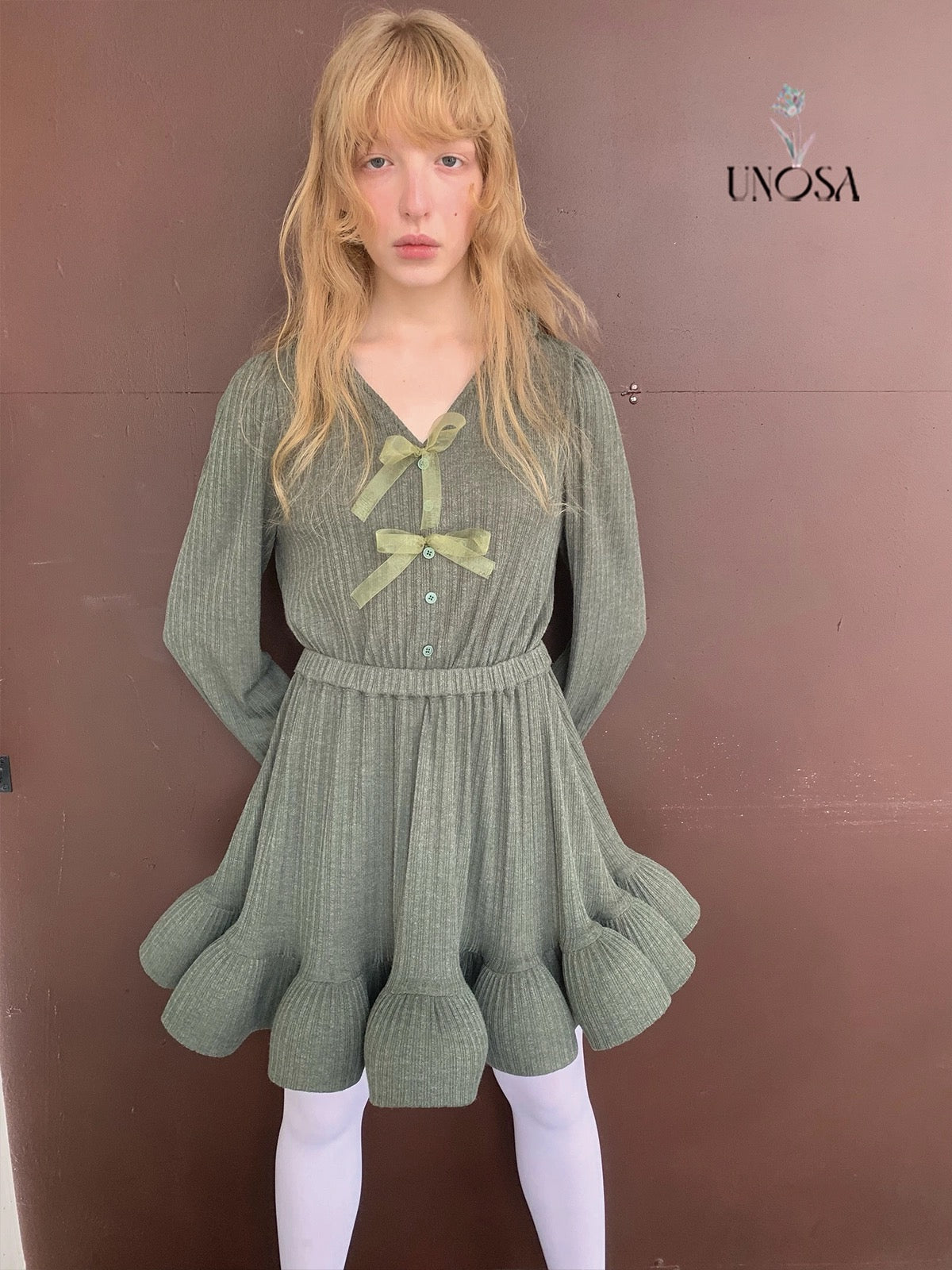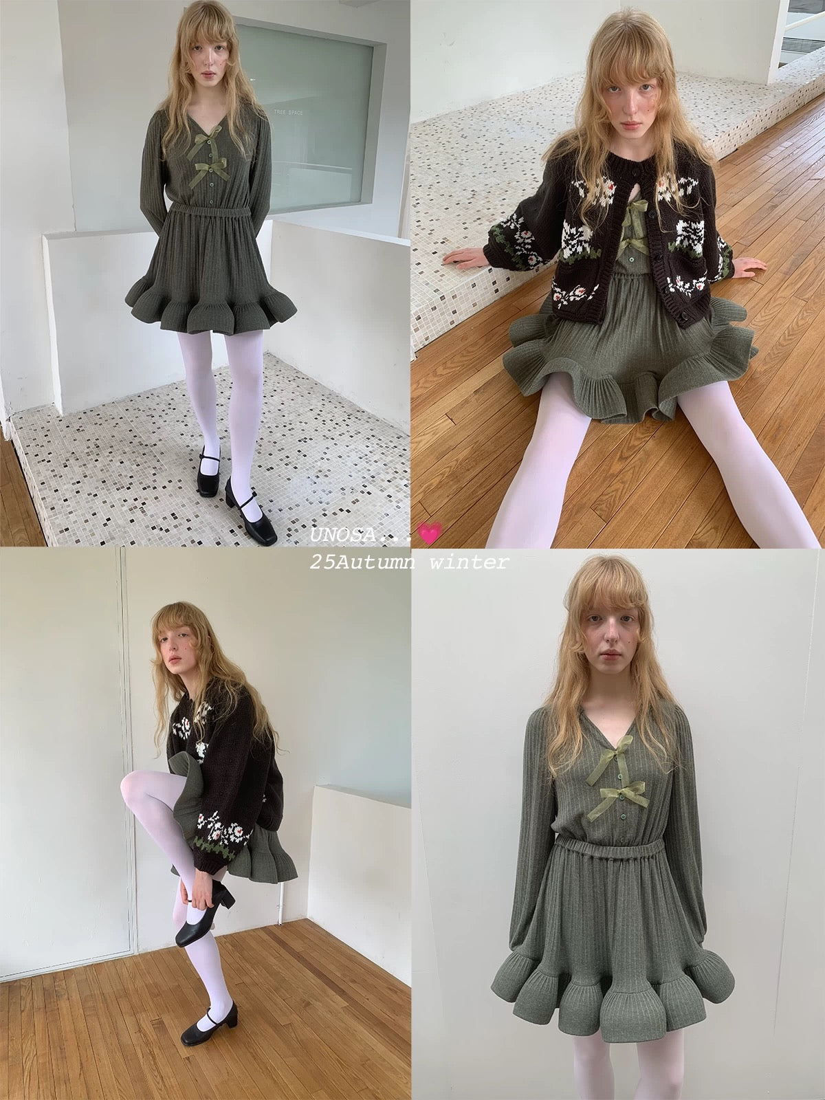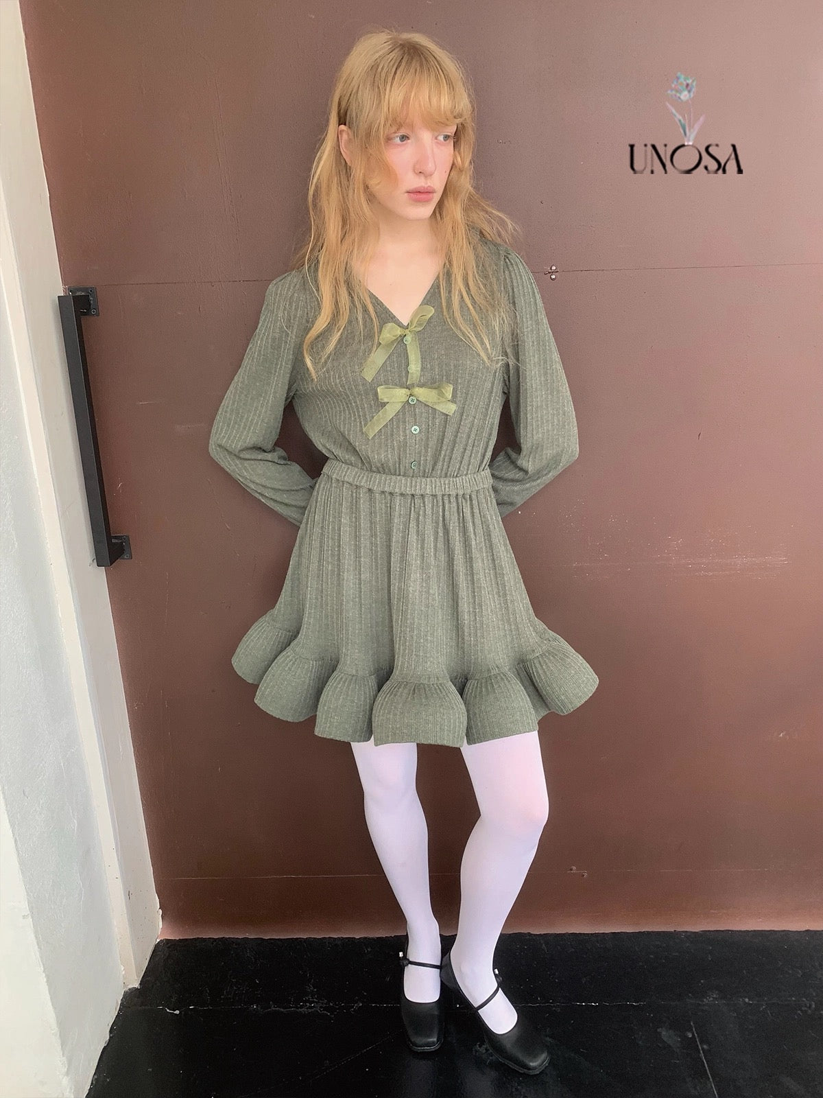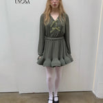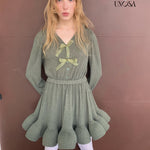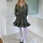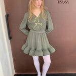 Style keywords: Christmas outfit · romantic winter dress · green knit dress · coquette aesthetic · holiday fairy look