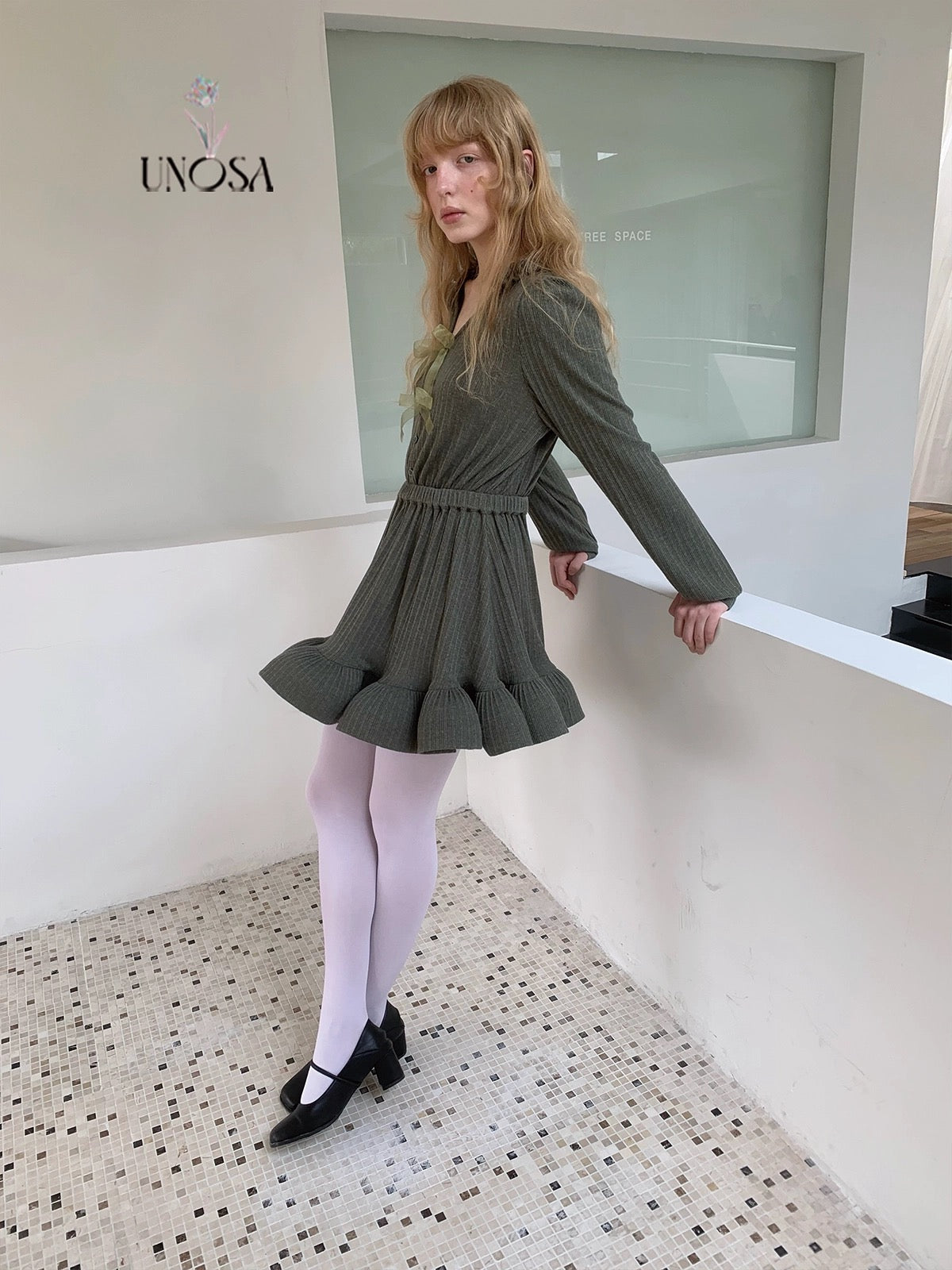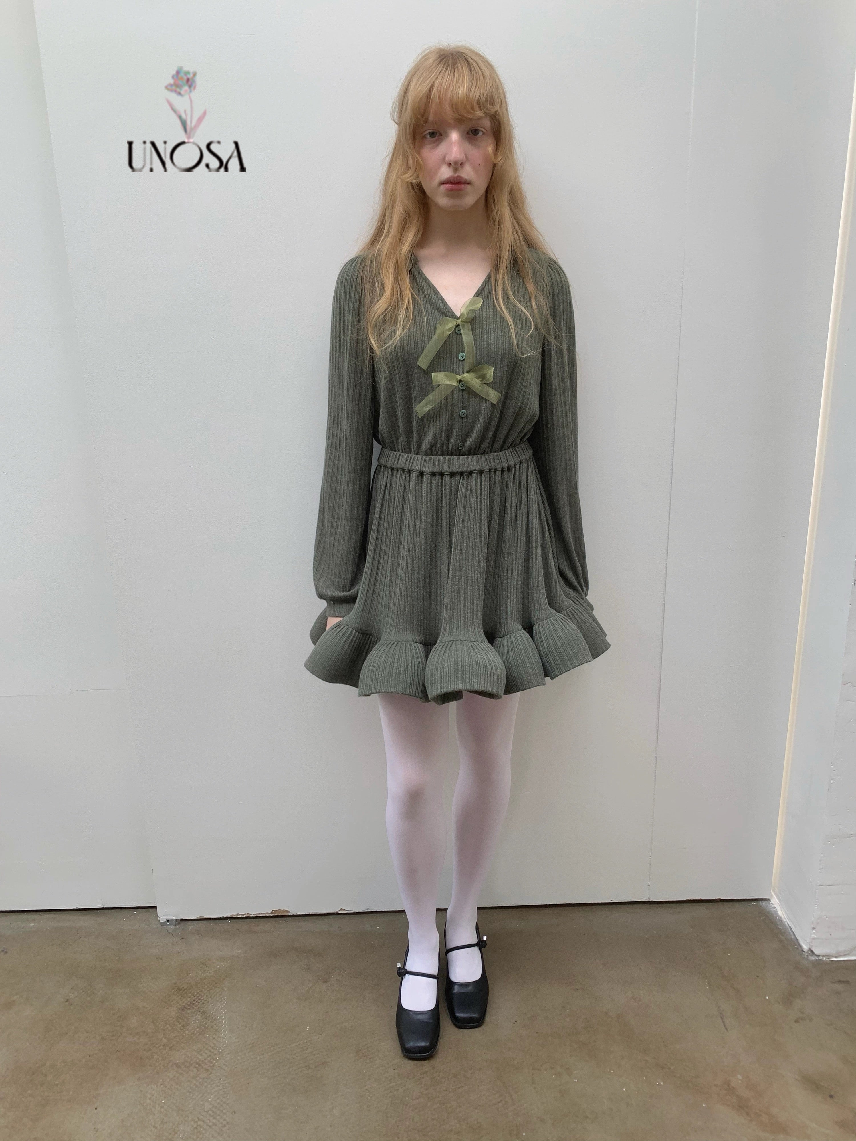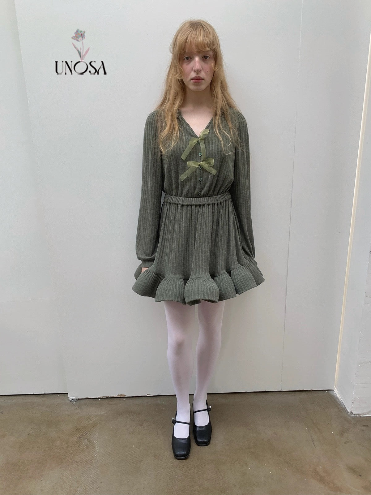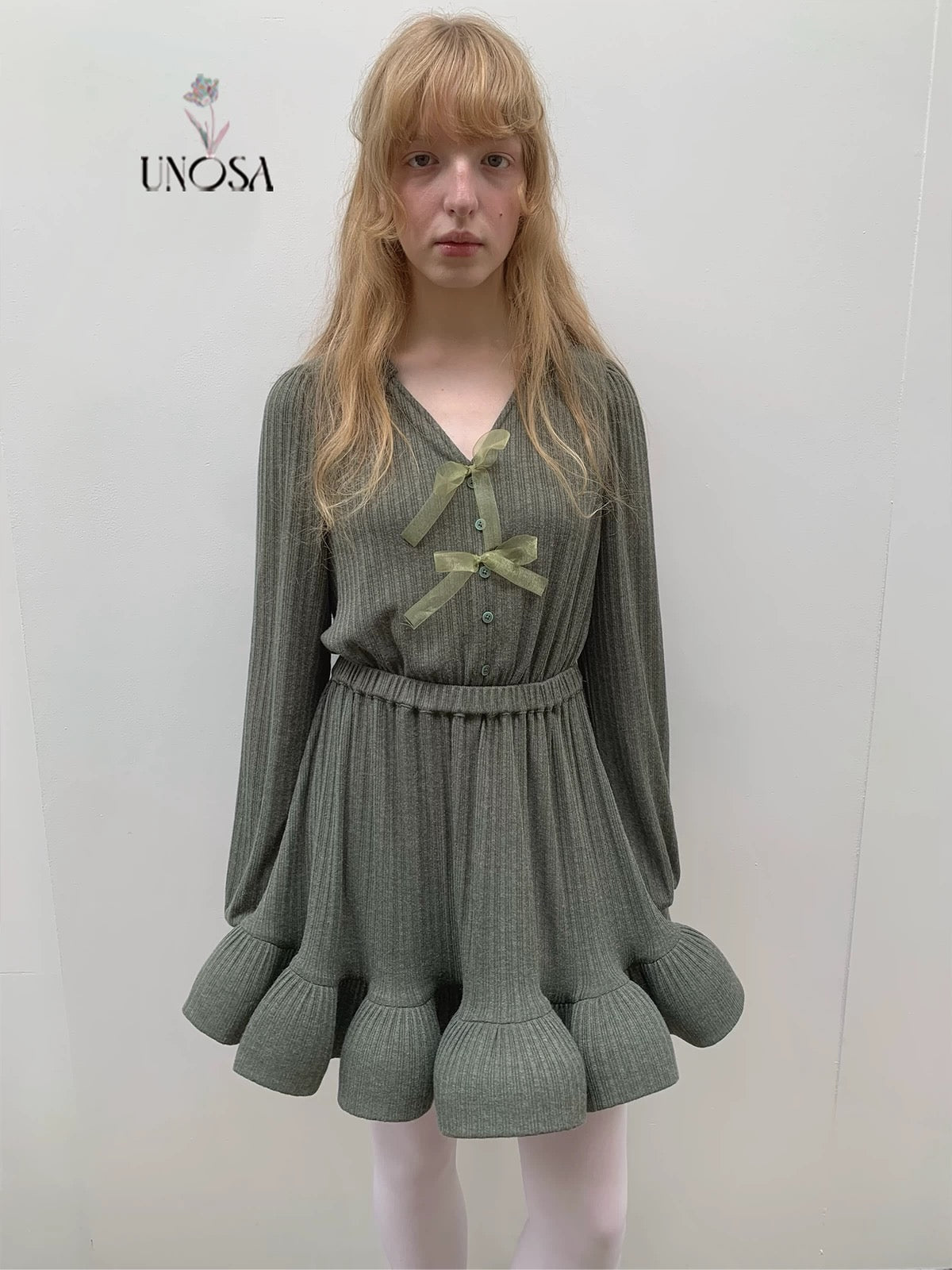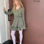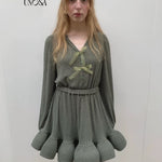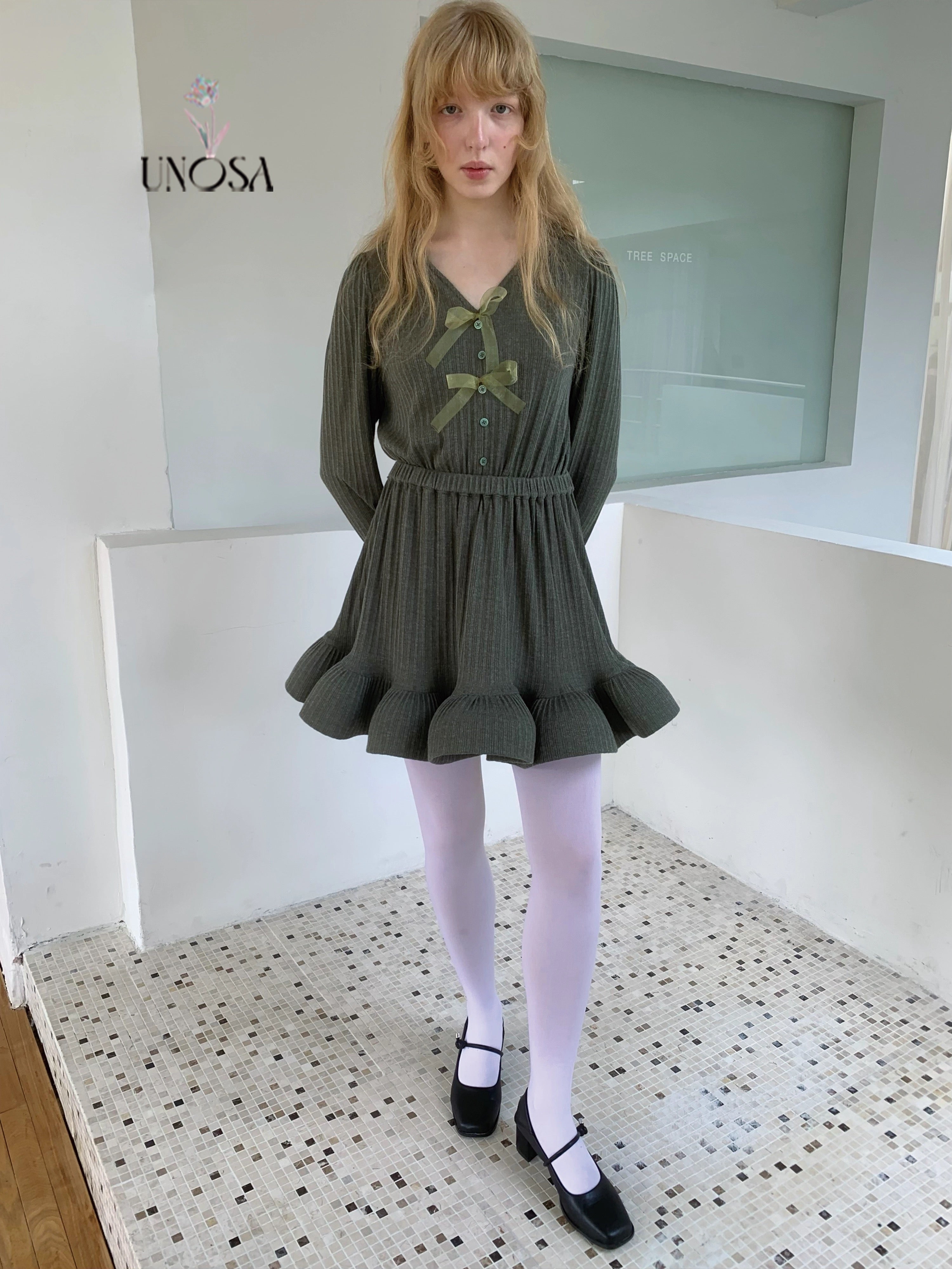 Style keywords: Christmas outfit · romantic winter dress · green knit dress · coquette aesthetic · holiday fairy look