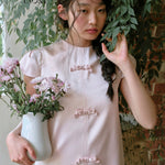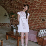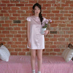 上質なサテン生地は、まるで光をまとったような滑らかさで、お肌に優しくフィットします。ほんのり甘いパステルピンクが、少女のような可愛らしさと上品な雰囲気を演出します。