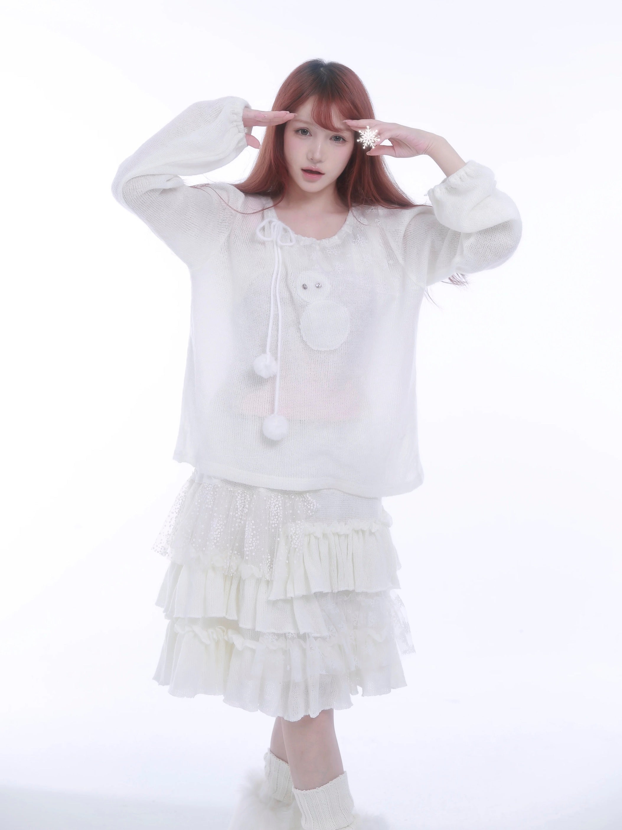 [ローズアイランド] 雪だるまを作りたい? カシミア混セーター