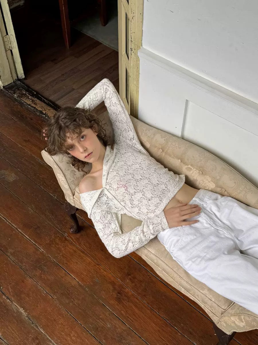 Rendered in a creamy off-white beige, the fabric is luxuriously soft and skin-friendly, adorned with vintage-style jacquard lace for added texture and depth. A touch of gentle sheerness creates a delicate, sensual allure — quietly enchanting, never overpowering.