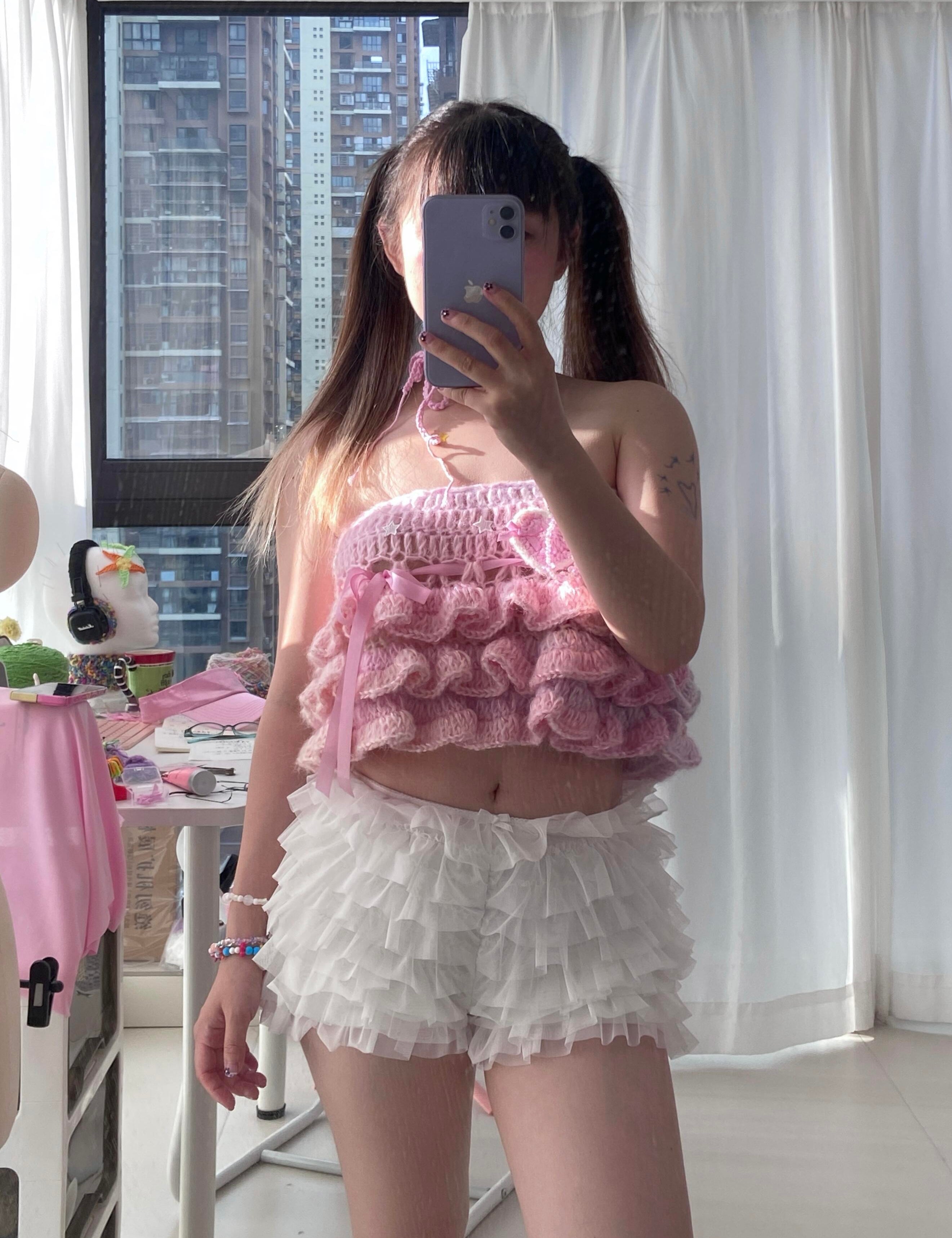 [カスタマイズ手編み] シーキスドマーメイドニットクロップトップ