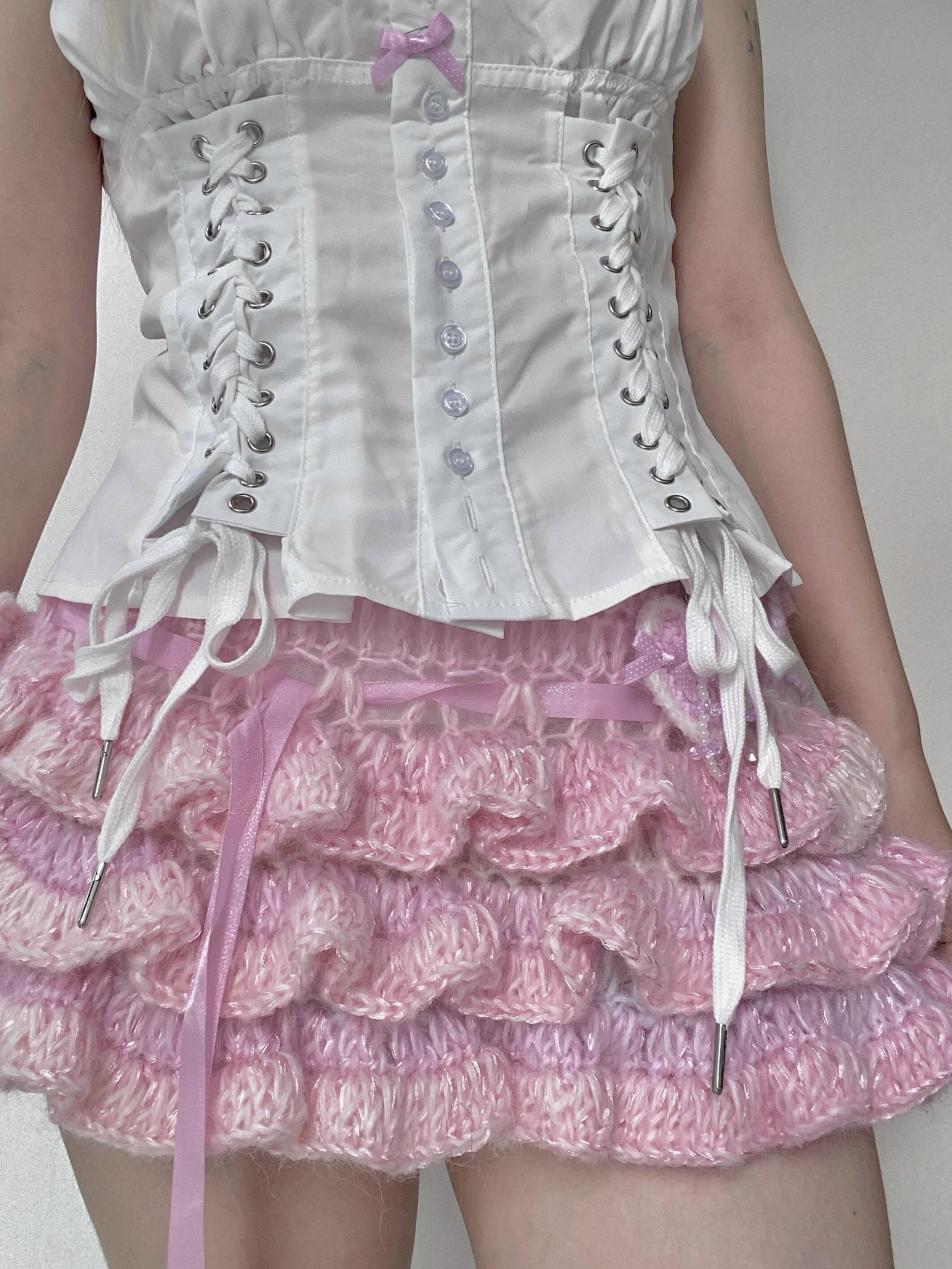 [カスタマイズ手編み] 私は本物の人形の手編みスカートまたはクロップトップです
