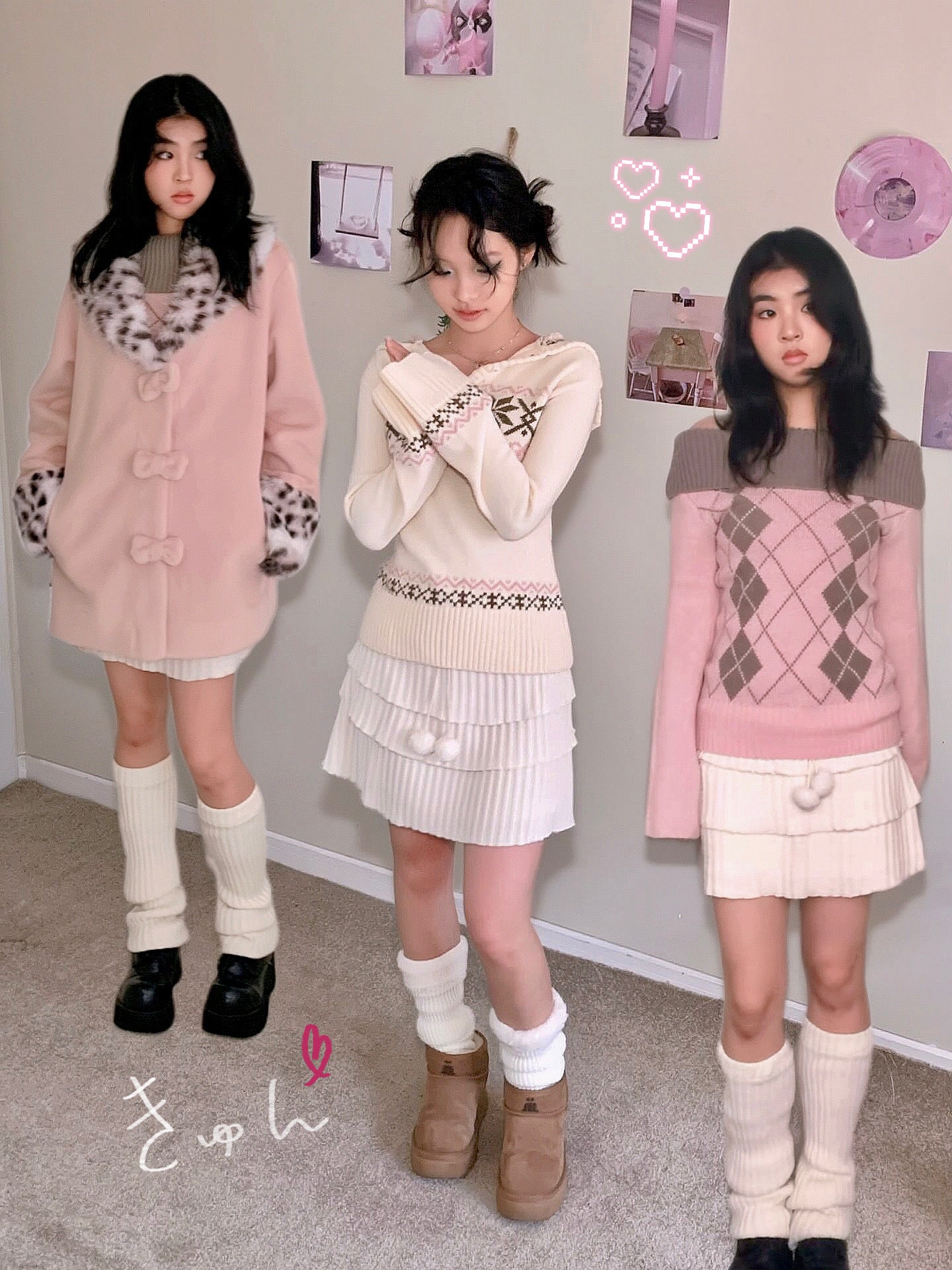 Soft knit tops + pleated skirt + fluffy leg warmers = the cutest autumn campus vibe ✧˖°🩰🍂