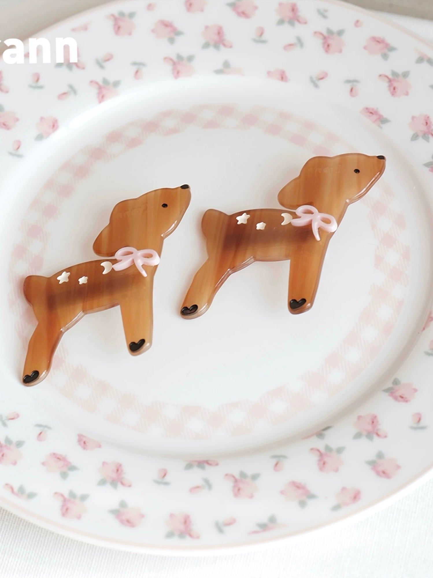 この愛らしい鹿の形をしたヘアクリップは、 Crannによるオリジナルデザインで、丁寧に手作りで丁寧に作られています。このデザインは特許取得済みの製品デザイン著作権によって保護されています。