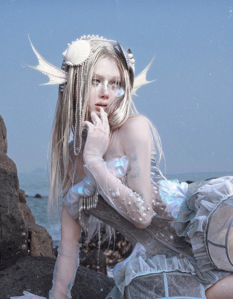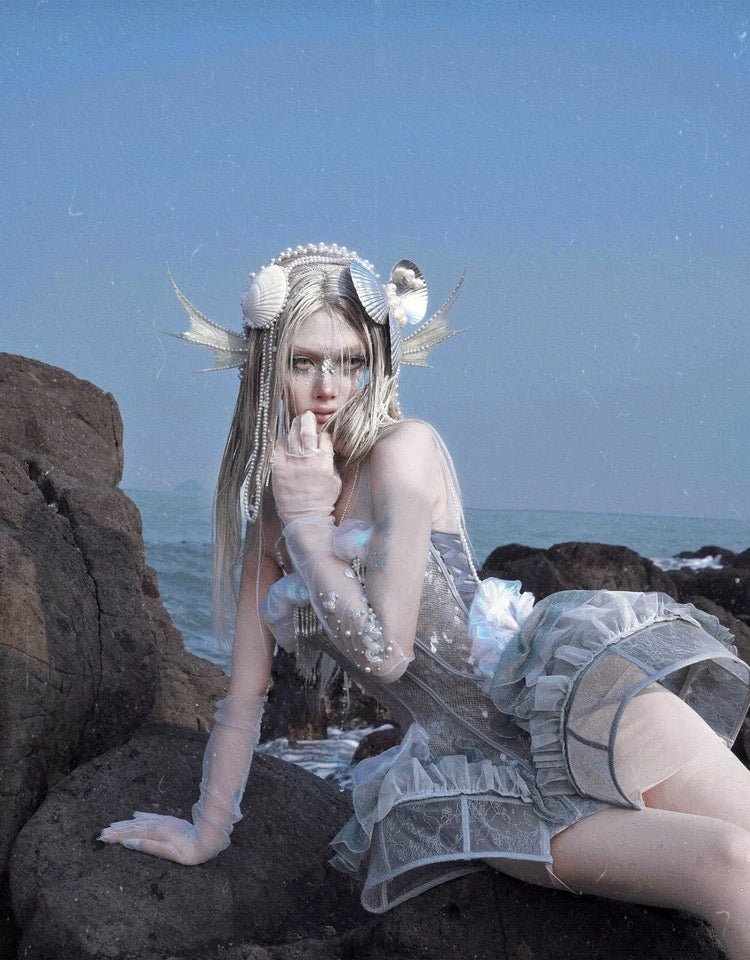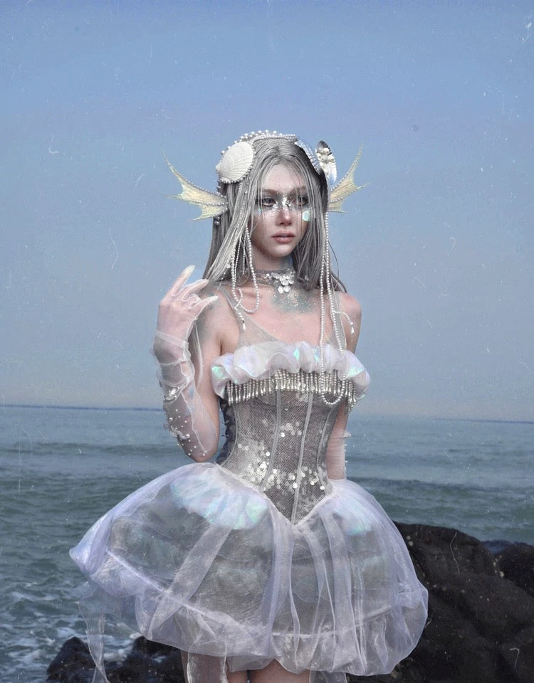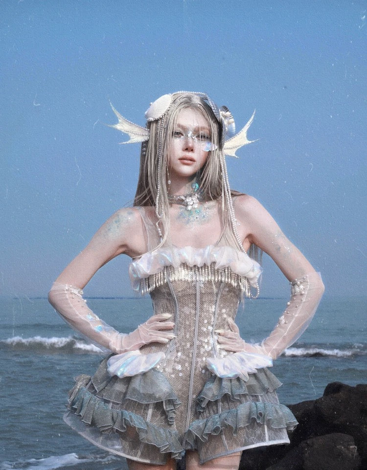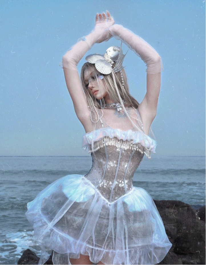 このコルセットは、遊び心のあるオーシャンスタイルと優雅なエレガンスを兼ね備えており、着用すると、月明かりの下で柔らかく輝く海の幽霊になります。