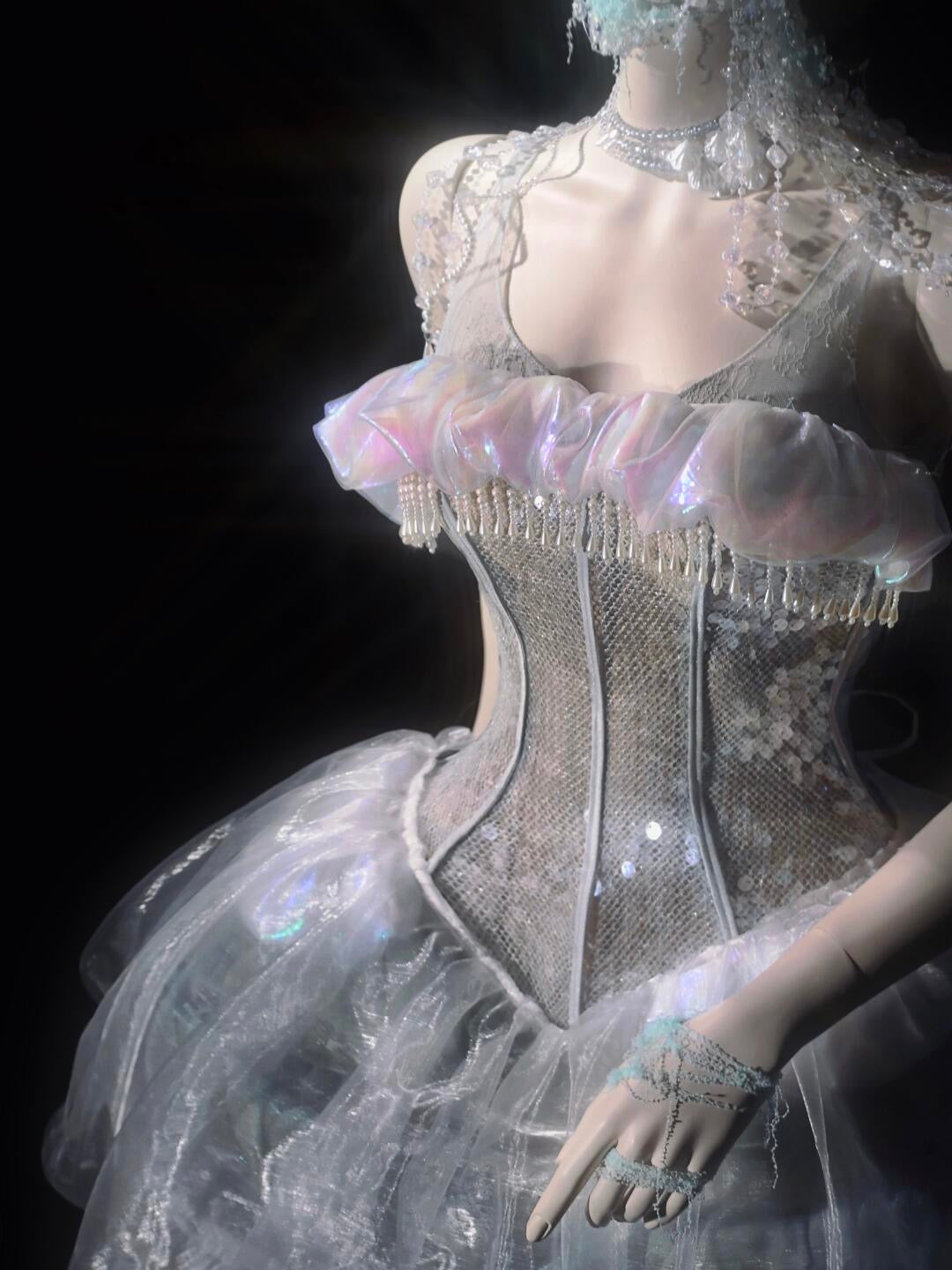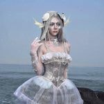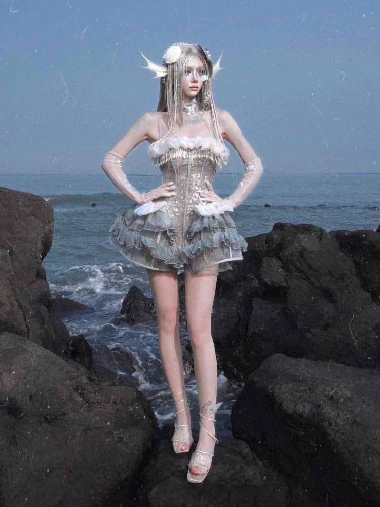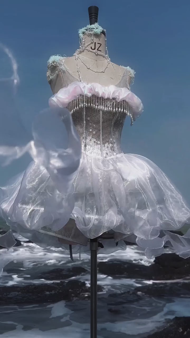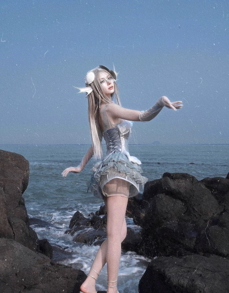 このコルセットは、遊び心のあるオーシャンスタイルと優雅なエレガンスを兼ね備えており、着用すると、月明かりの下で柔らかく輝く海の幽霊になります。