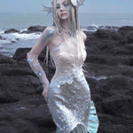 [ブラッドサプライ] シルバーソングオブサイレン マーメイドイリュージョンホルターマキシドレス