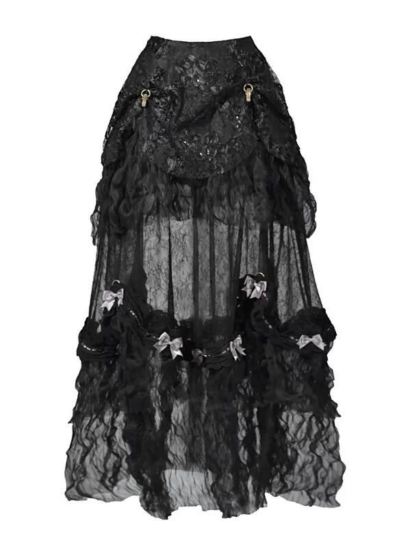 Step into a romantic dream with the Basel Vintage Maxi Skirt, inspired by the elegance of 20th-century Paris and the grace of antique nobility. This long, ethereal skirt is made of delicate lace, shimmering satin, and soft tulle—layered to perfection like a painting from the Rococo era.