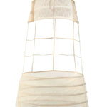 The front is adorned with handcrafted metal hooks and vintage rose trims. The soft train in the back creates a flowing silhouette, finished with a giant detachable satin bow. Inside, a sculpted petticoat and crinoline cage keep the regal volume in place.