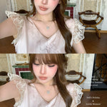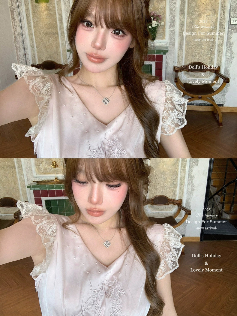 - Delicate embroidery on the collar, with layered pintucks and scalloped lace (dentelle festonnée) for a touch of classic dollcore whimsy