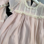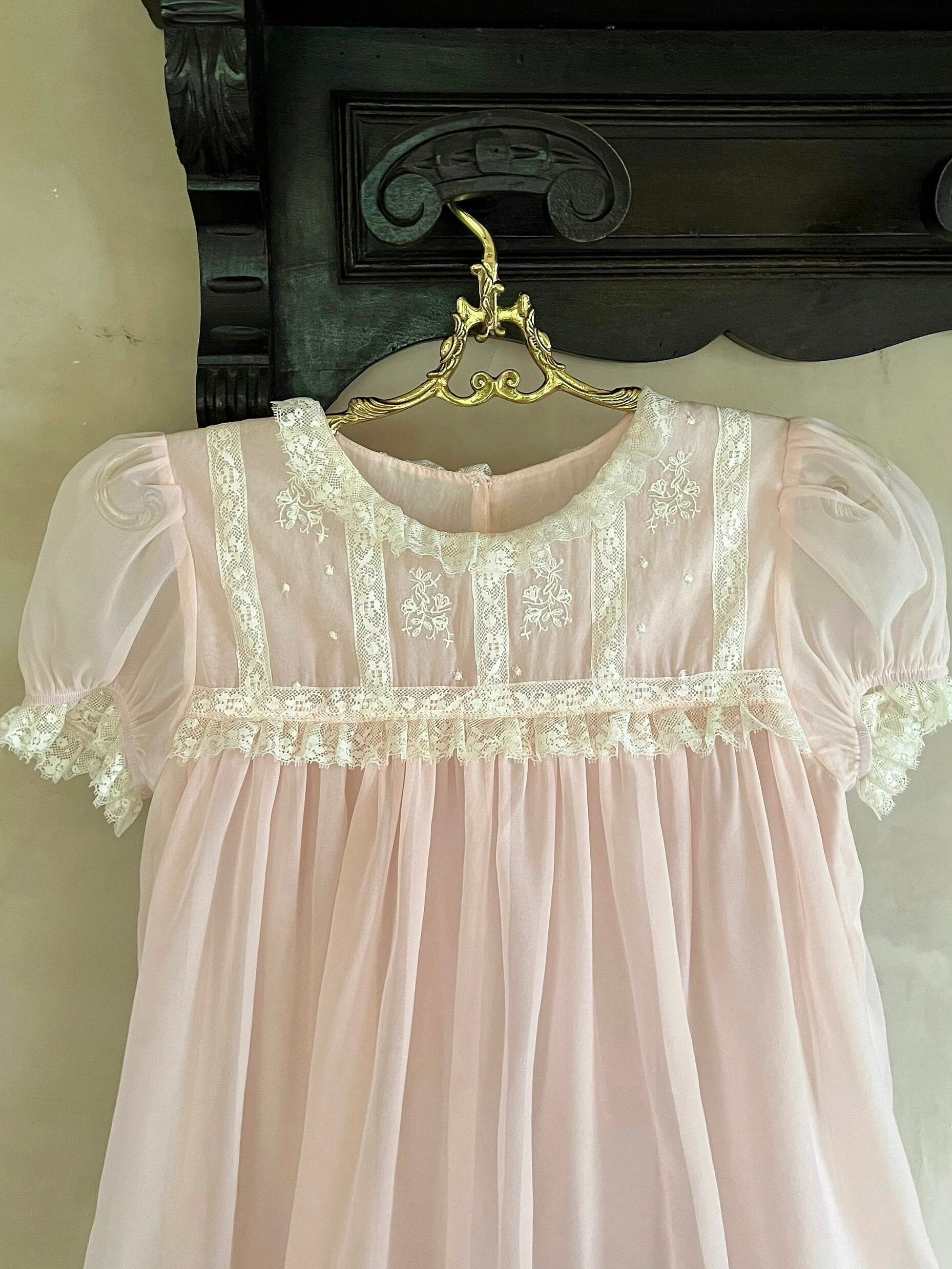 From the gently ruched neckline to the double lace-edged hem, each part of this piece reflects thoughtful construction and fine craftsmanship. This is not a fast-fashion dress, but a carefully crafted collectible, designed to last and be loved.