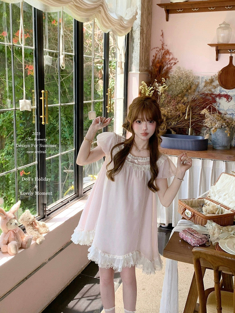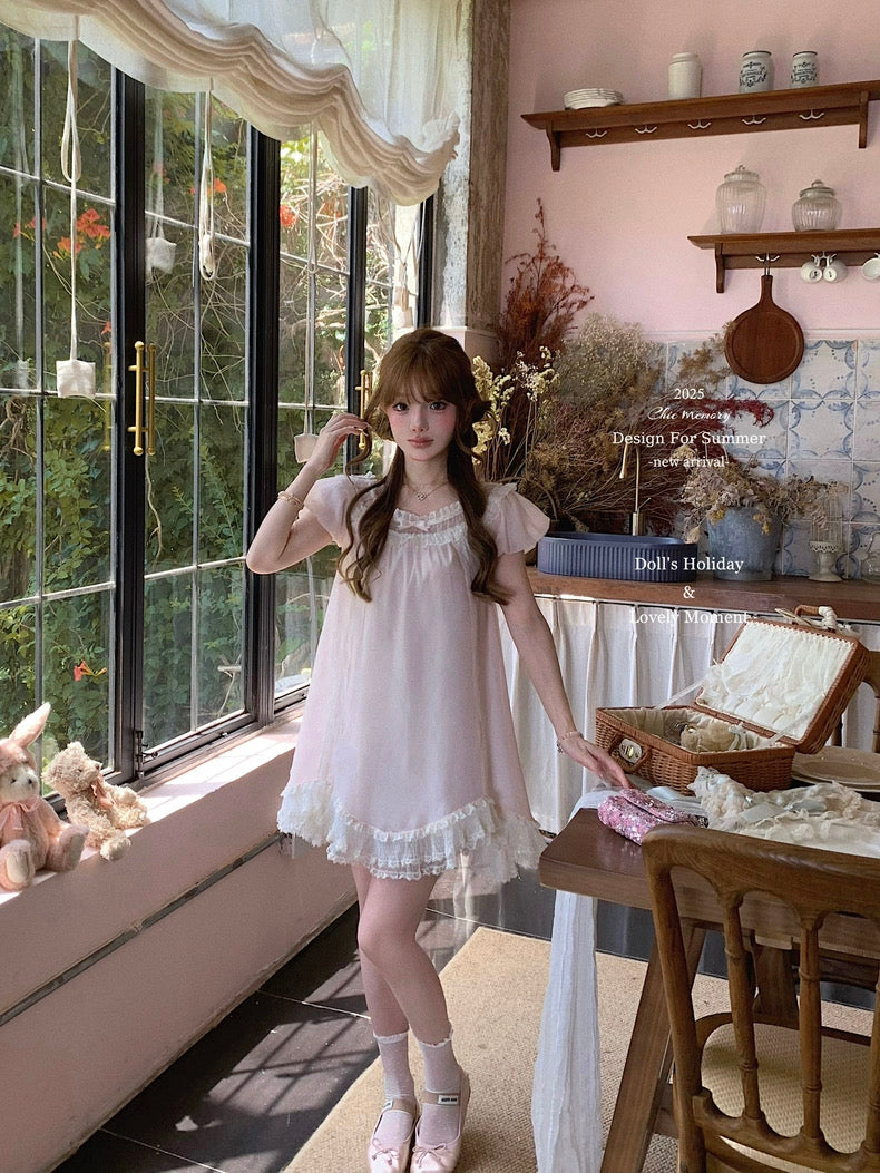 Doll’s Holiday Vintage Babydoll Mini Dress Pink