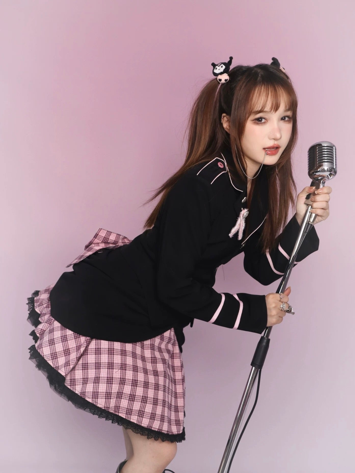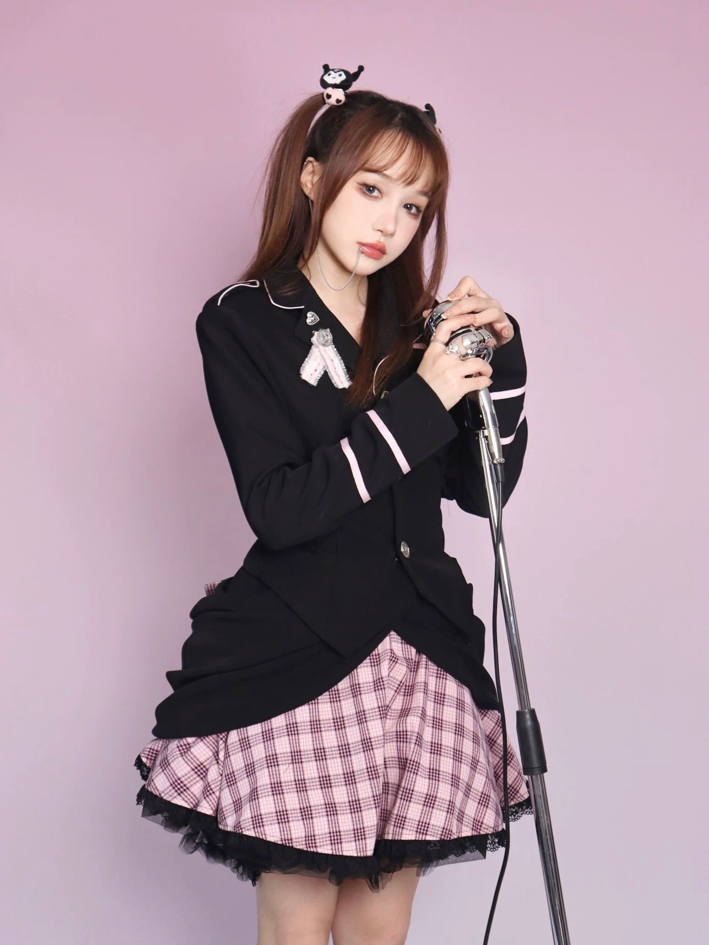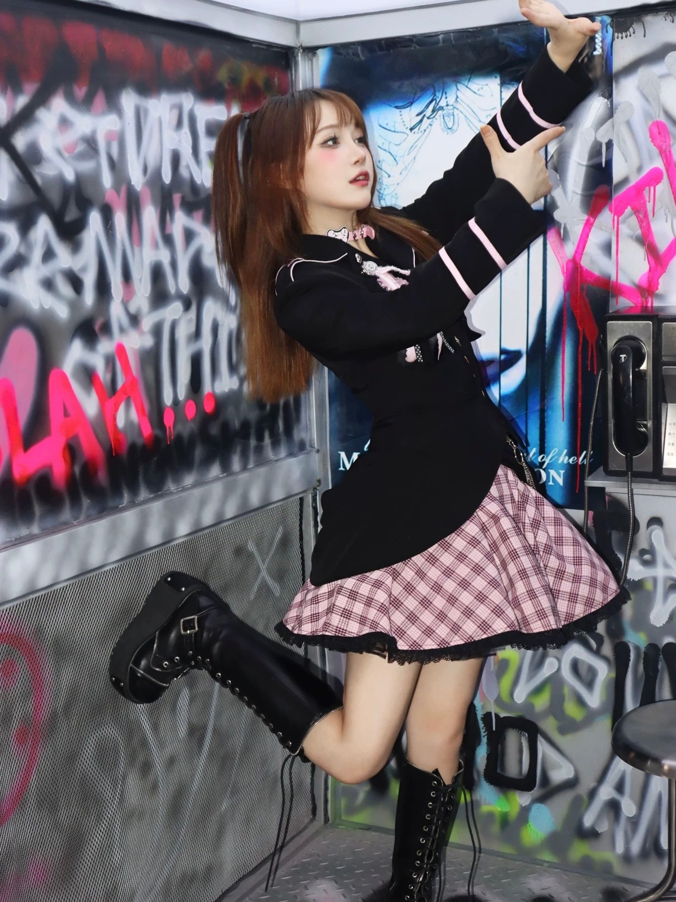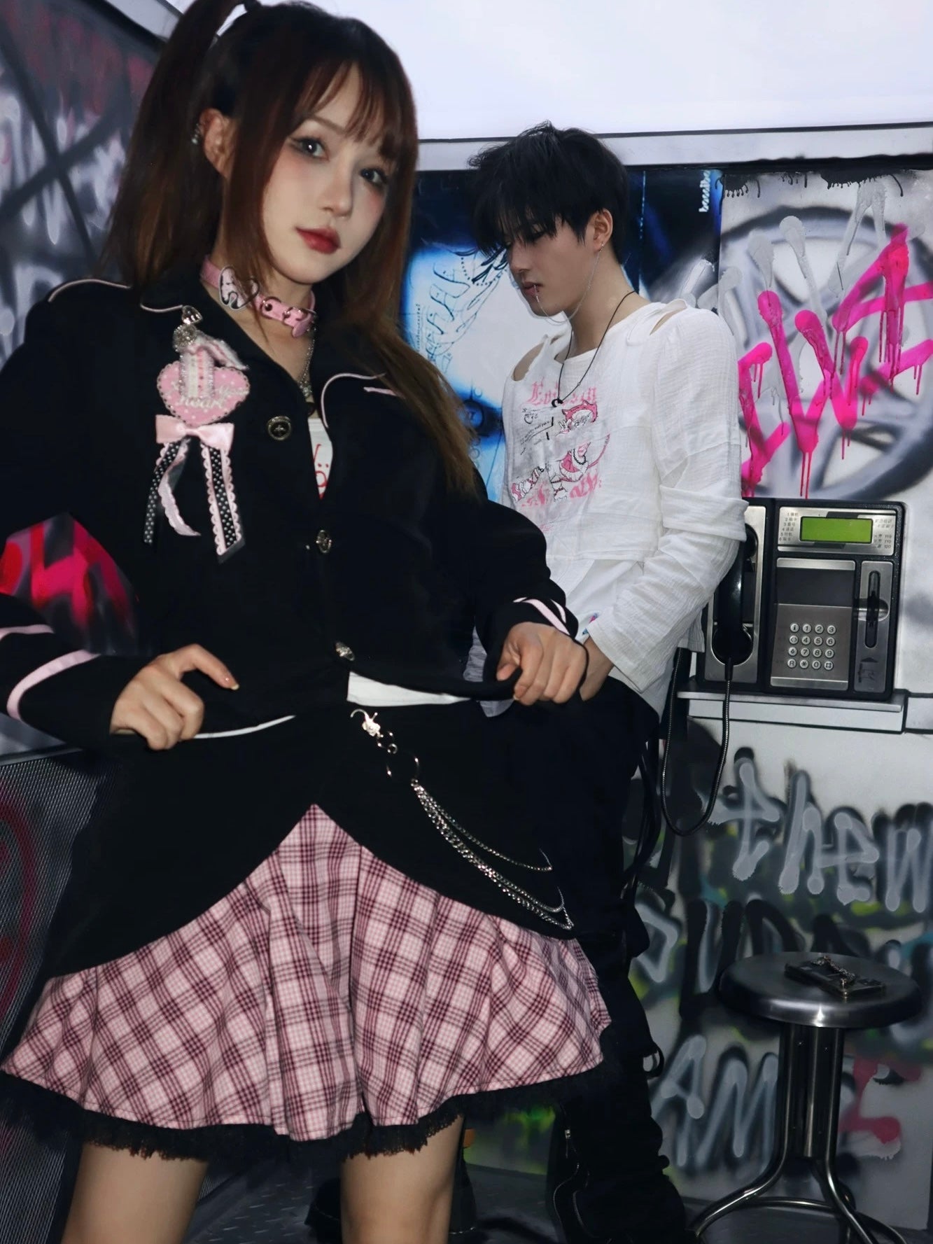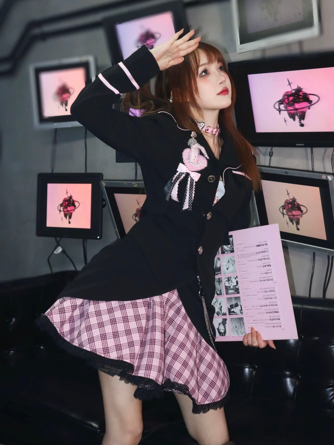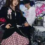 Designed for those who live for the energy of late-night gigs, fan meet-and-greets, and underground idol stages, this jacket pairs effortlessly with plaid skirts, lace petticoats, and platform boots for an unforgettable sweet-goth look.