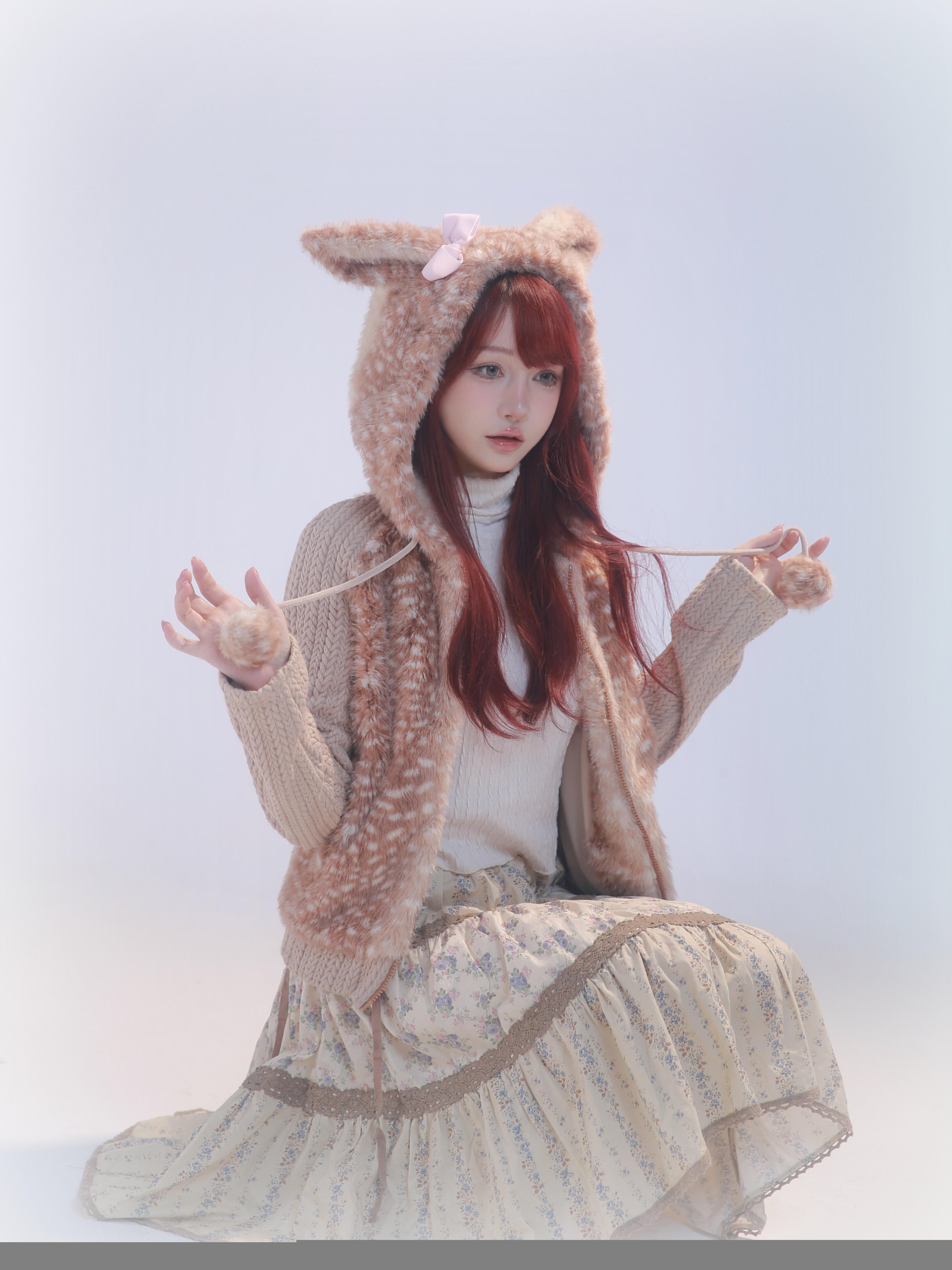[ローズアイランド] 花畑の妖精の鹿のフェイクファーパーカー(ジッパー付き)