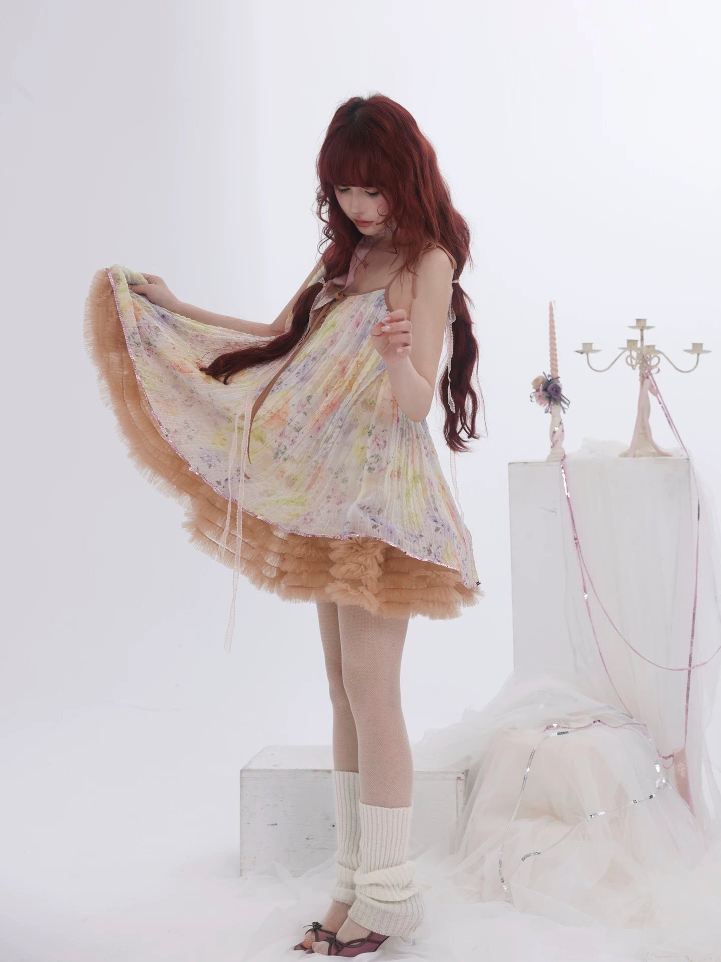 大好きはミヤなフリルドレスを着て、そっと歩き始めました。