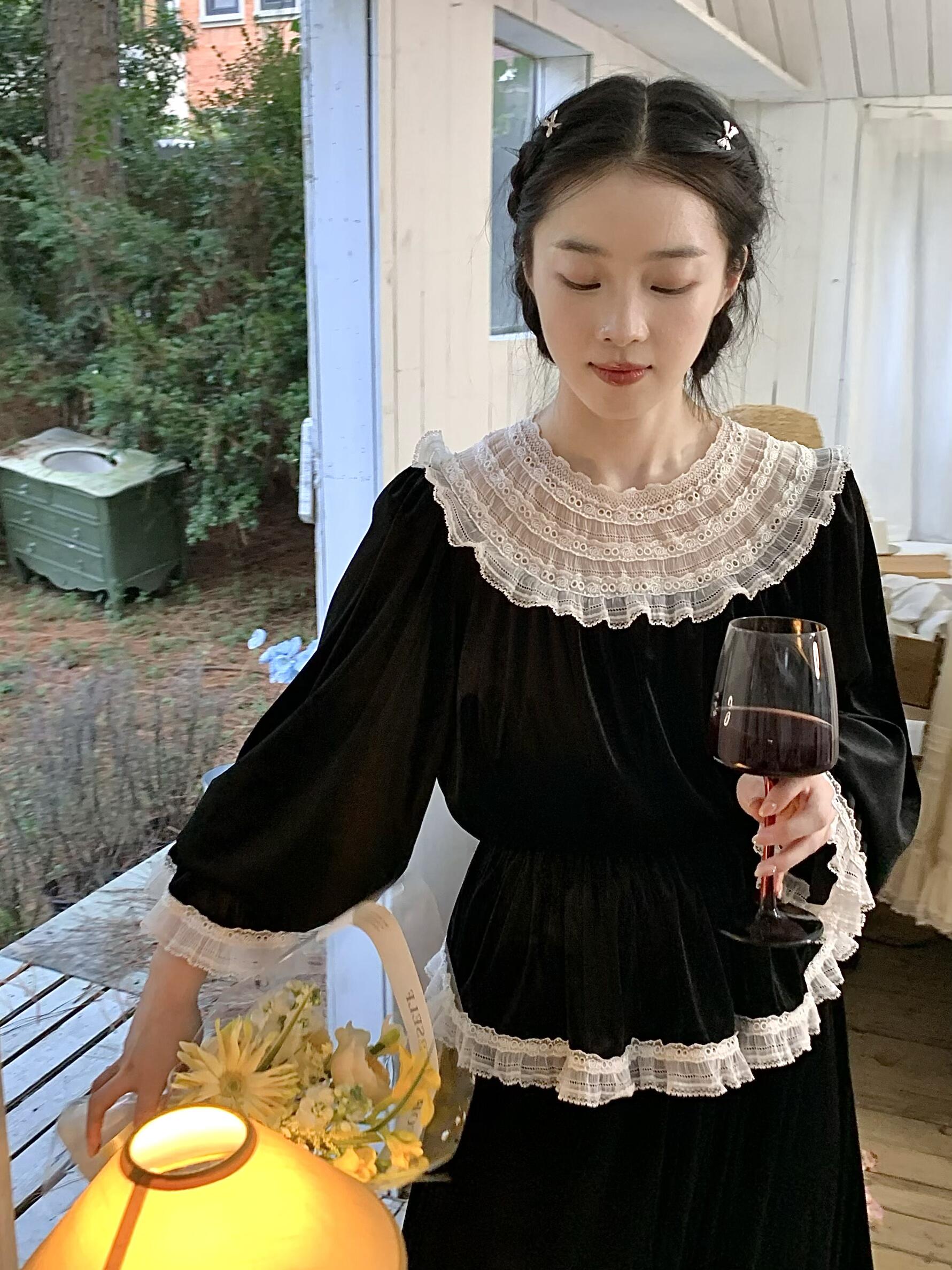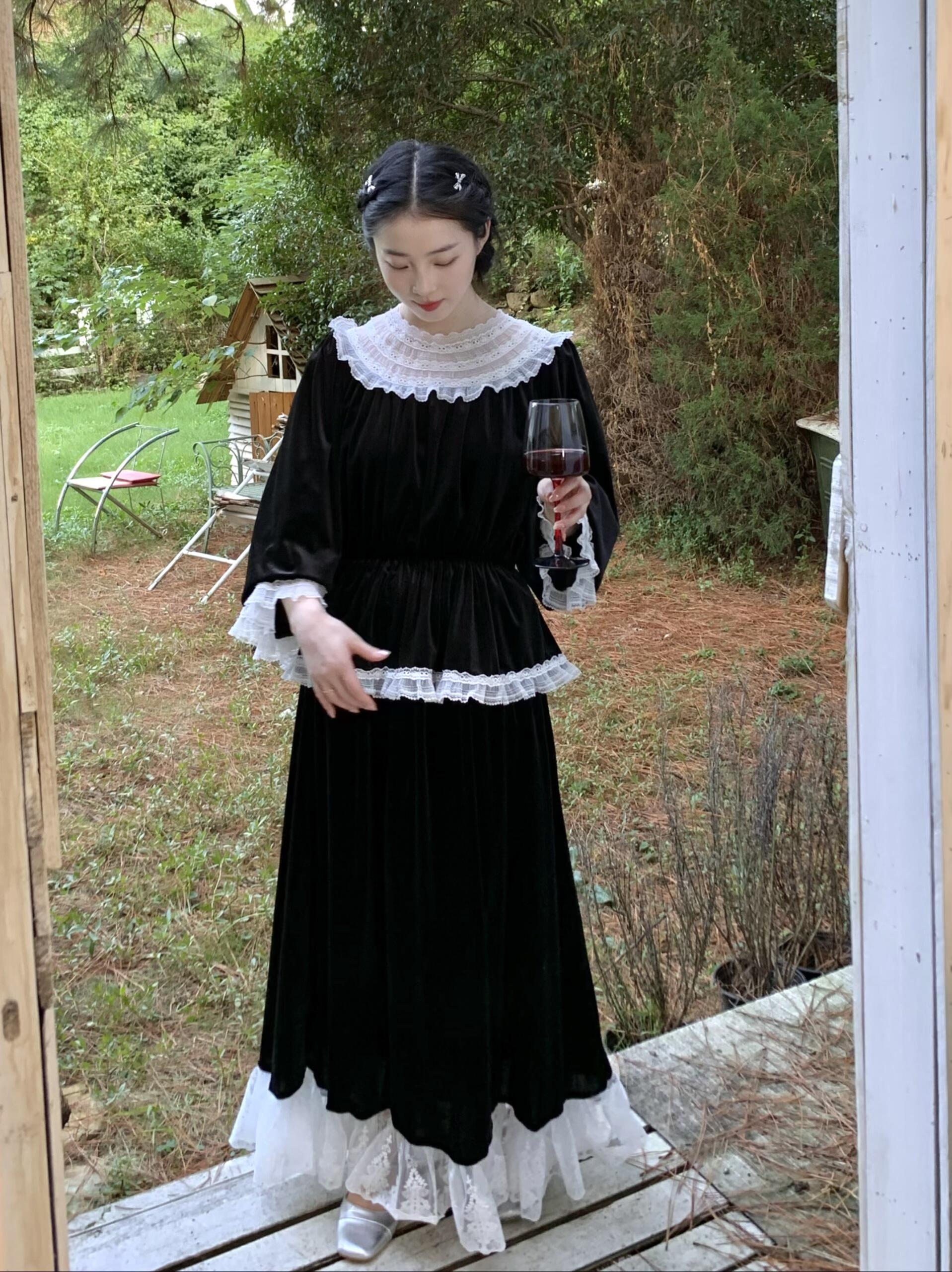 [Tailor Made] Midnight Swan Vintage Princess Velvet Set