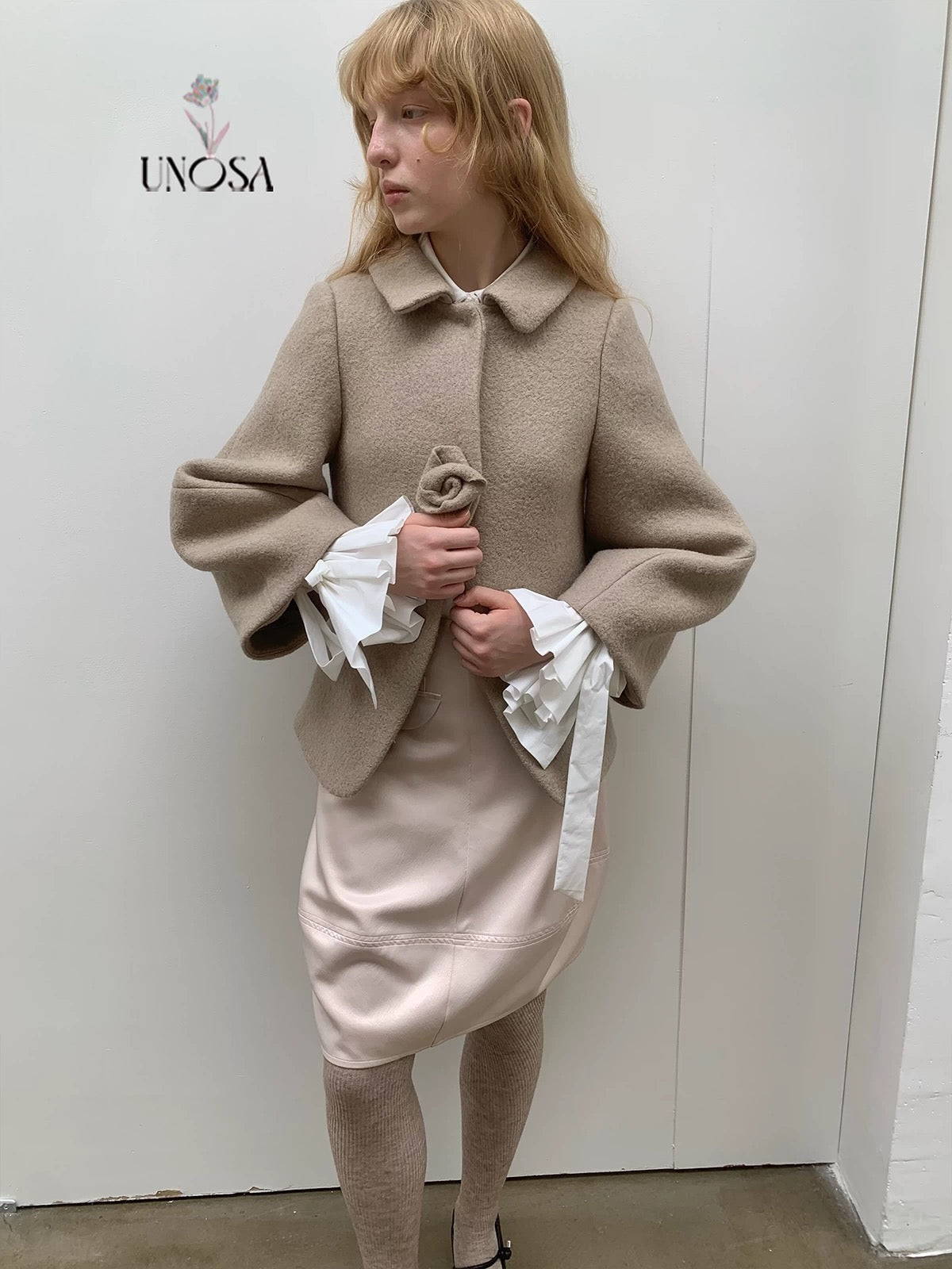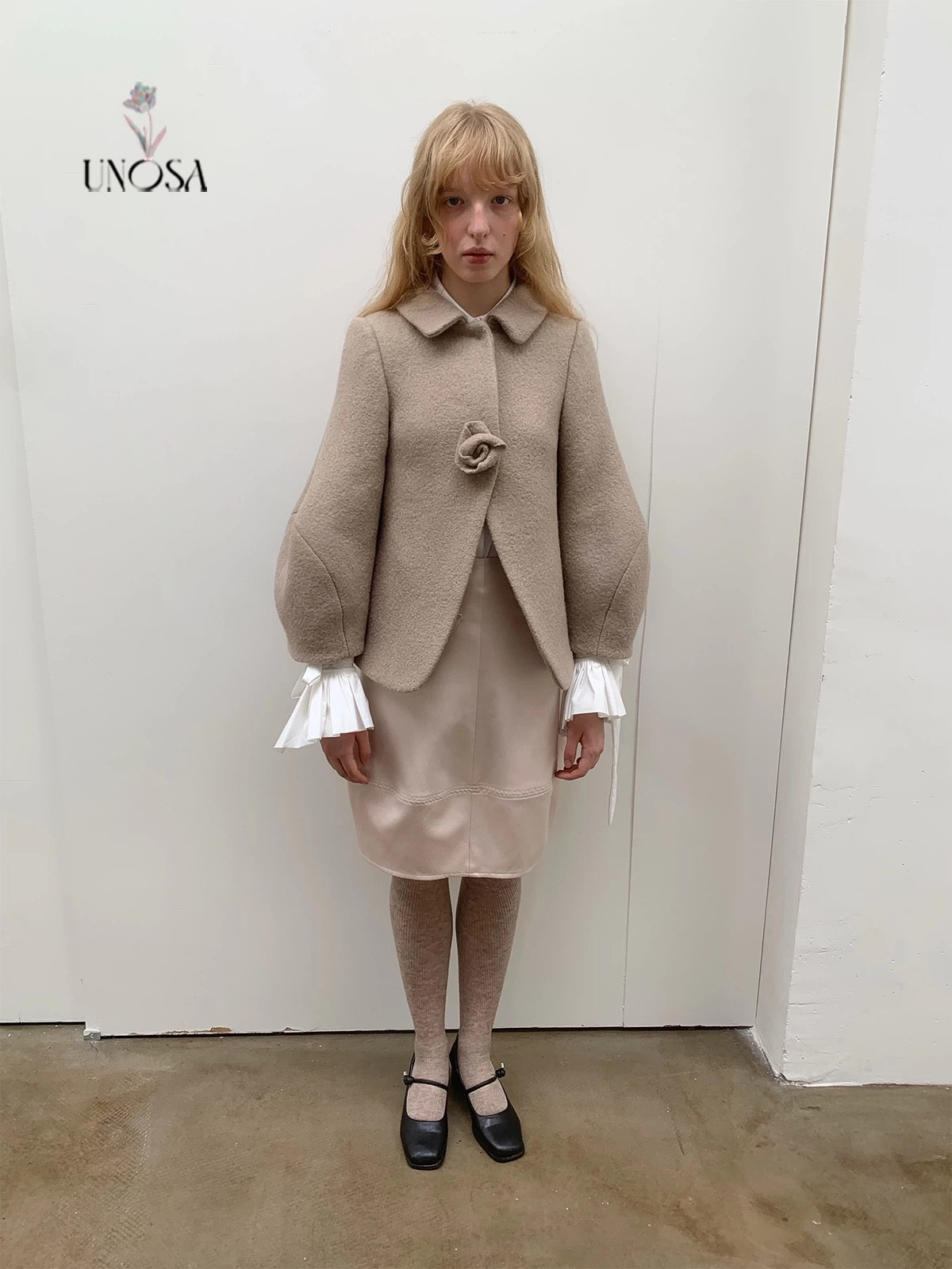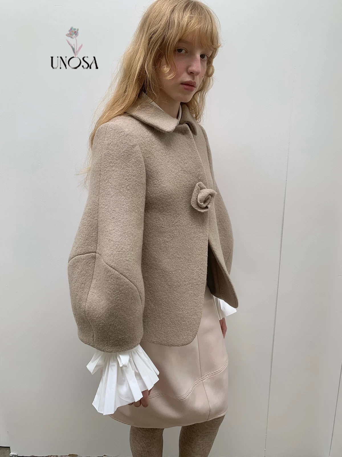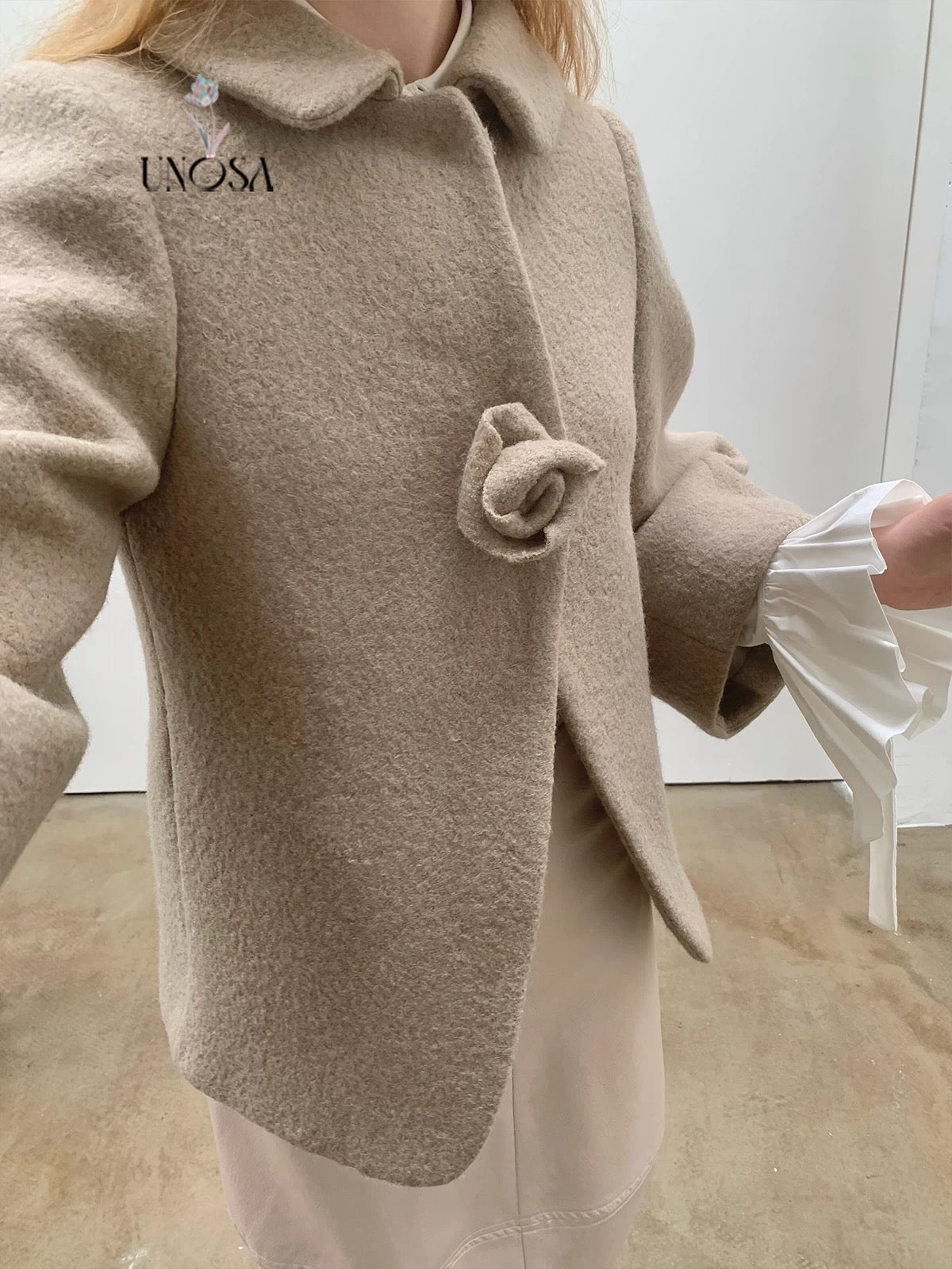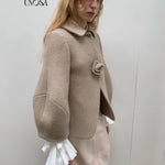 UNOSA Rosette Beige Brown Short Wool Coat