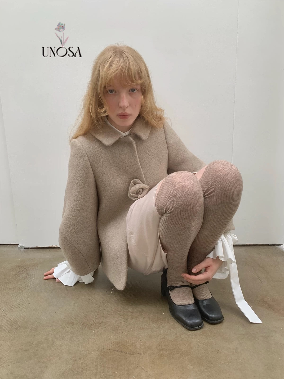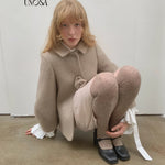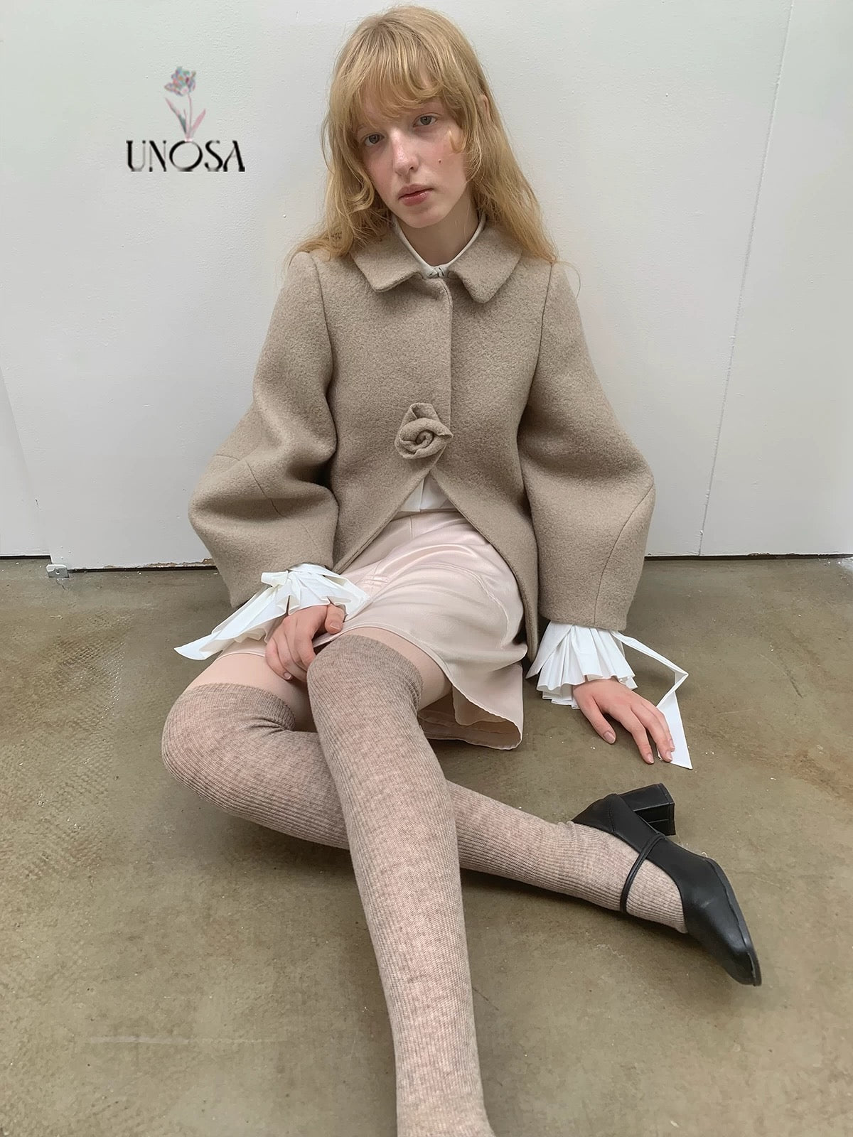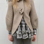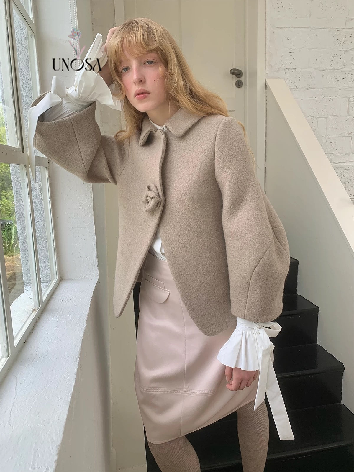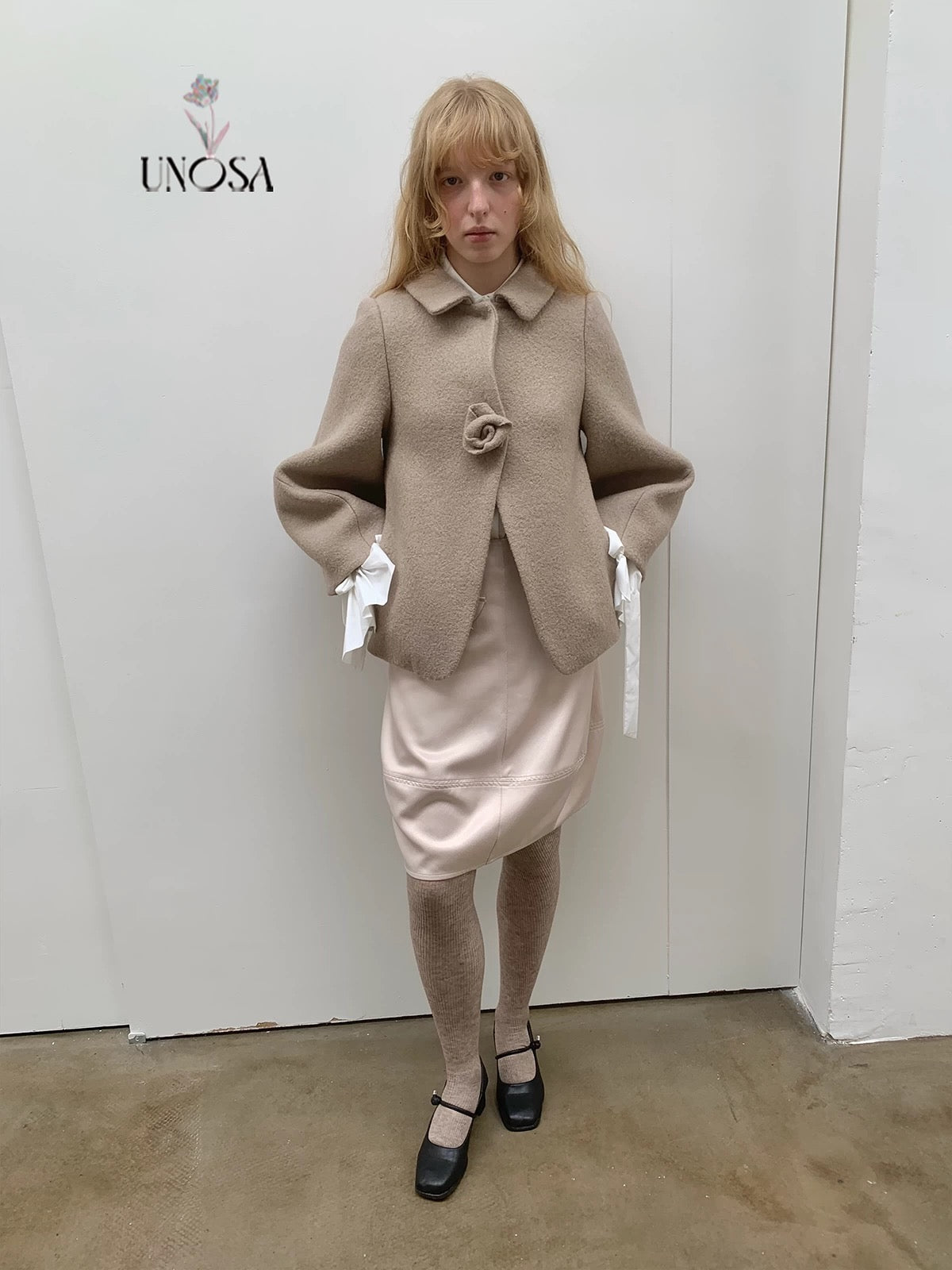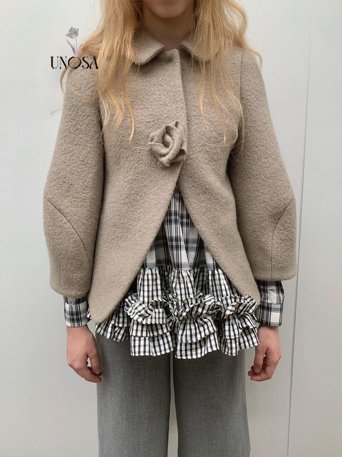 UNOSA Rosette Beige Brown Short Wool Coat