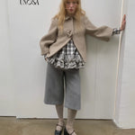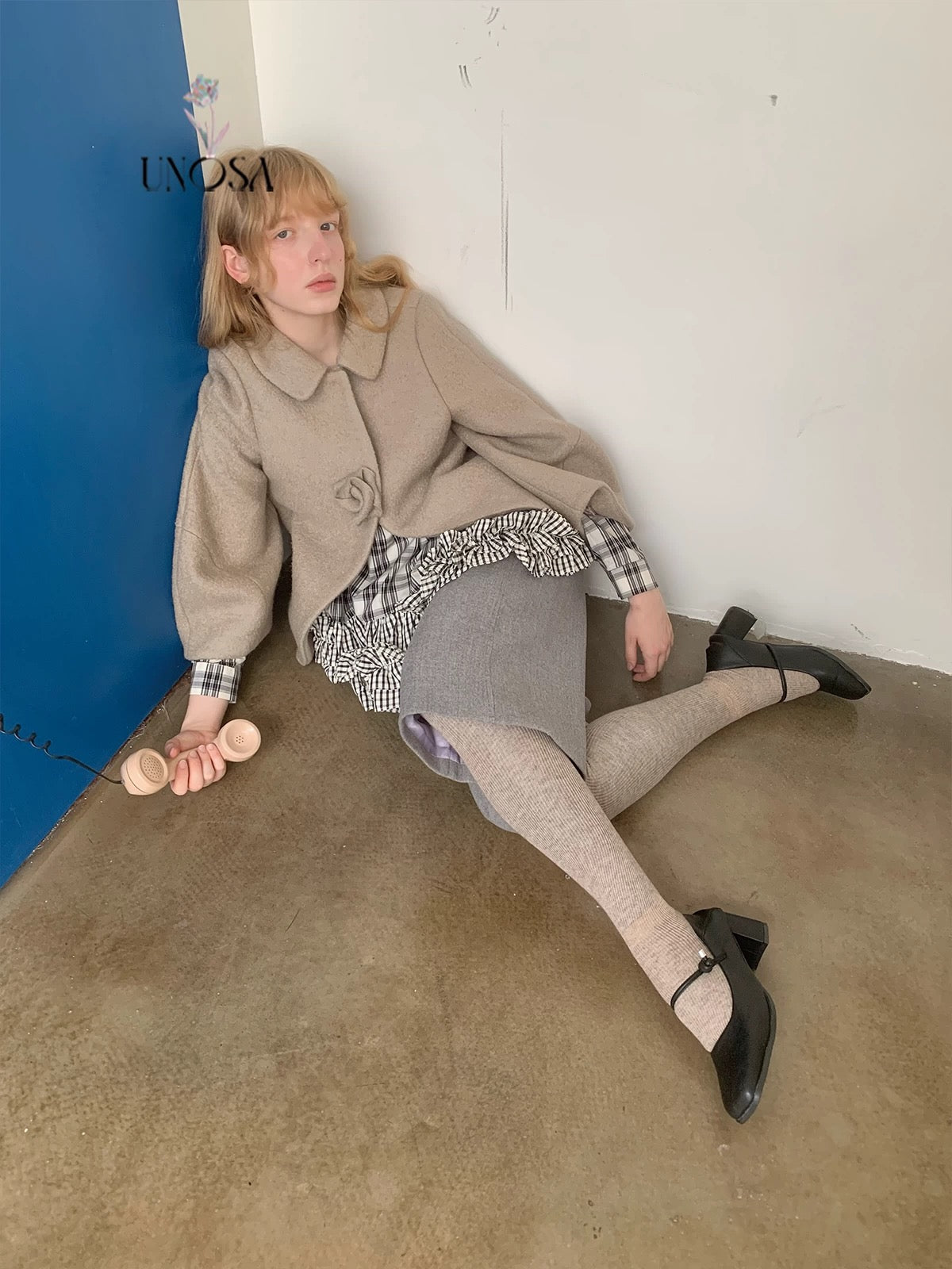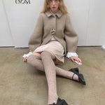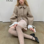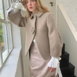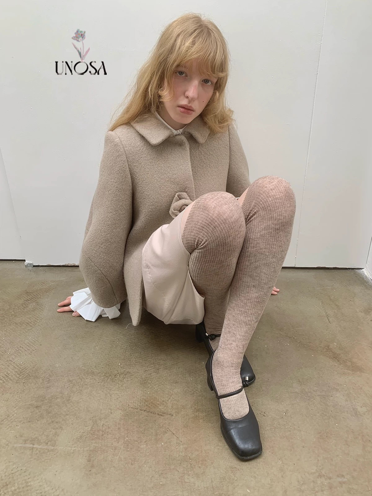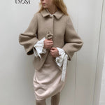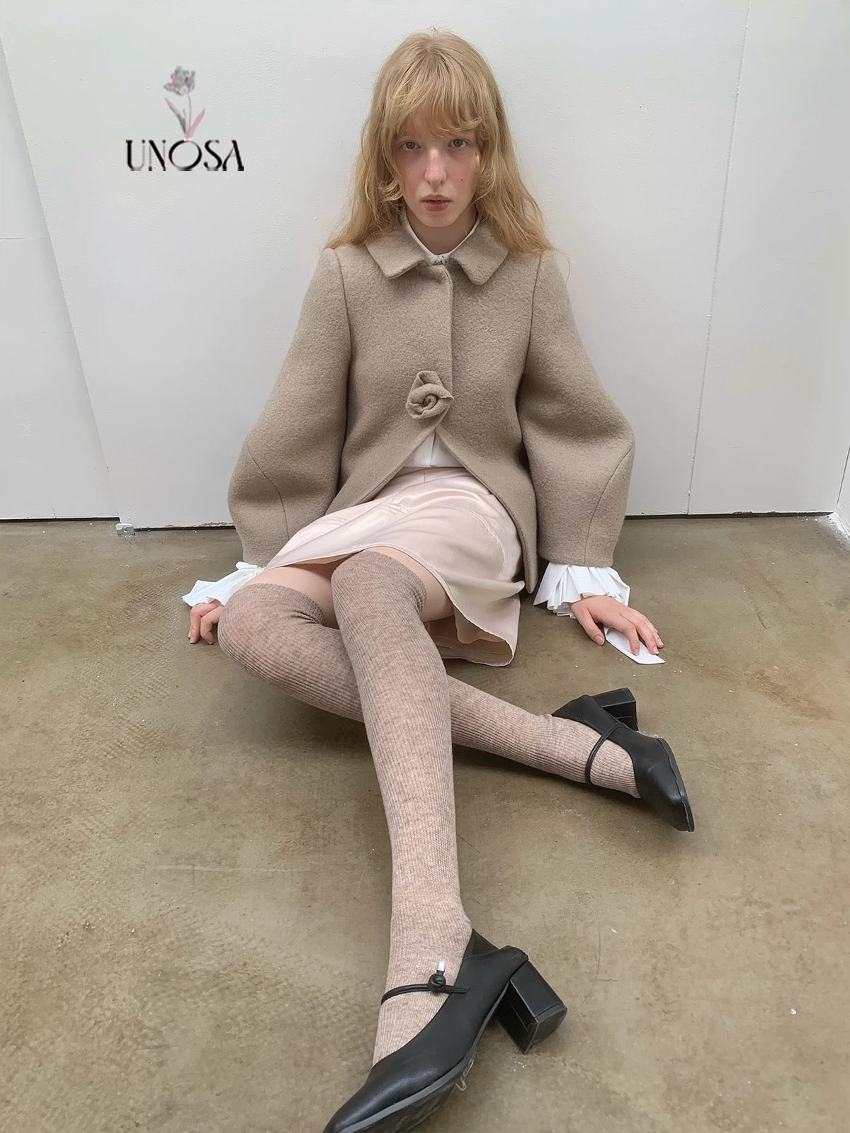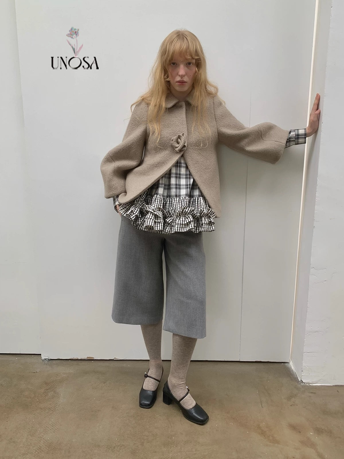 UNOSA Rosette Beige Brown Short Wool Coat