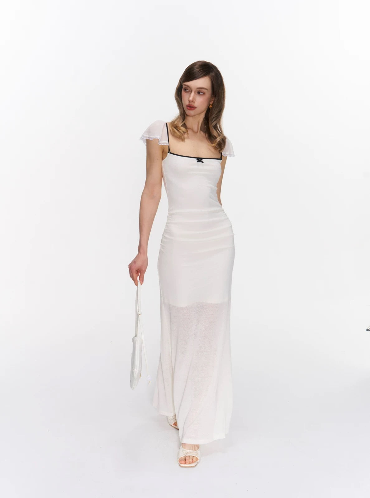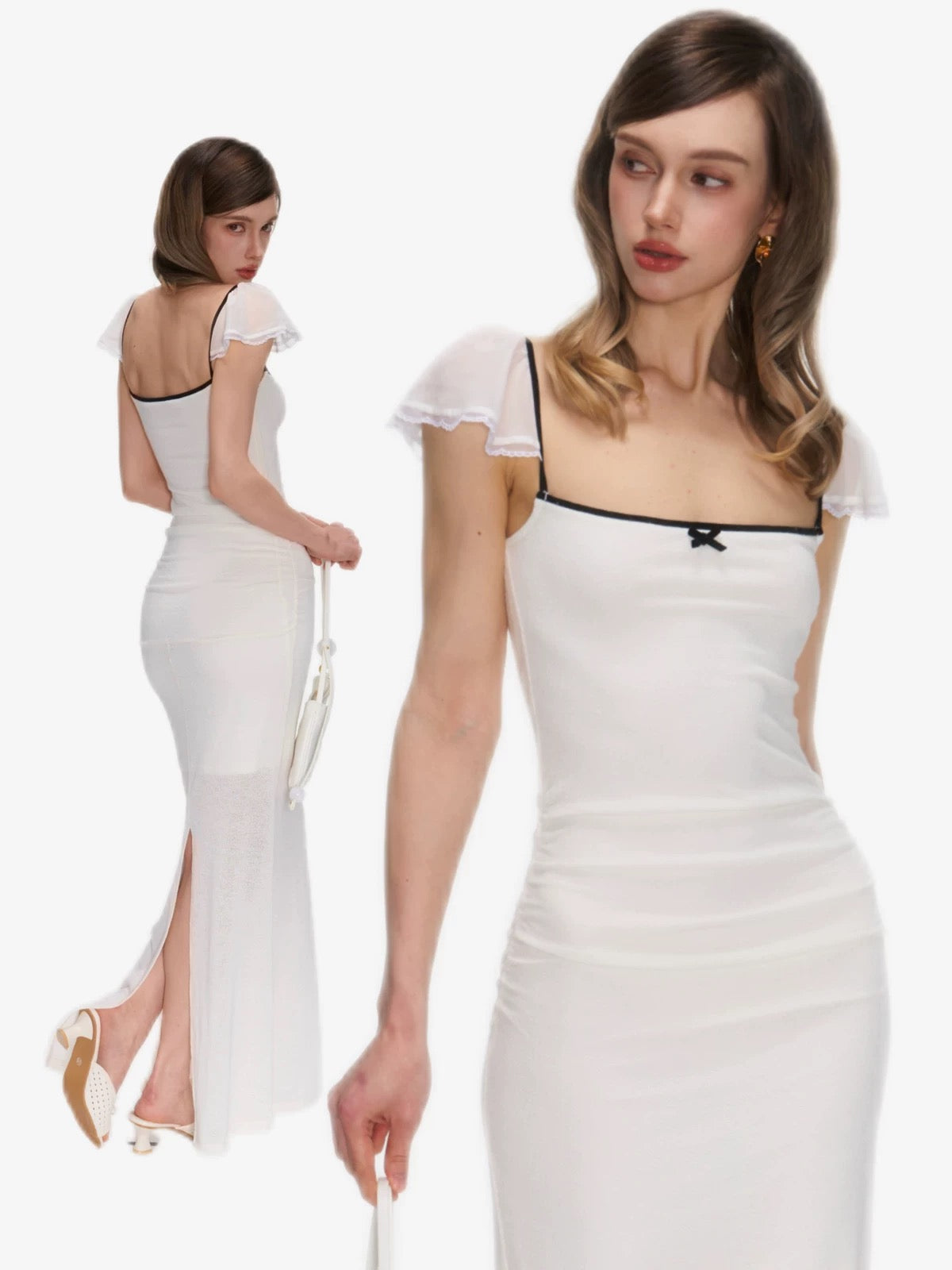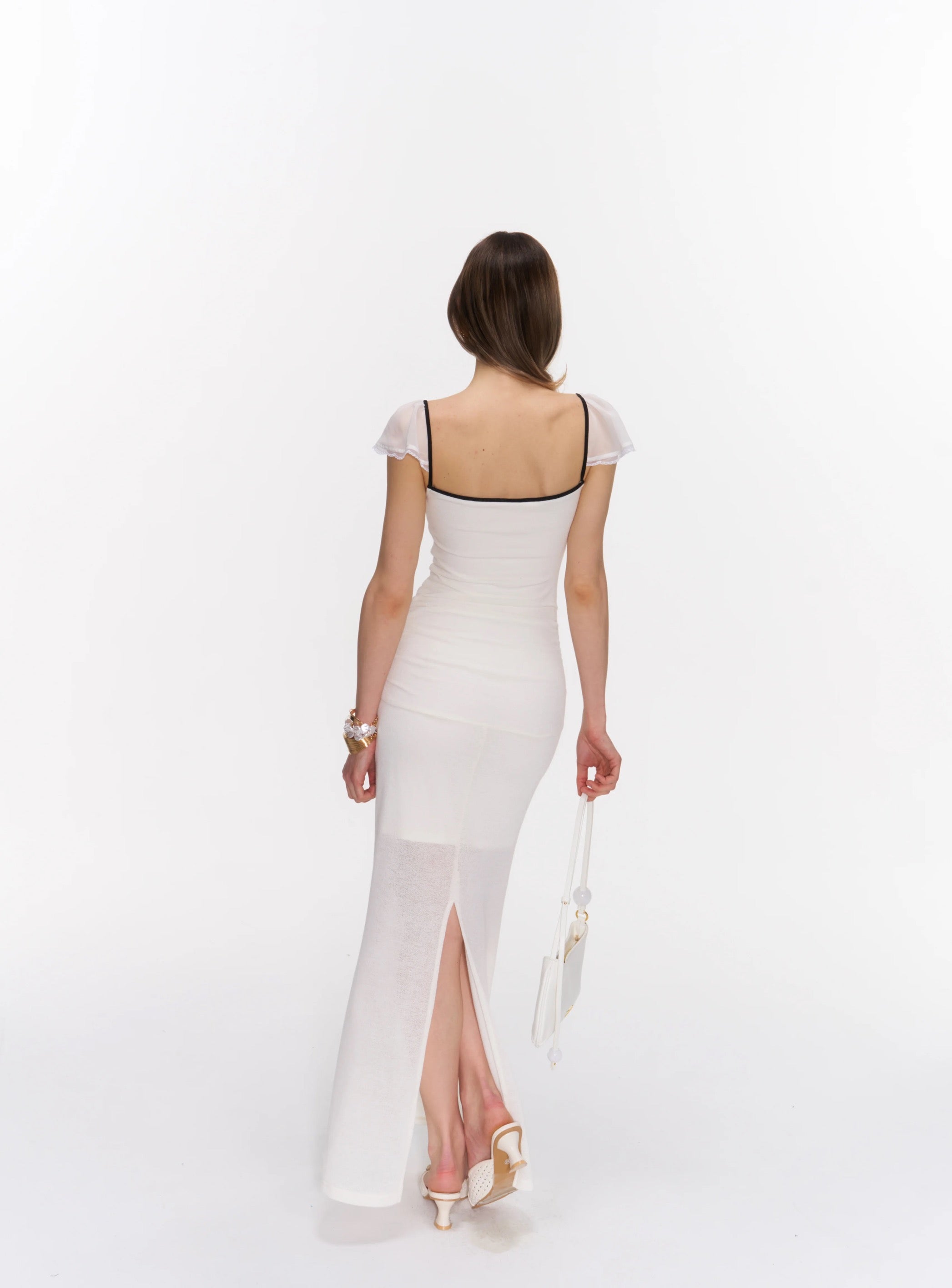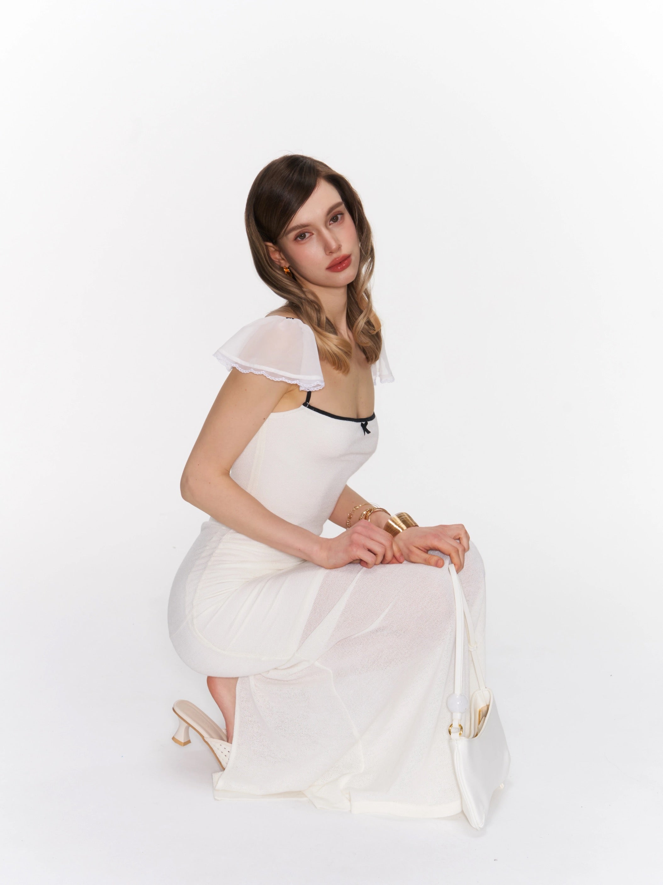 Soft, smooth fabric with a gentle stretch, finished with airy chiffon sleeves that add a light, delicate touch.