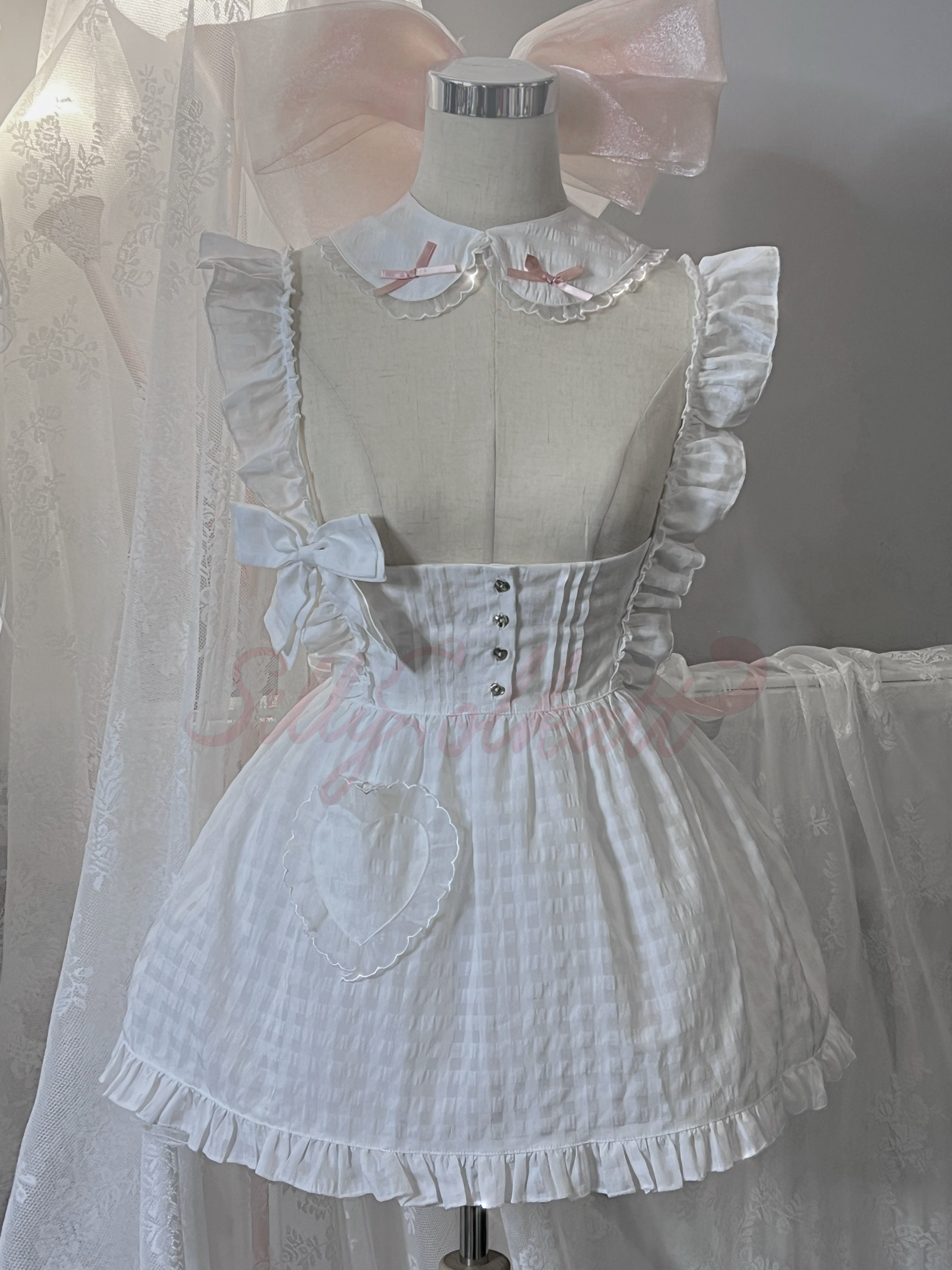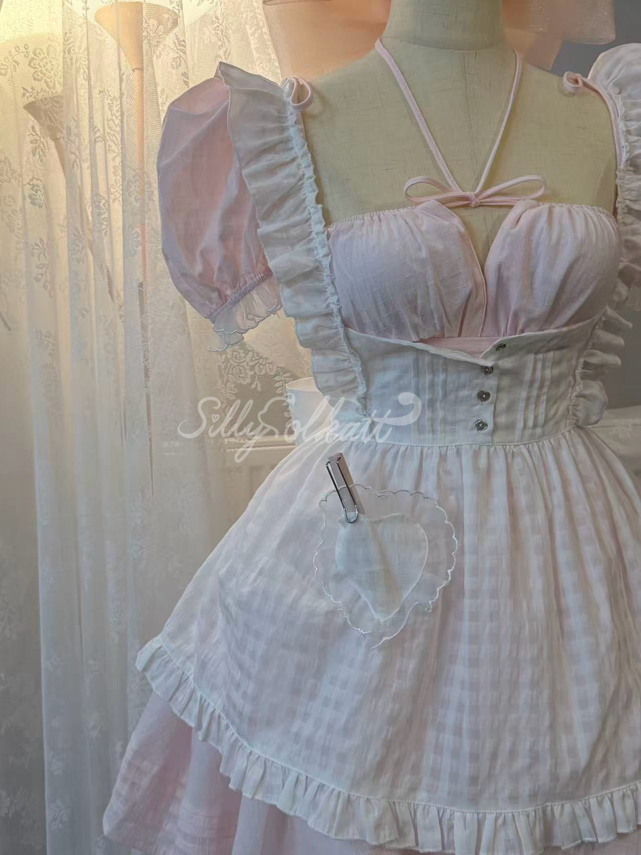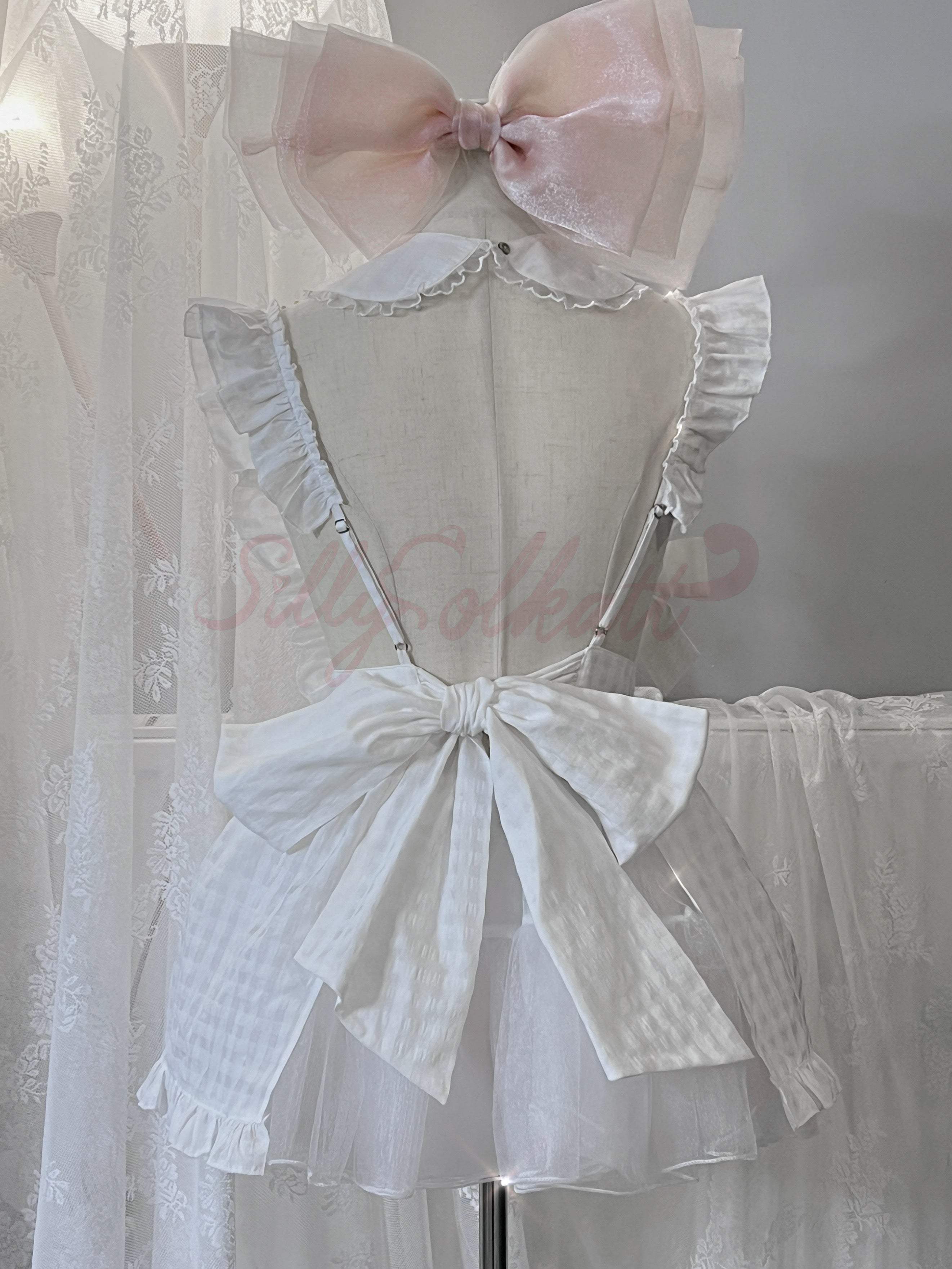 [Sold out forever — just here to be remembered ♡] Silly Solkatt Alice’s Angel Aura White Gingham Apron Set
